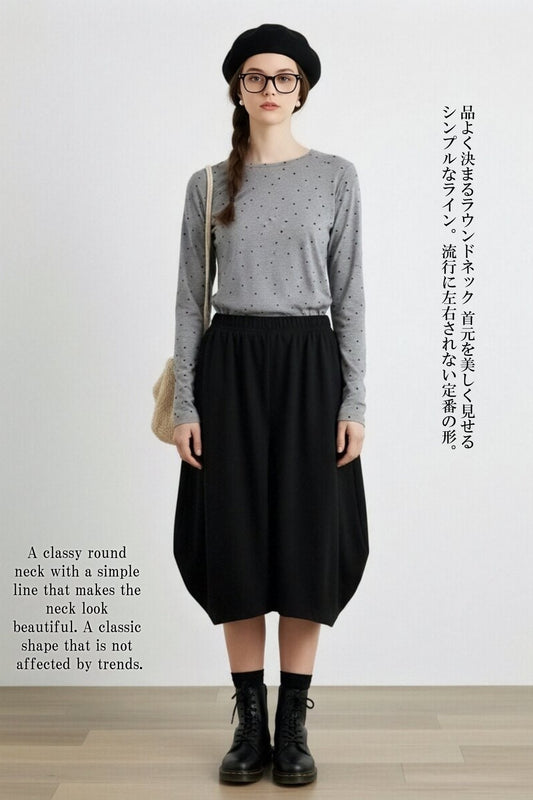 KNR665・ドット柄長袖カットソーTシャツ・ラウンドネックトップスレイヤード定番レトロガーリー