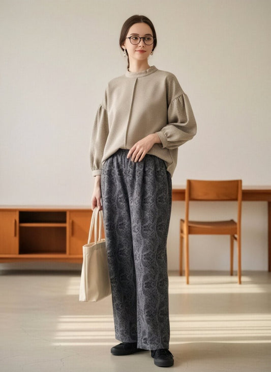 KNR663P・ペイズリー柄起毛あったかワイドパンツ