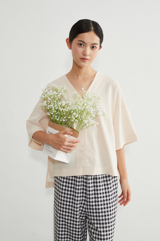 KNNT318・ リネンタッチシンプルセンターシーム半袖トップミニマルスタイル