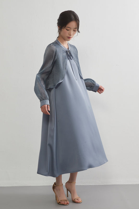 KNXO536・シアー長袖ボレロワンピースセットアップ・入園式入学式セレモニー・ルーズフィットエレガントドレス