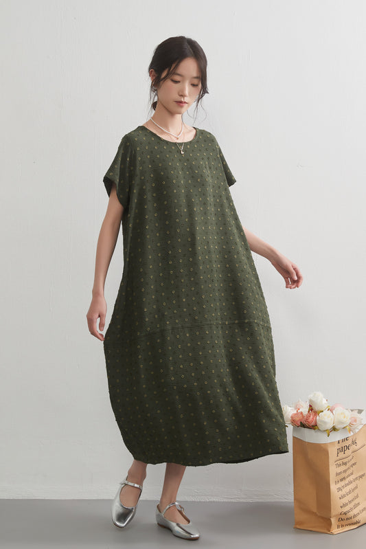 KNGT613-ドビー素材コクーンシルエット半袖ワンピース