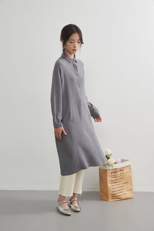 KNGC604・麻混ジャガード織り・ラグランスリーブ半開衿付き・シャツチュニック