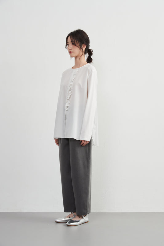 KNXT505・フリル前立てドッキングプルオーバートップ・長袖ブラウス・春秋トップス定番