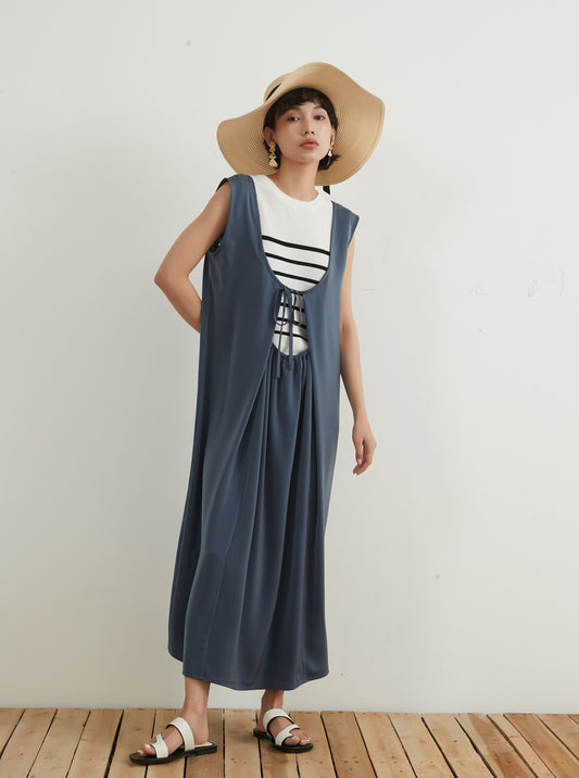 KNSO368-Aライン・リネンミックス・背中開きワンピース・ジャンスカ・ジャンパースカート