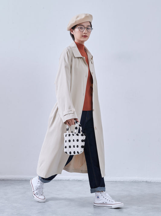 KNNJ360・コットンライク・トレンチコート・裏地付き・ベルト付き・ロングコート・秋冬アウター