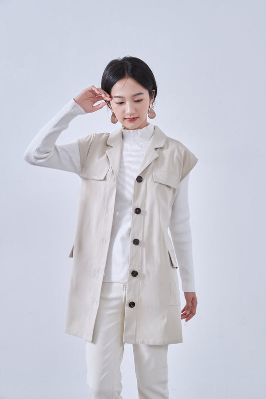 KNSJ373-縁取りパッチポケット・コージーボアベスト・裏地付き