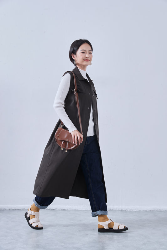 KNNJ362・ミリタリーロングベスト・ミリタリー風ワンピース・ワークマンベスト・ビッグポケット・ベルト付き