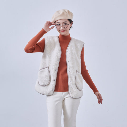 KNSJ373-縁取りパッチポケット・コージーボアベスト・裏地付き