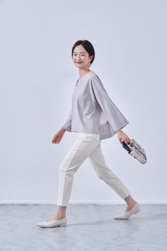 KNNT363・Vネック・センターシーム・長袖ミニマル・シンプルトップ・Clean Style・秋冬プルオーバー
