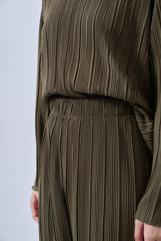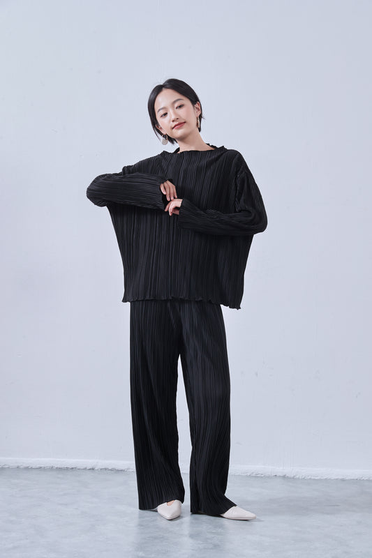 KNNT364-プリーツ加工・カットソー長袖プルオーバー・ボートネック・セットアップ商品・アップサイクル