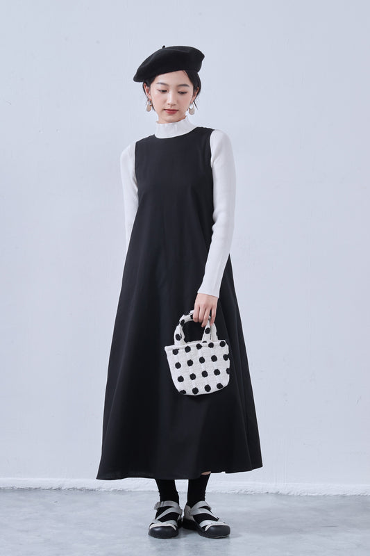 KNSO368-Aライン・リネンミックス・背中開きワンピース・ジャンスカ・ジャンパースカート