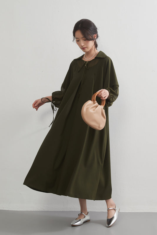 KNNO330・パフスリーブAライン・綿100%コットンロングワンピース