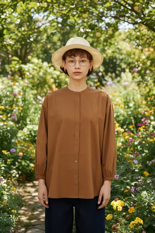 KNNC306・綿100%ボタンがかくれんぼフライプラケット長袖シャツブラウス