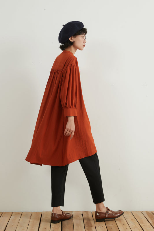 KNNC317・七分袖ロング丈ギャザーブラウス・ゆったり体型カバーチュニックシャツ