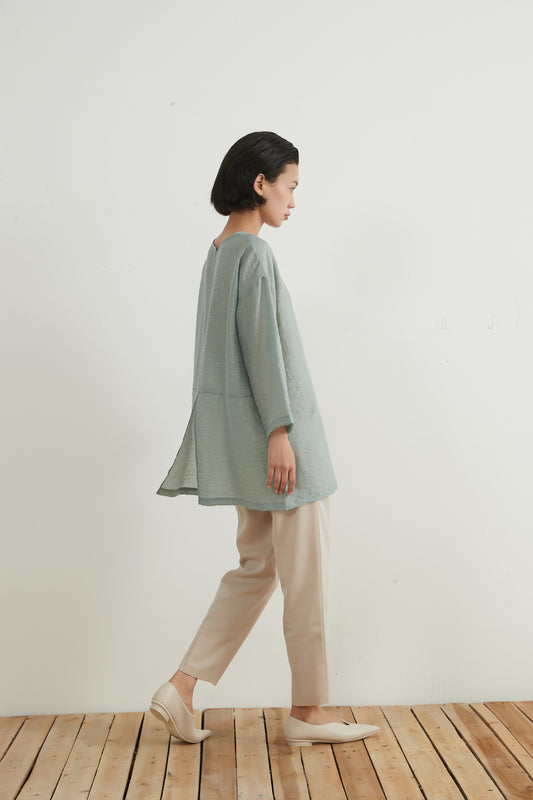 KNNT315・透け感リネン混長袖チュニック・裾スリットシアー2WAY ブラウス