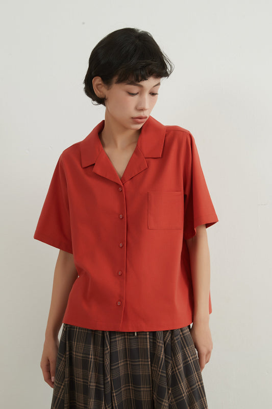 KNNC316・リネンコットンキャンプカラー半袖ボタンシャツ綿麻混夏定番トップス