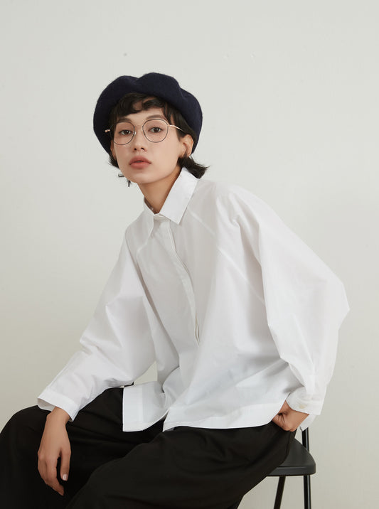 KNNC305・綿100ワイドスリーブ長袖ルーズフィットBOXYシャツ