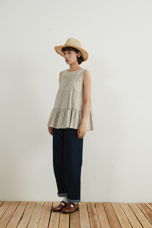 SHADOW DOTS COTTON TIERED TOP シャドー水玉ドットコットンスリーブレスティアードトップ