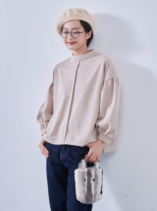 KNNT357・ボリュームパフスリーブ・長袖カットソージャガード素材・秋冬トップス