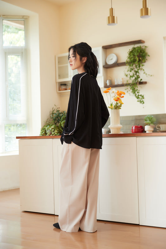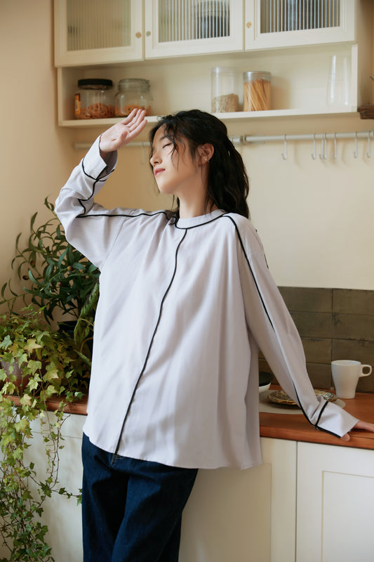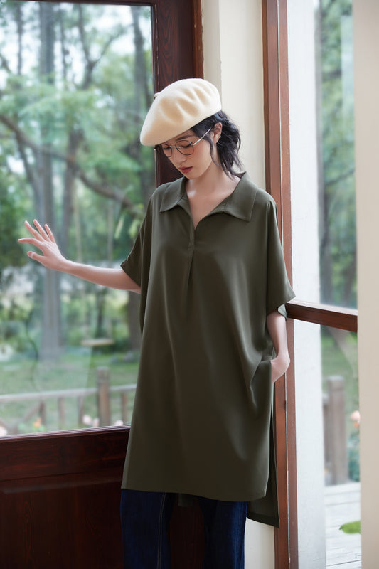 KNST352-ルーズフィットスキッパーカラーチュニックトップ