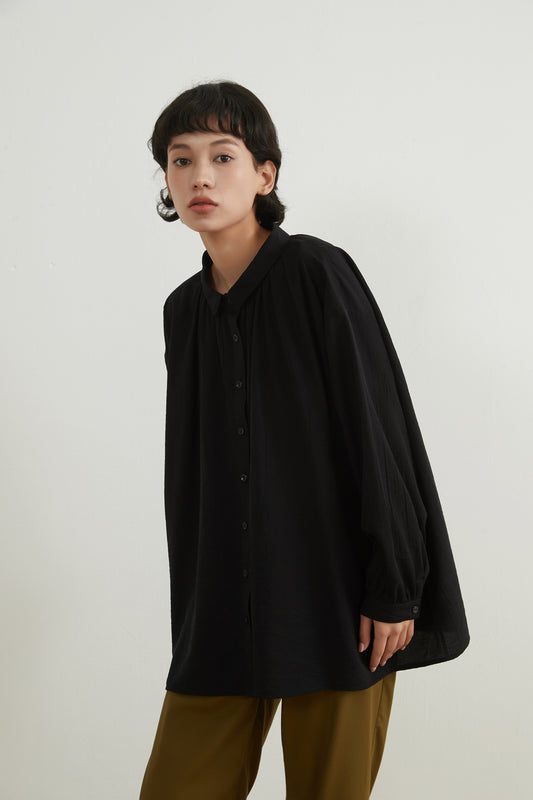 KNNC305・綿100ワイドスリーブ長袖ルーズフィットBOXYシャツ
