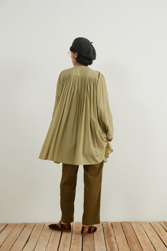 KNNC301・長袖ロング丈ギャザーたっぷりブラウス・羽織りシャツ・春秋カーディガン