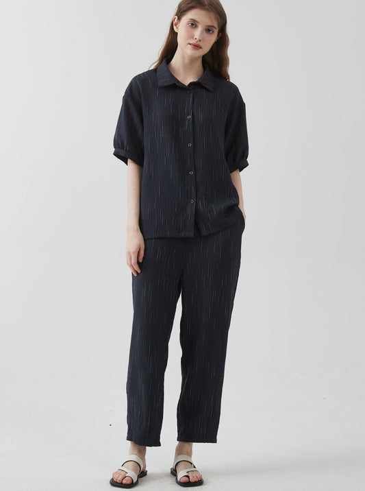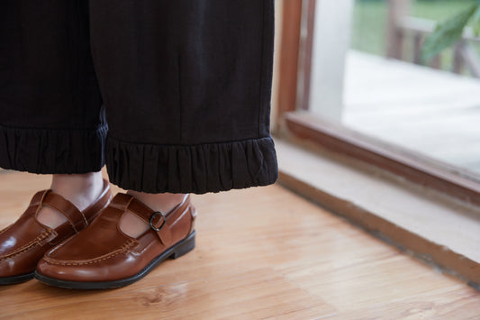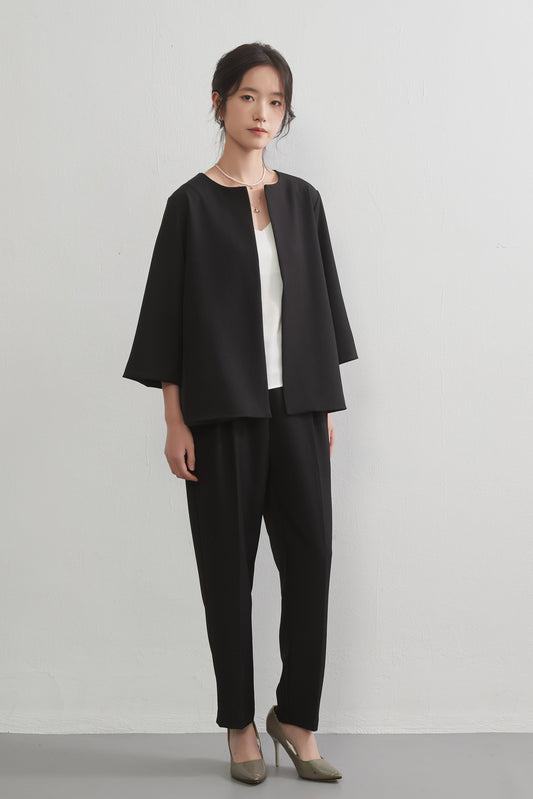 KNSP347-BLACK Gathered hem linen cotton wide pants setRegular price ¥9,790 JPYRegular priceUnit price / per-