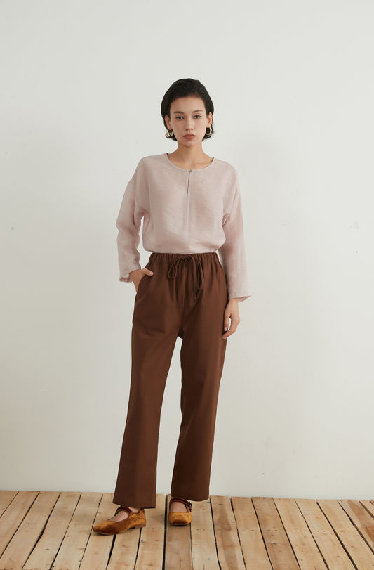 KNSP347-RASPBERRY Gathered hem linen cotton wide pants setRegular price ¥9,790 JPYRegular priceUnit price / per-