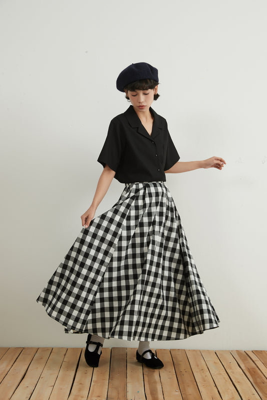 Black and white gingham check maxi skirt 100% cotton Flared long skirt 100% cotton Free sizeRegular price ¥8,910 JPYRegular priceUnit price / per-