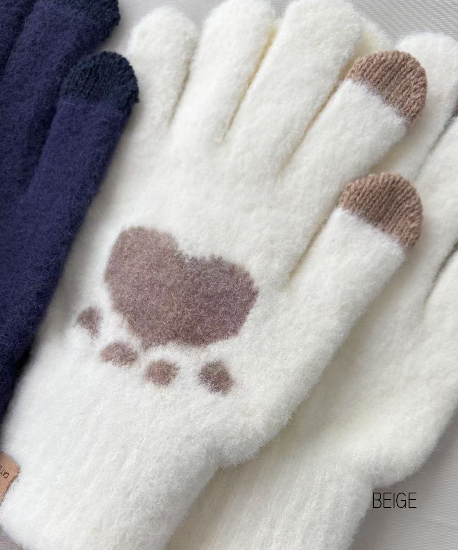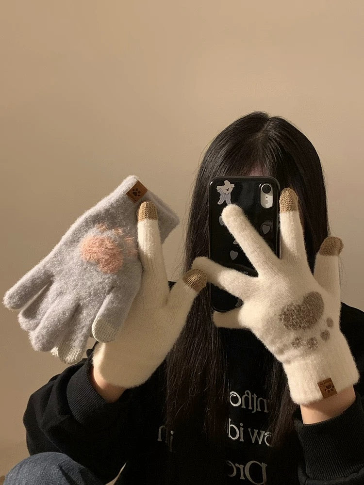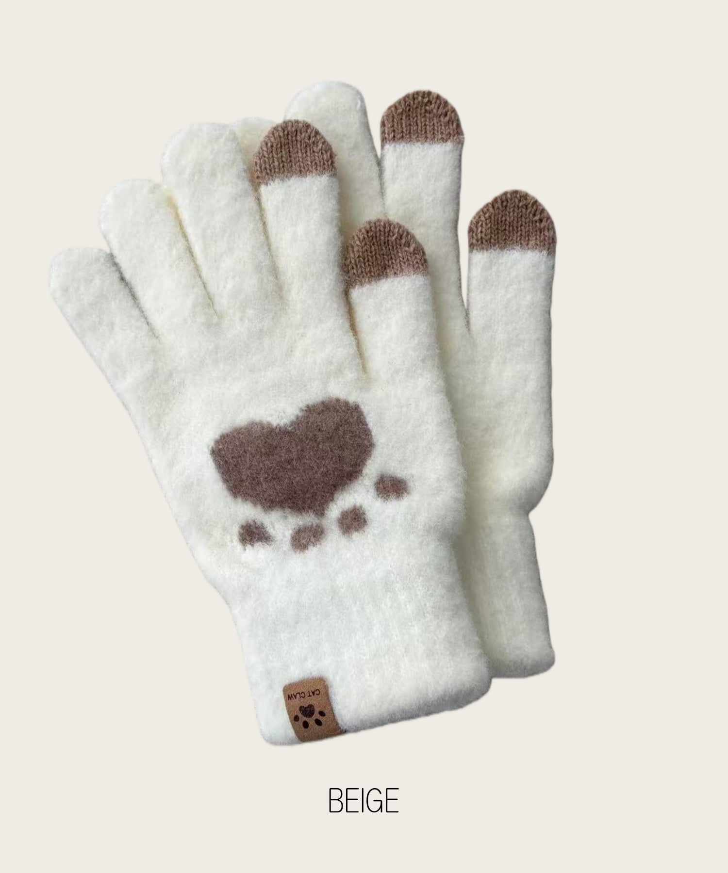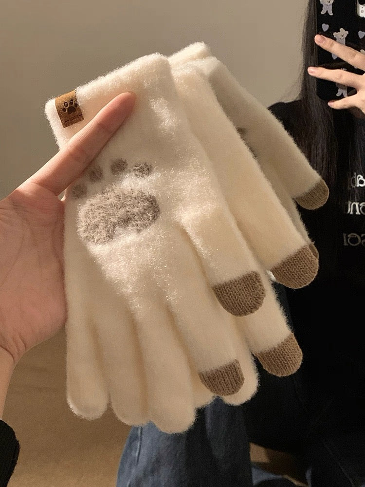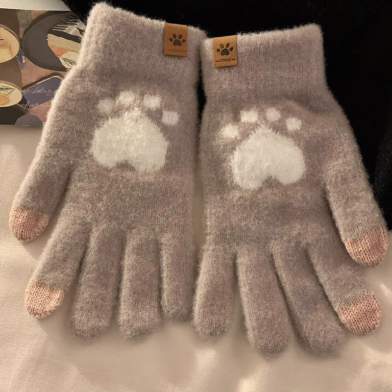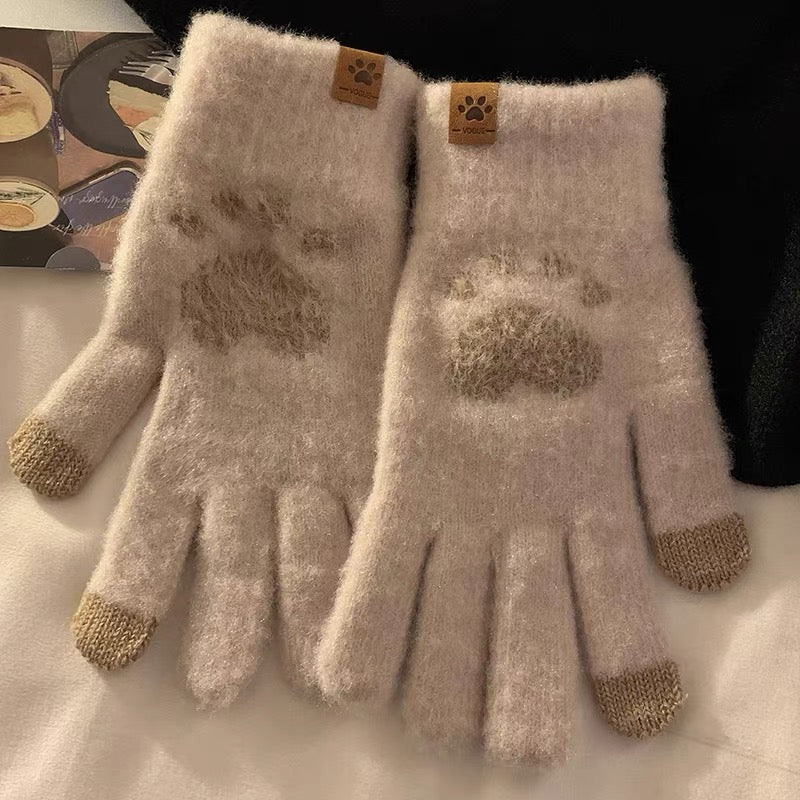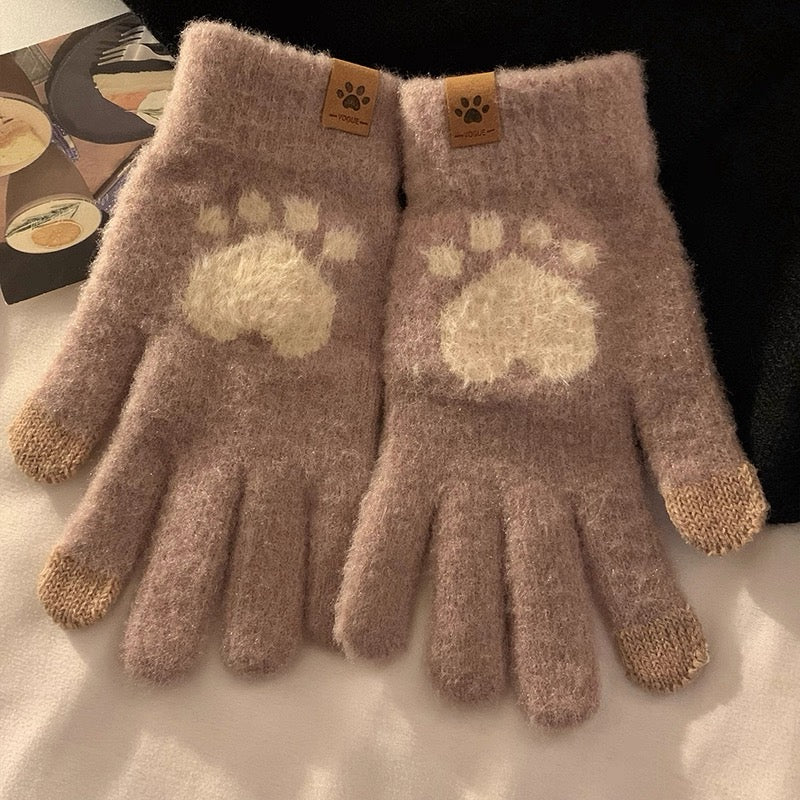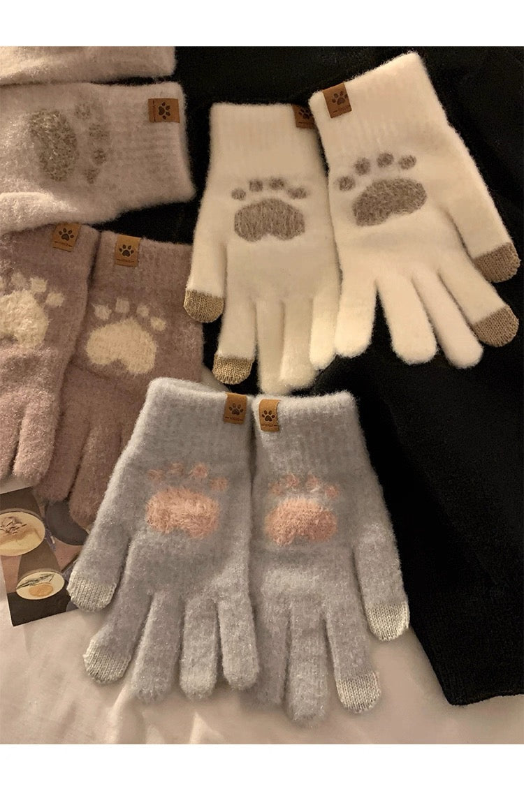 Paw Print Knit Gloves – Smartphone Touch Compatible