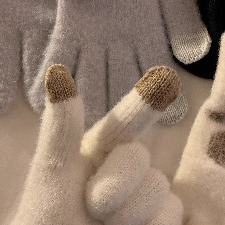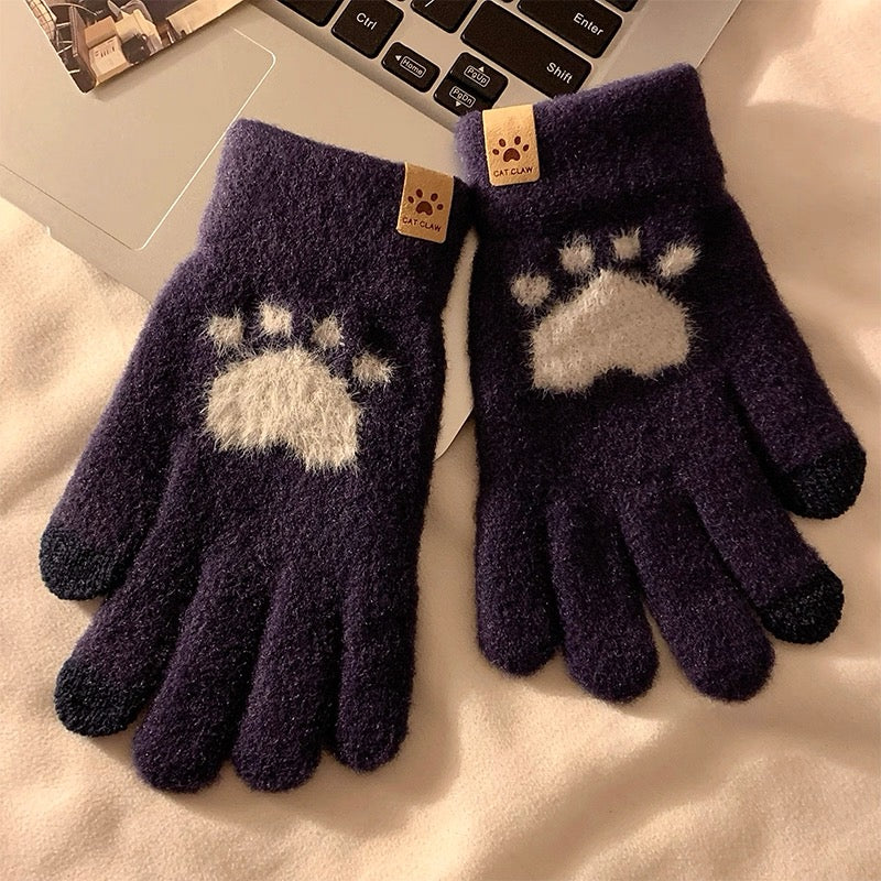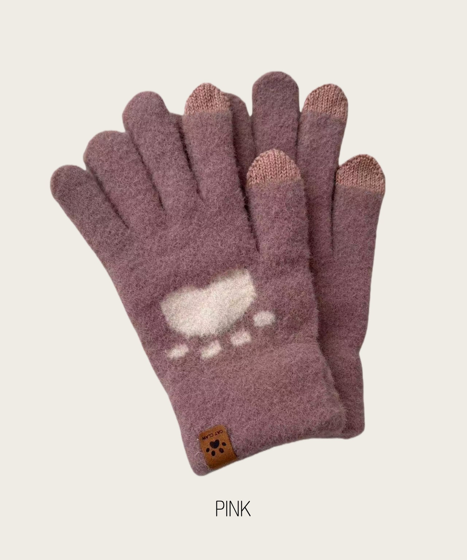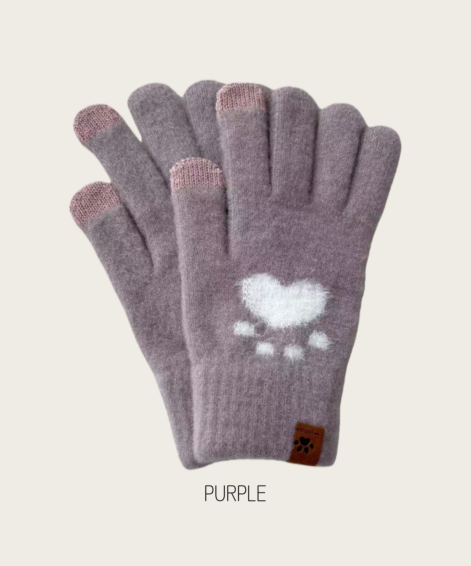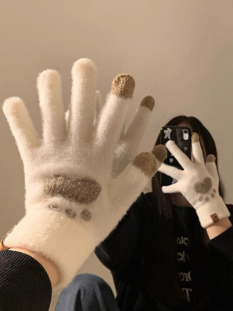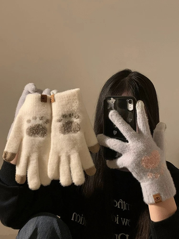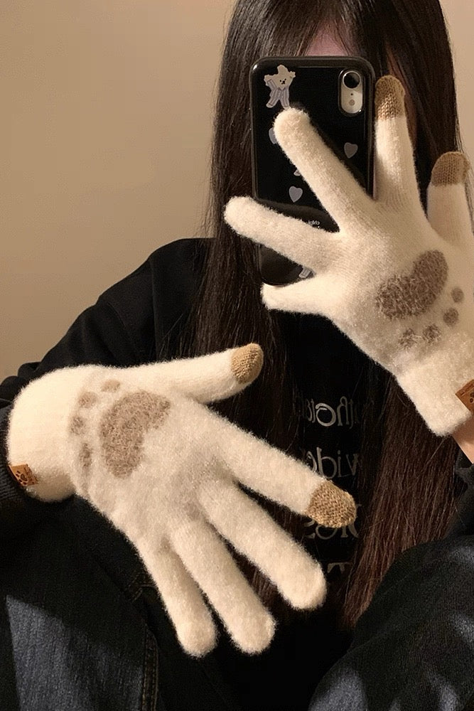 Paw Print Knit Gloves – Smartphone Touch Compatible