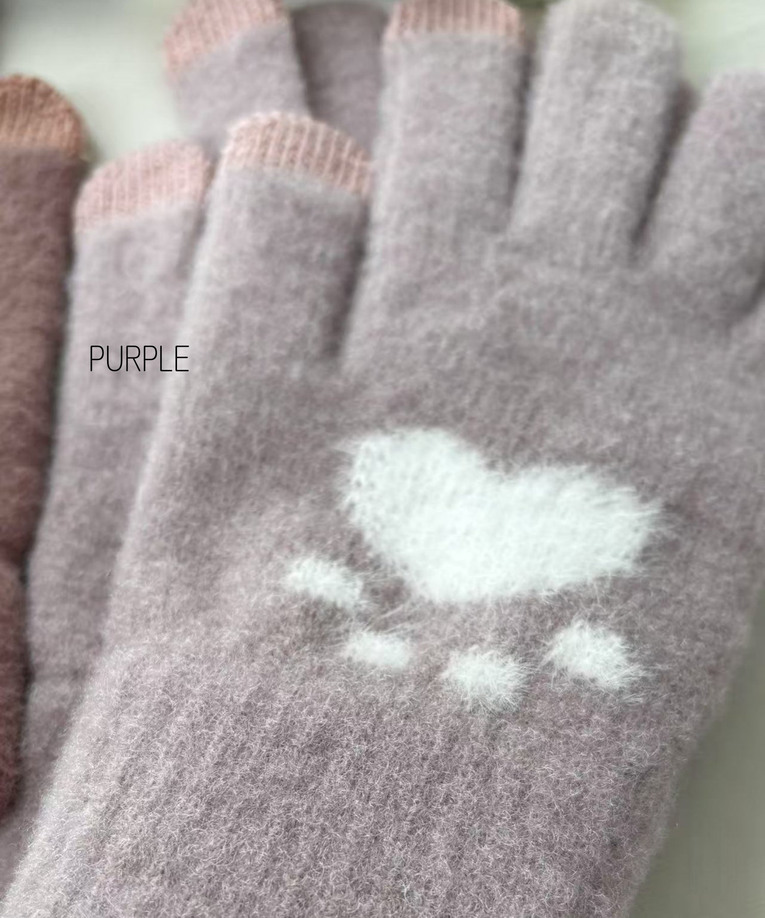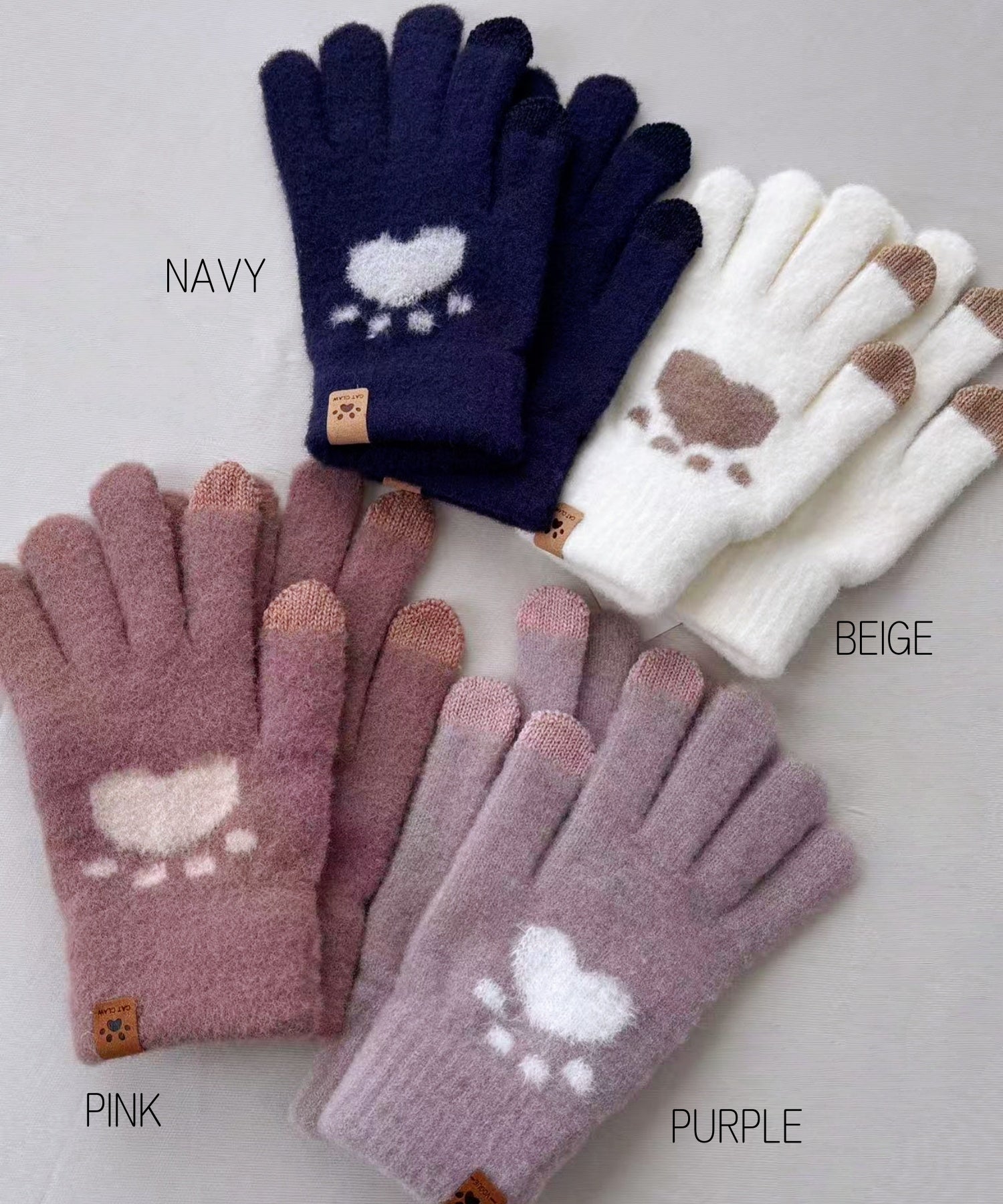 かわいい肉球デザインの5本指タイプのニット手袋。