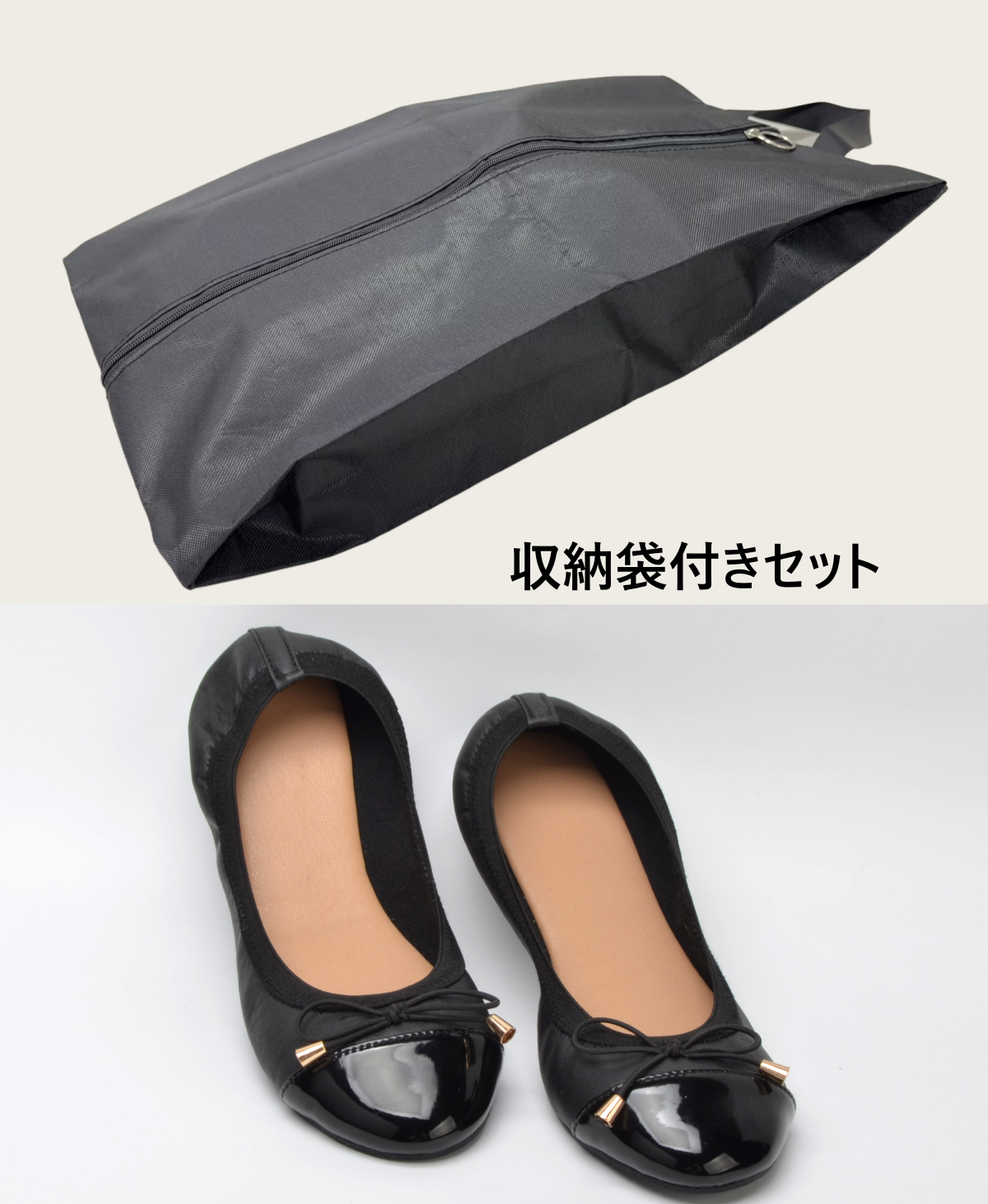 コンパクトに持ち運べる、収納袋付き携帯フラットシューズ。参観日や入学式・卒業式といった学校行事はもちろん、オフィスや出張、旅行先でも活躍する便利なアイテムです。室内、日常履き用共にOK。