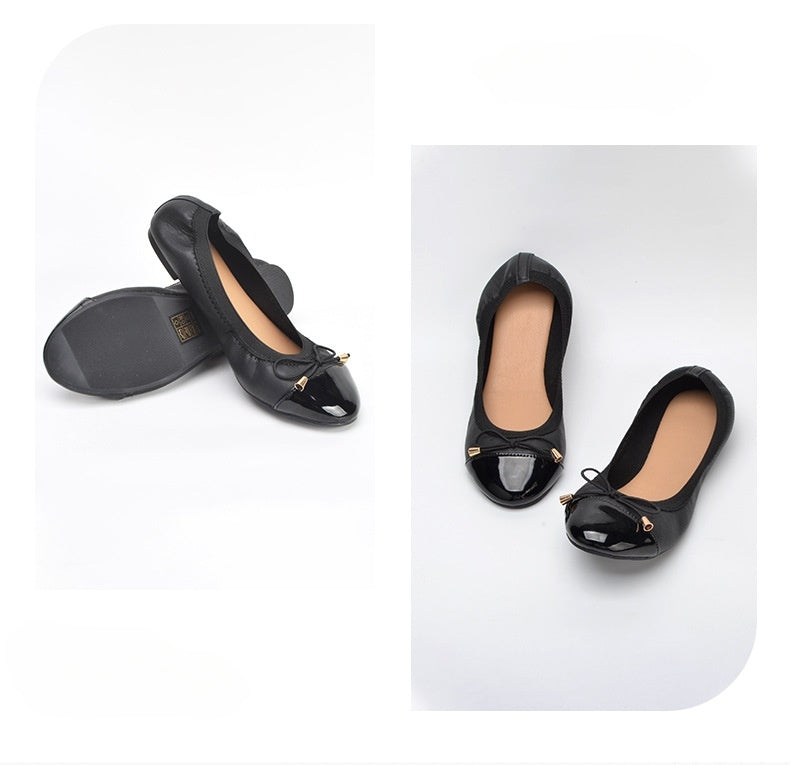 上品さと実用性を兼ね備えた、大人の女性のための携帯フラットシューズ。