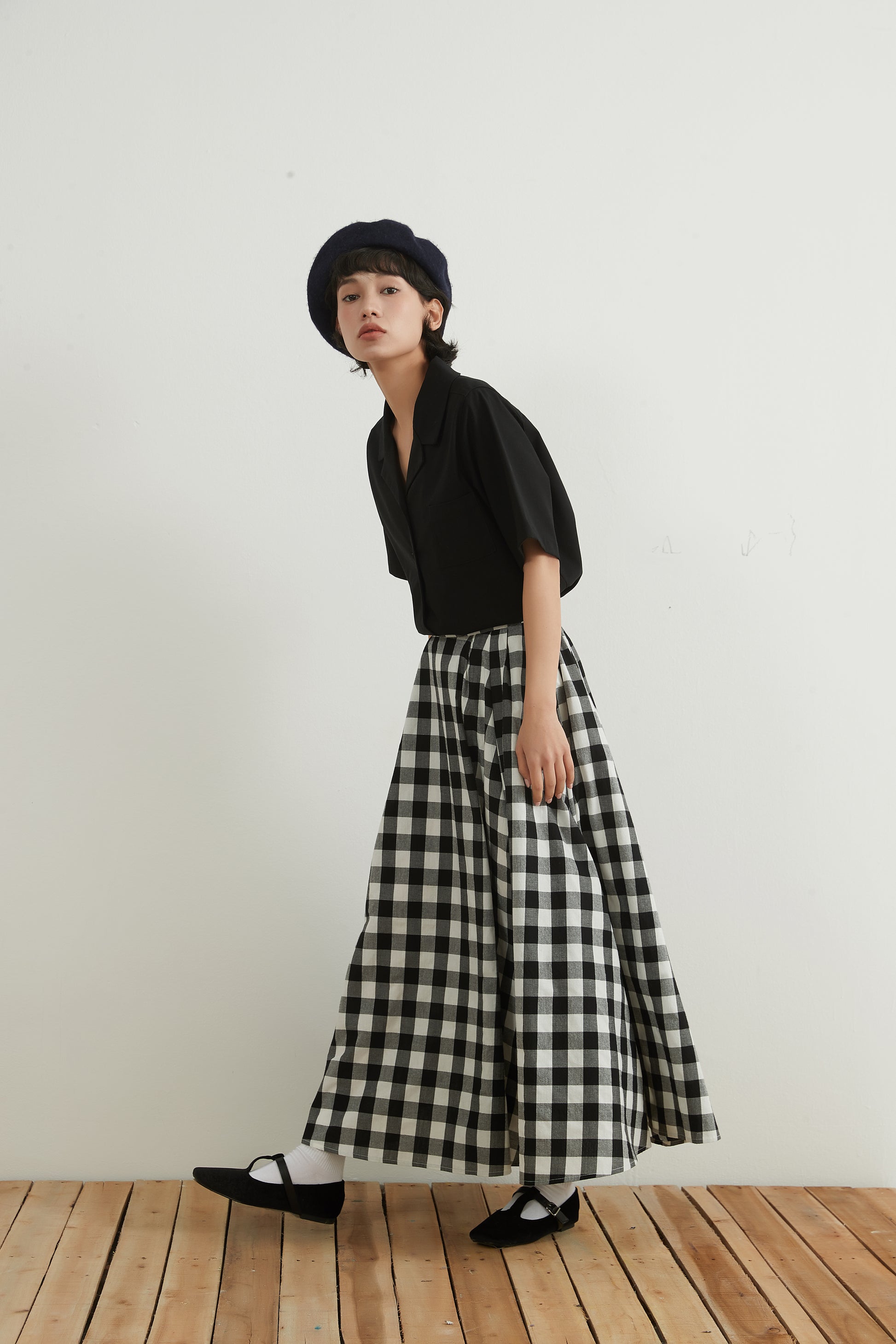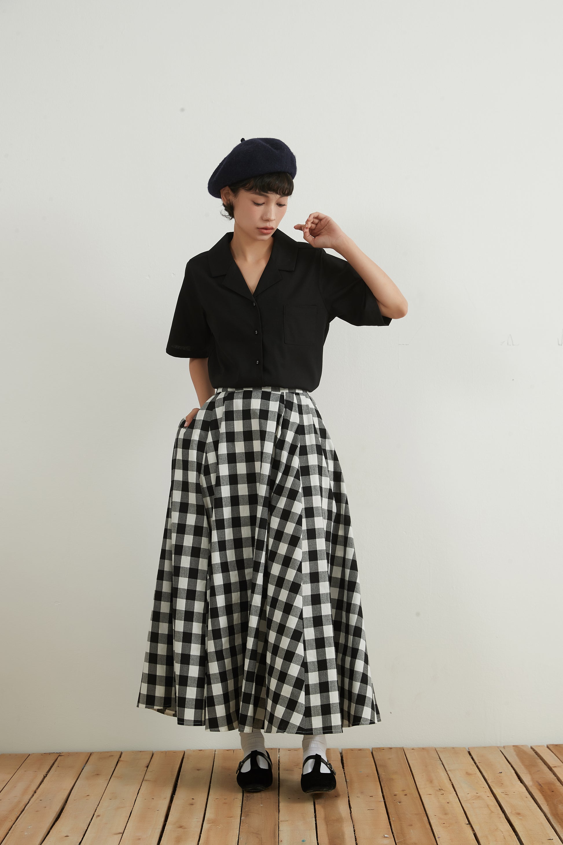 #Maxi skirt #Check pattern #Women's fashion #Casual style #Feminine style #Suitable for all seasons #Simple coordination #Adult cute #Street fashion #With pockets #Natural materials #100% cotton #100% cotton #Sustainable