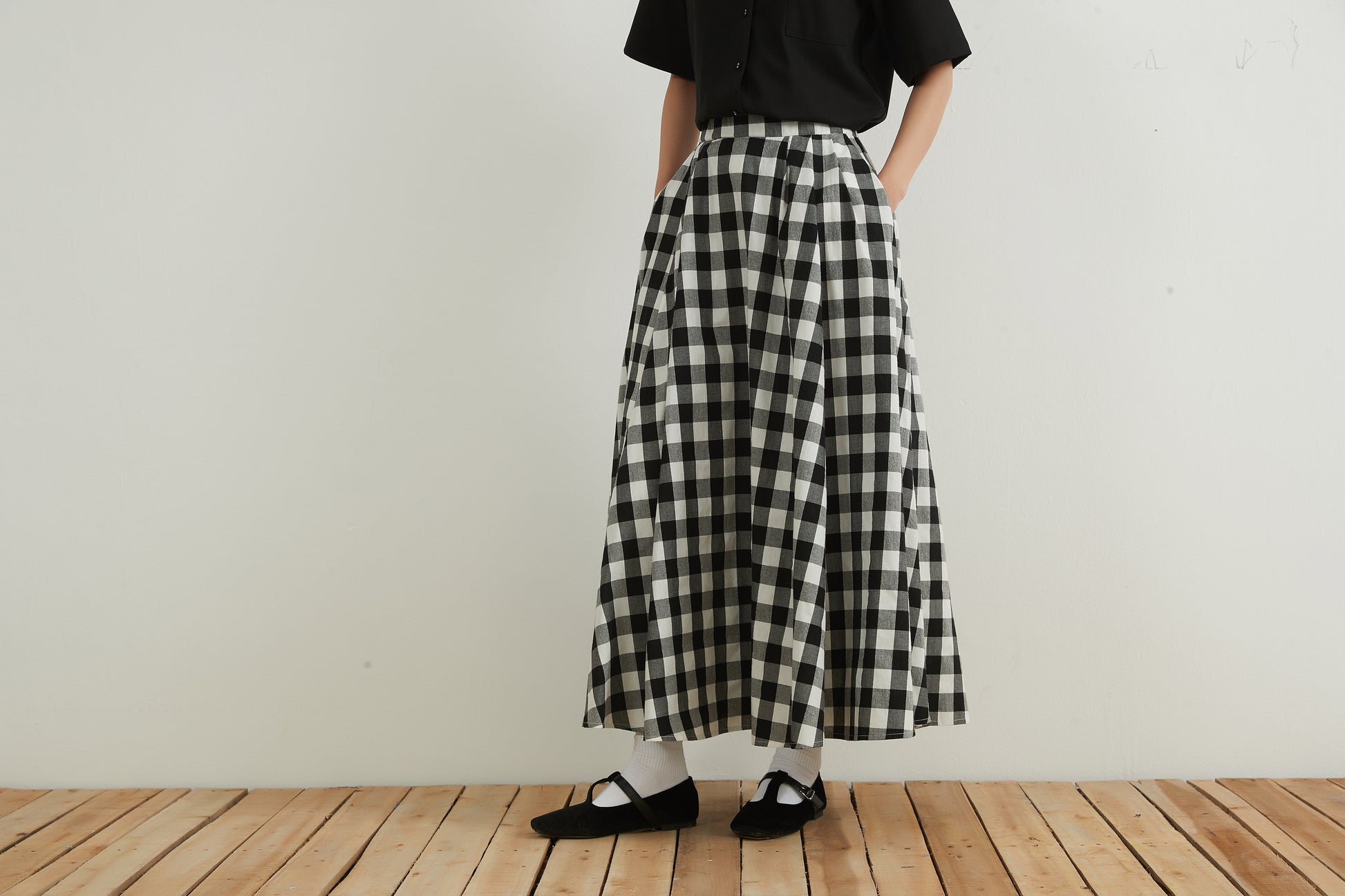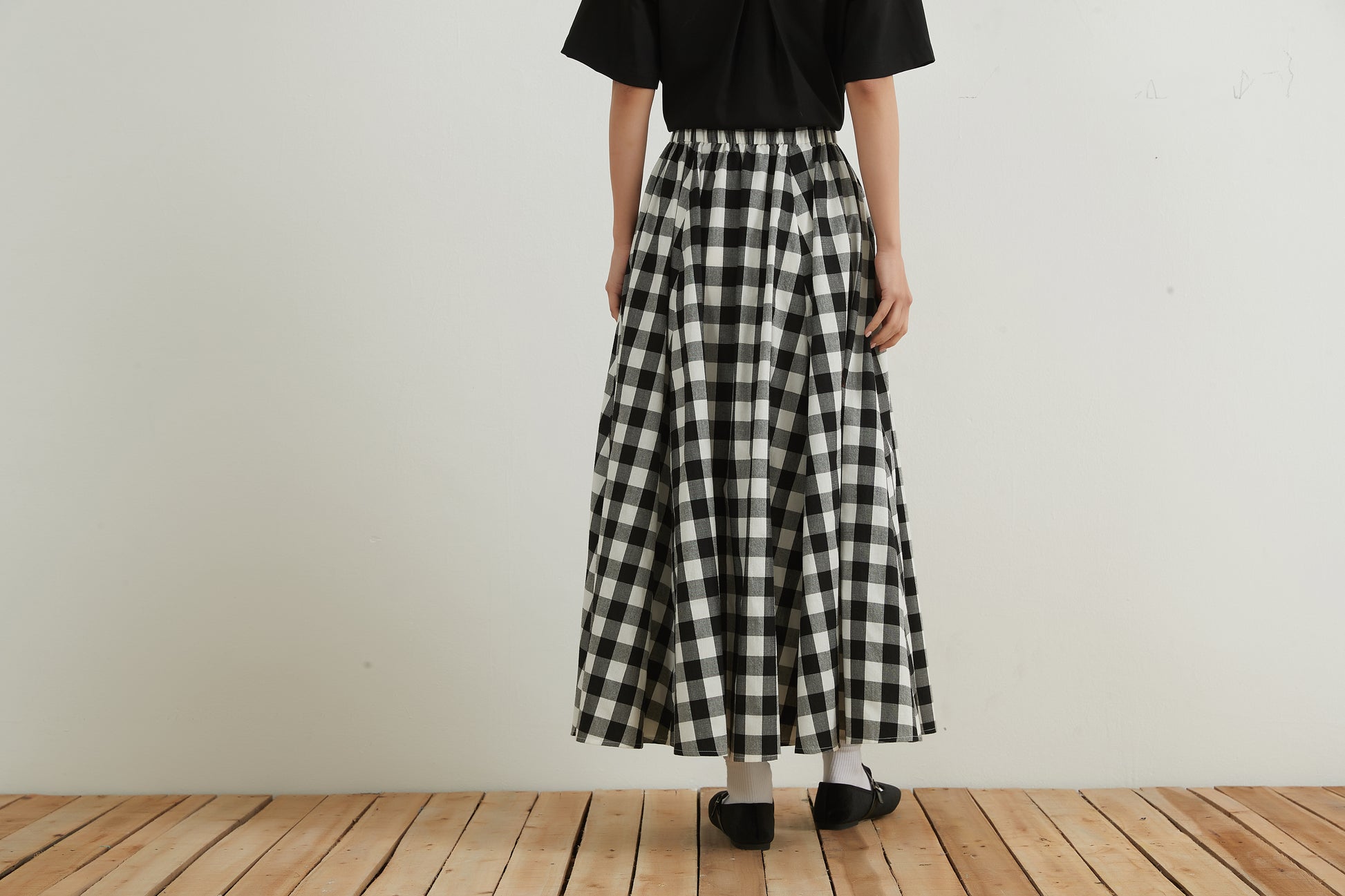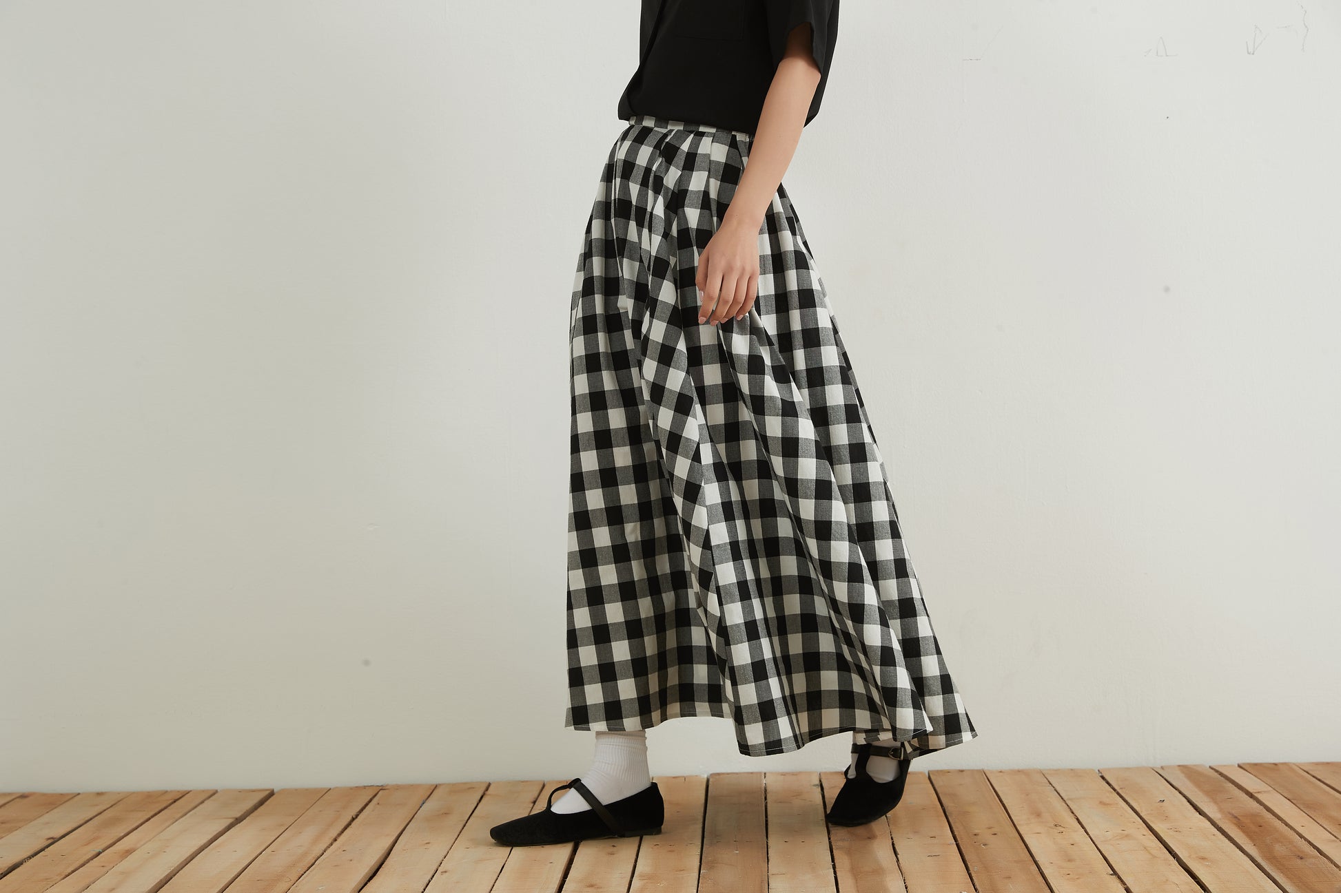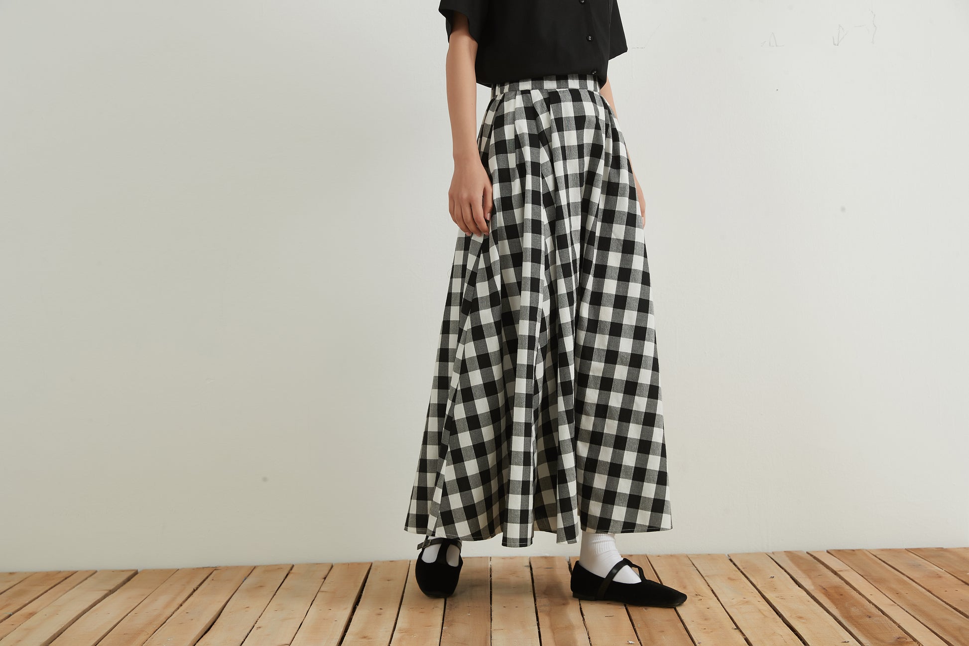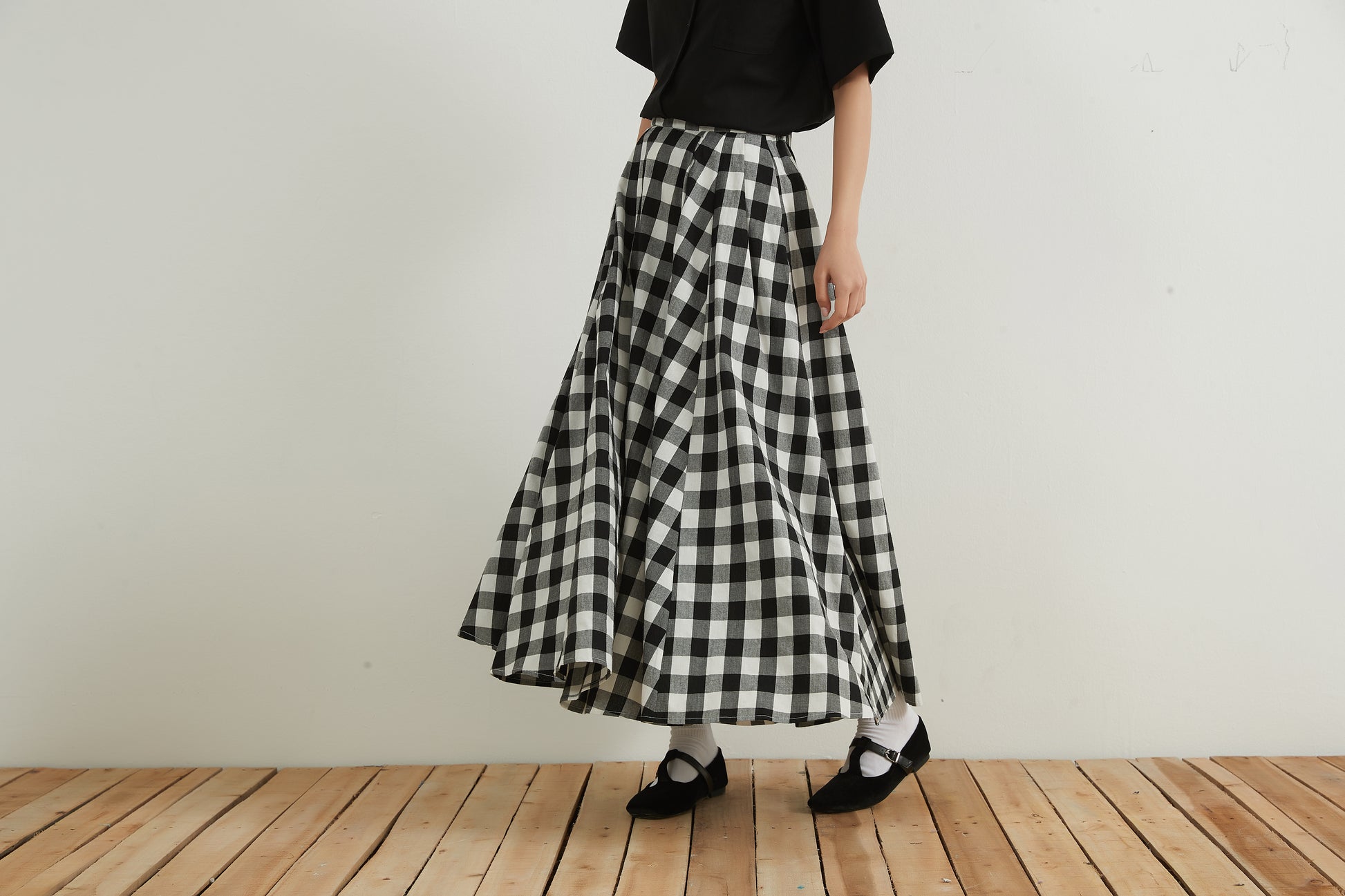 Black and white gingham check maxi skirt 100% cotton Flared long skirt 100% cotton Free size