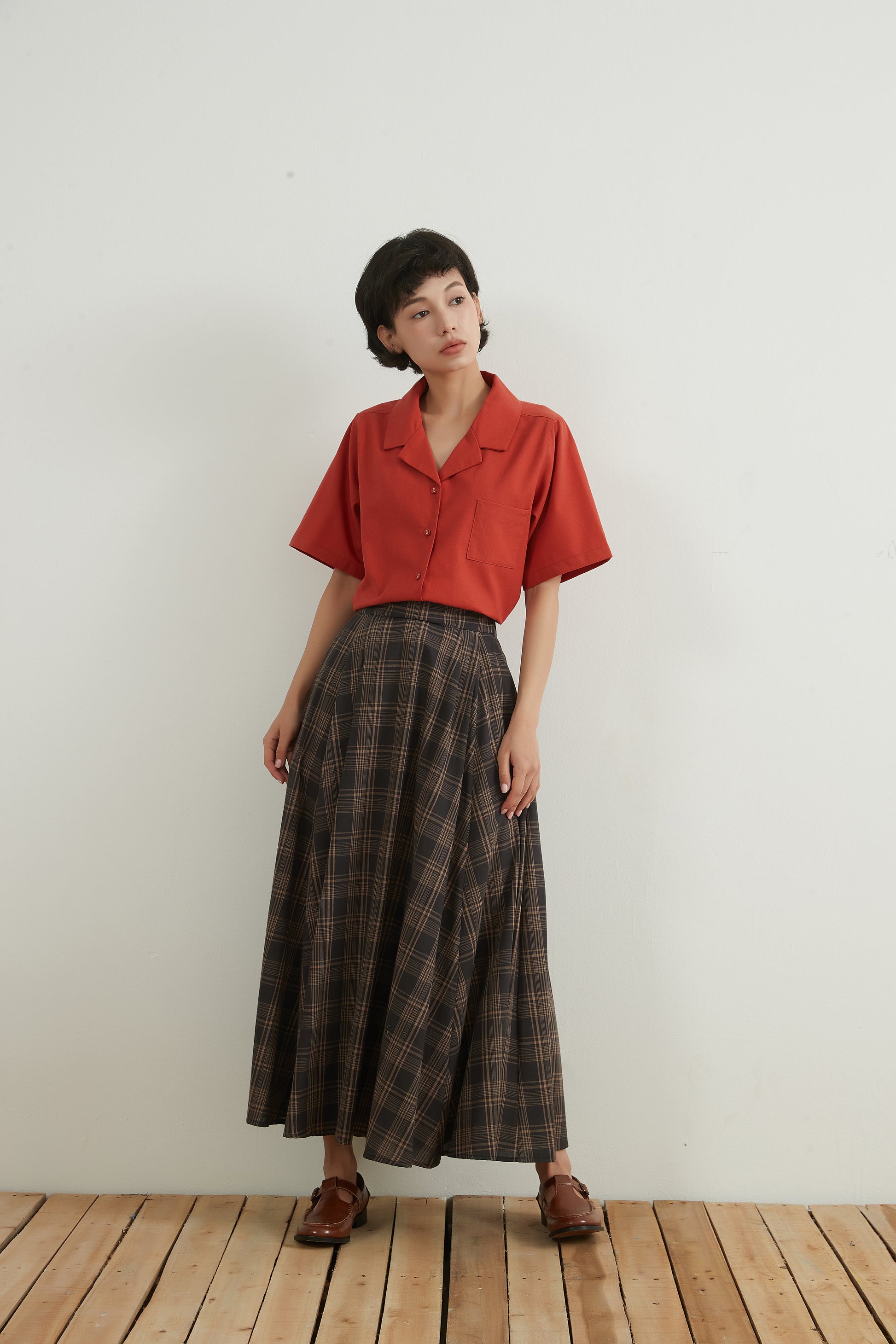#Maxi skirt #Check pattern #Women's fashion #Casual style #Feminine style #Suitable for all seasons #Simple coordination #Adult cute #Street fashion #With pockets #Natural materials #100% cotton #100% cotton #Sustainable