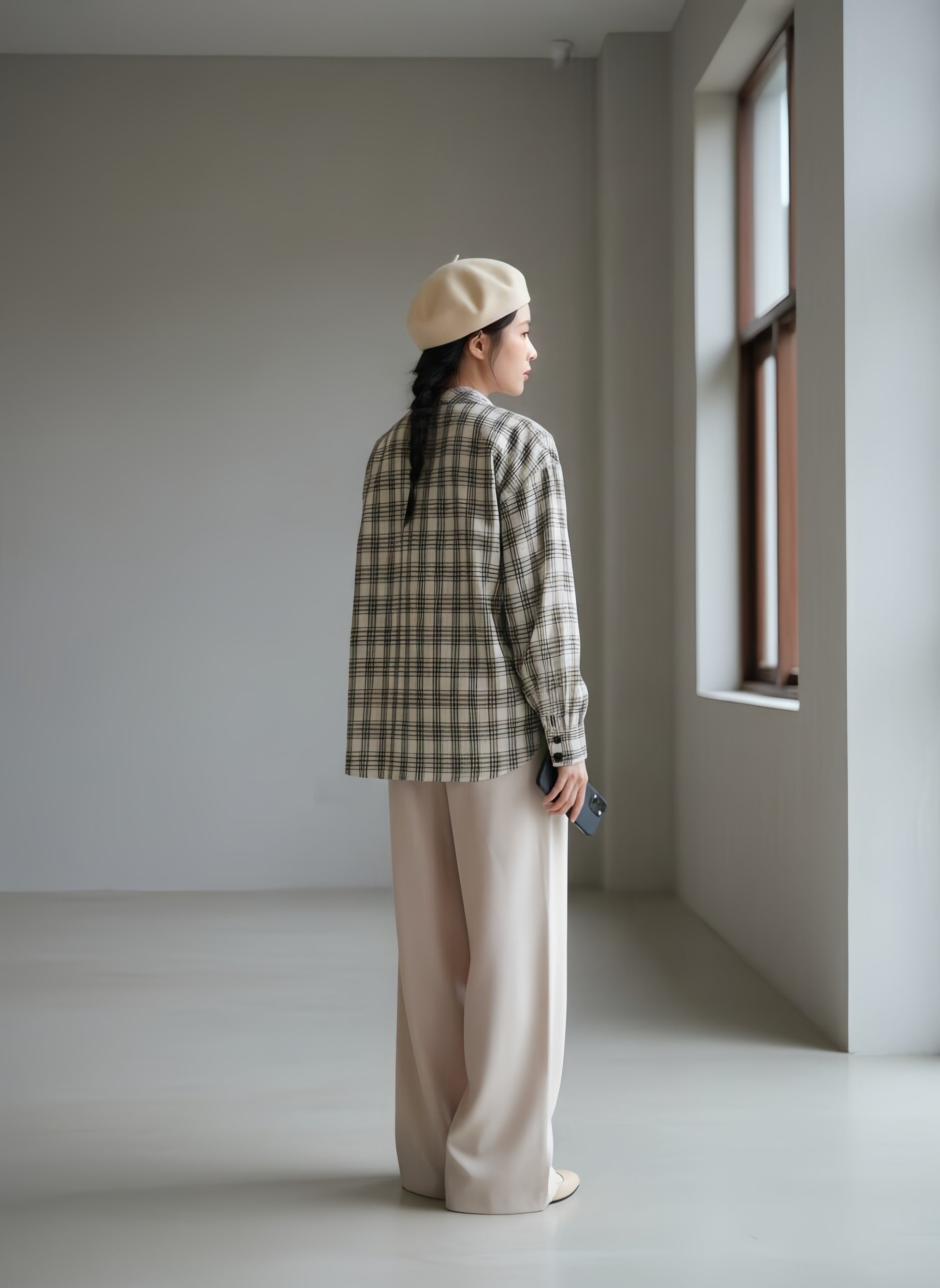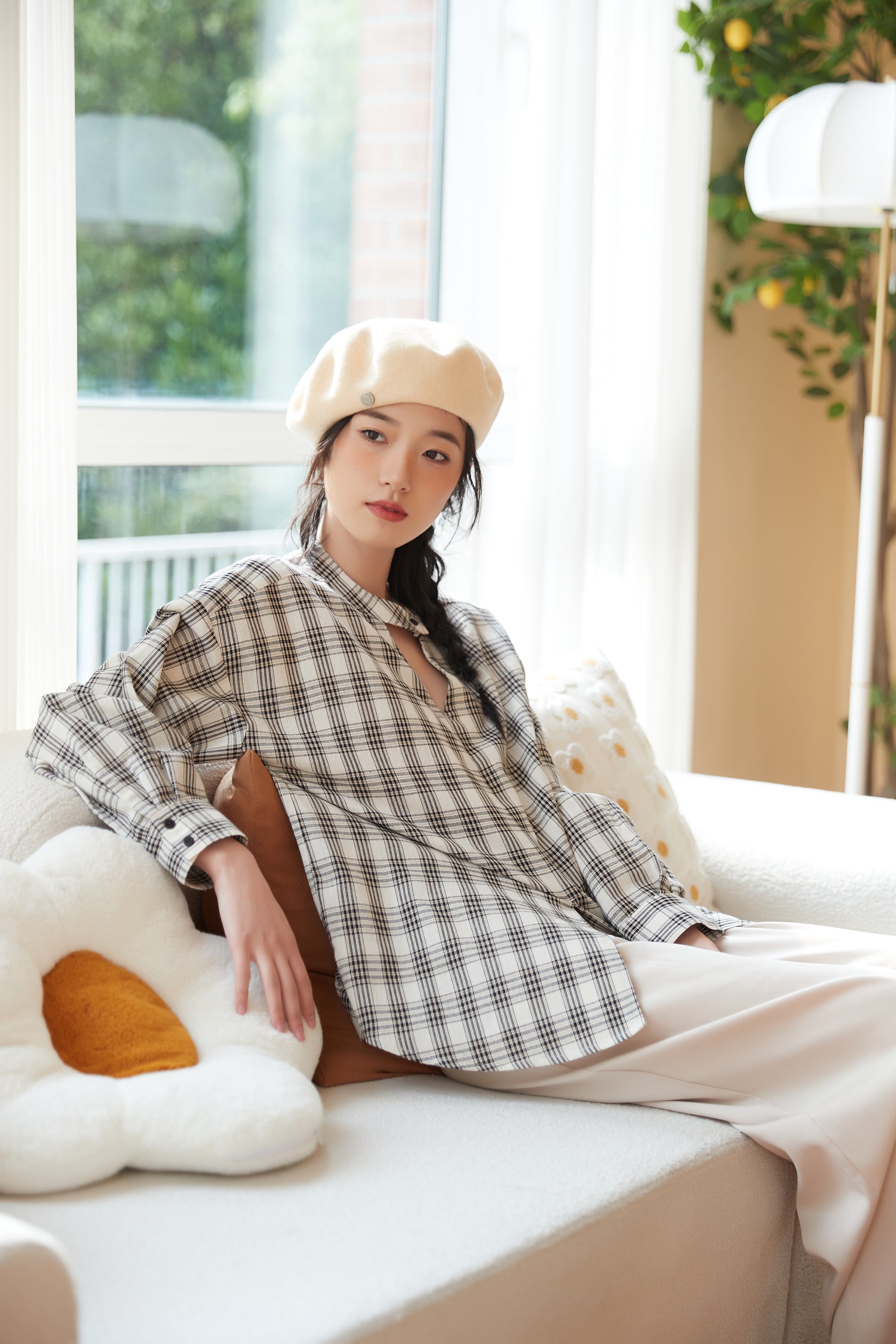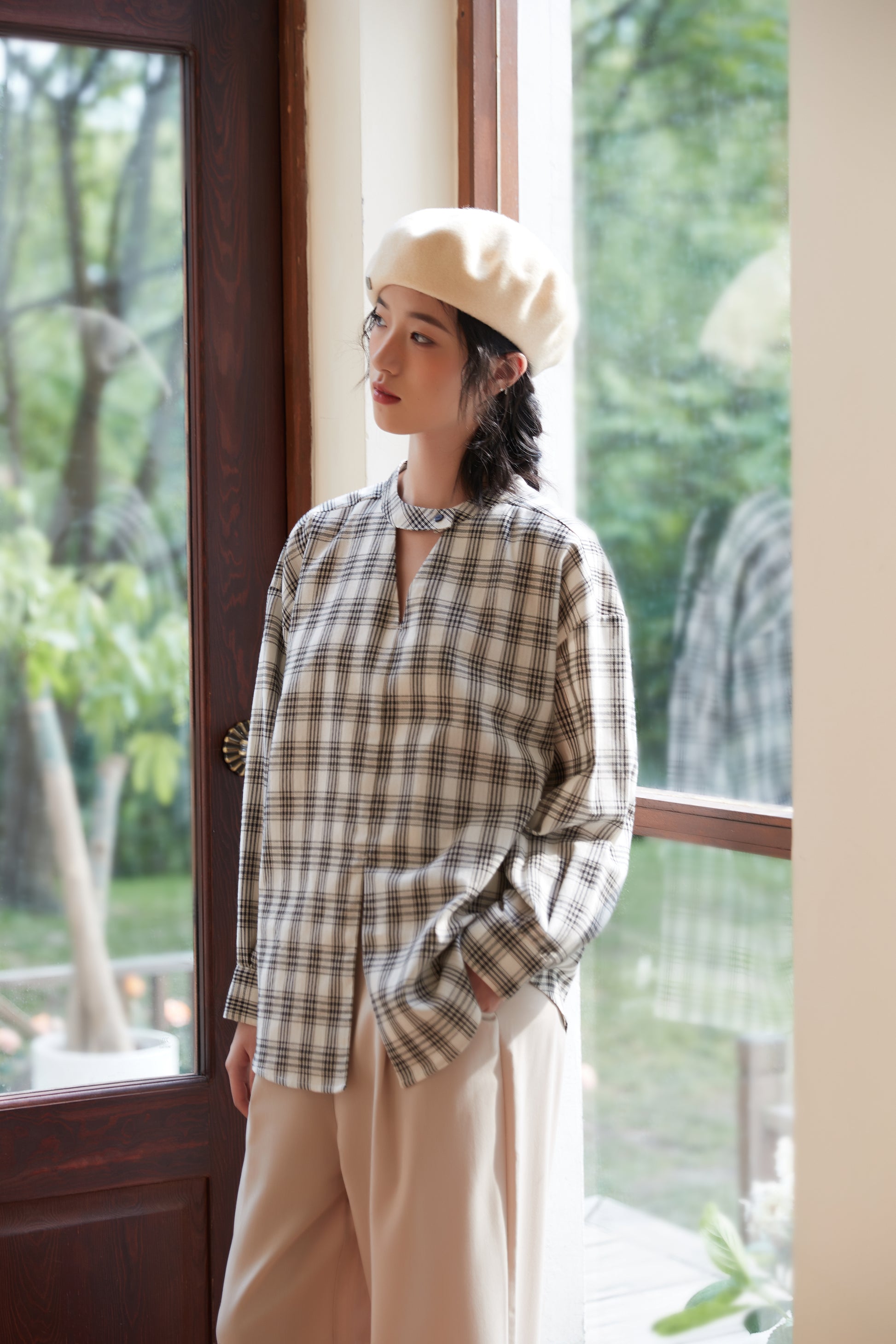 This item features a sophisticated style and unique design. This trendy blouse is perfect for mature women, but the check pattern brings out a classic charm. The center slit and choker neck details add a modern accent, creating a unique and stylish style. The deep slit at the hem allows you to tuck the hem in for a leg-lengthening look. This item goes well with wide pants, denim, and long skirts.