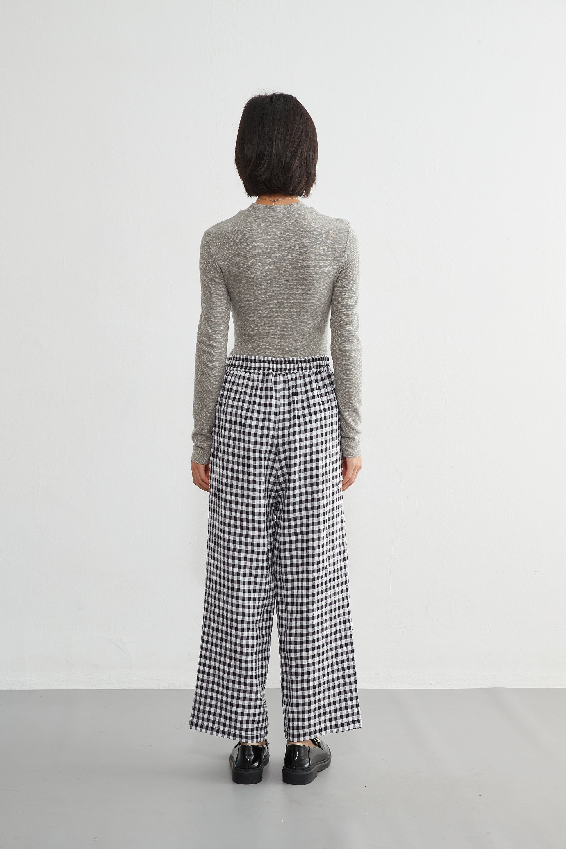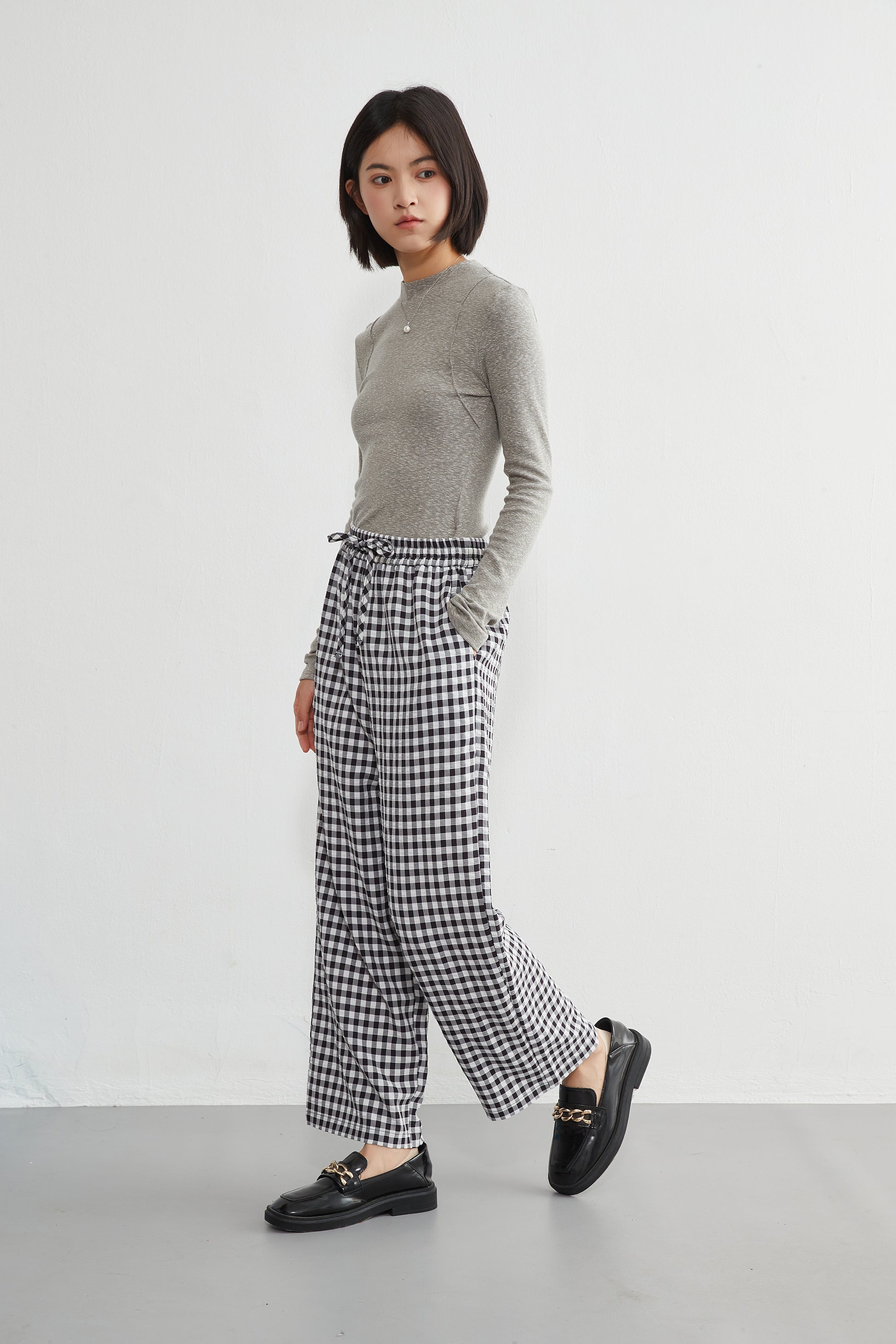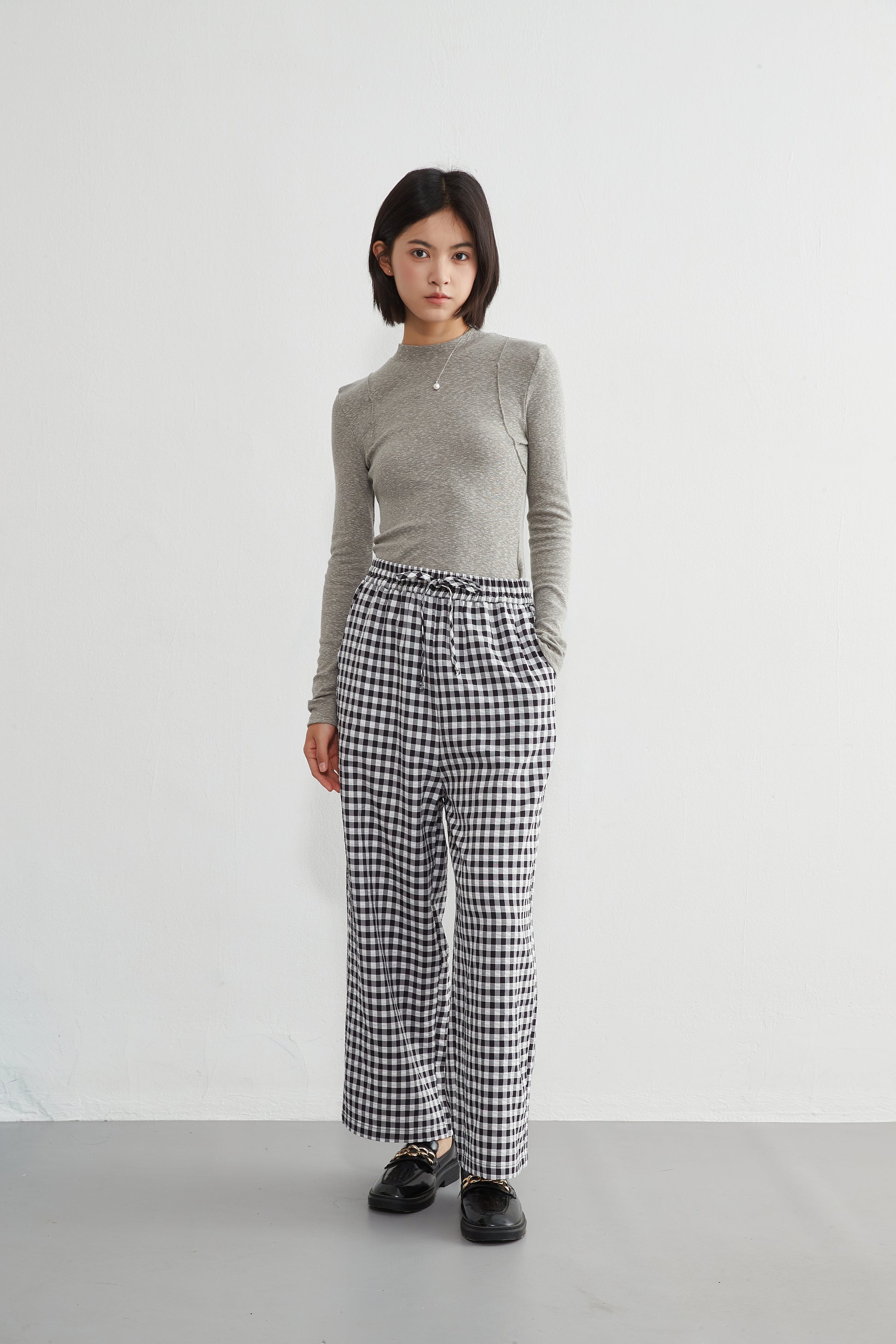 KNGP632・ギンガムチェックリラックスストレートパンツウエストゴム仕様