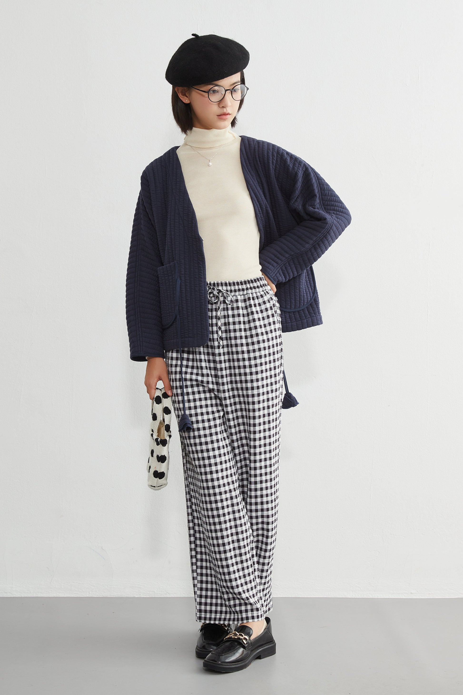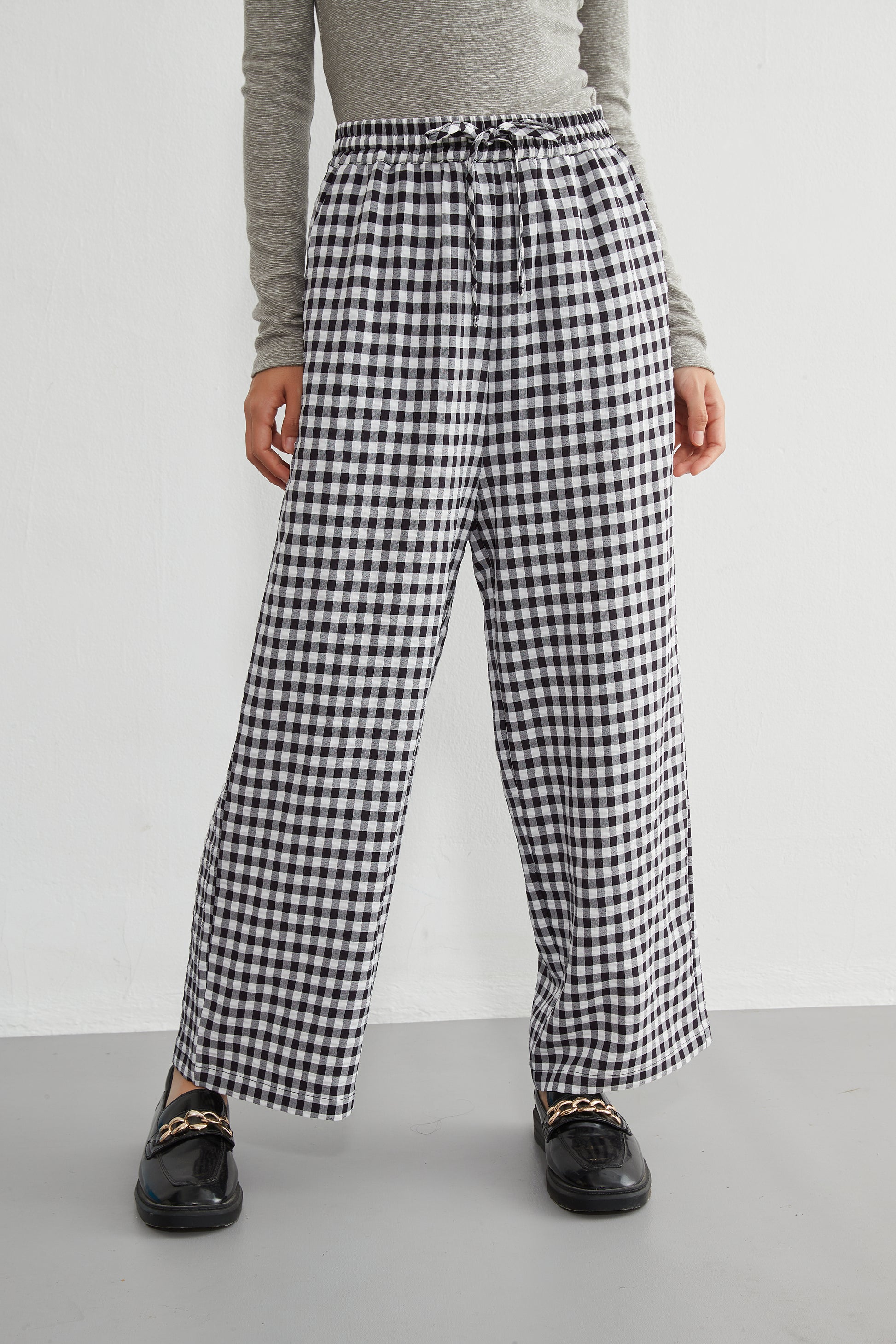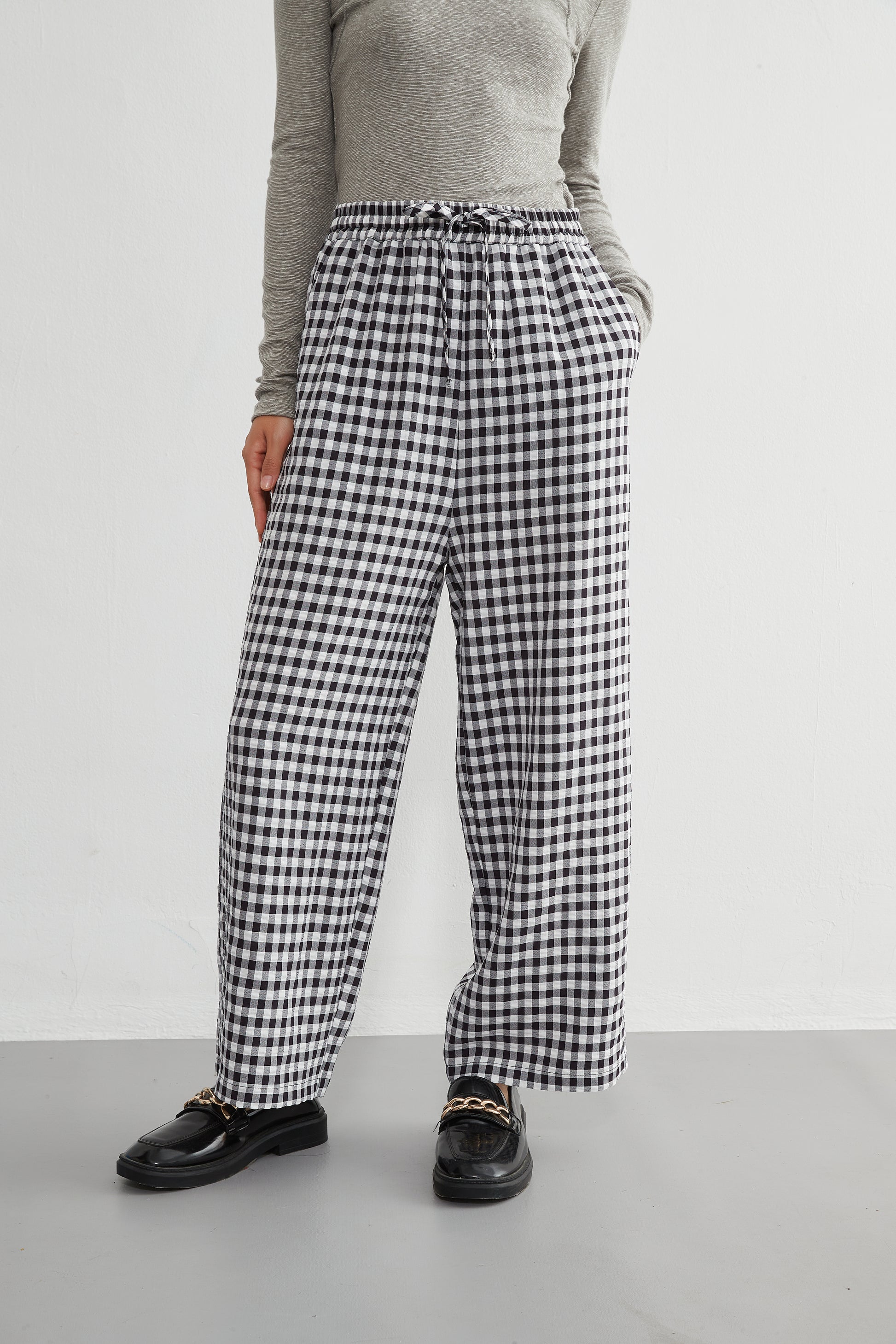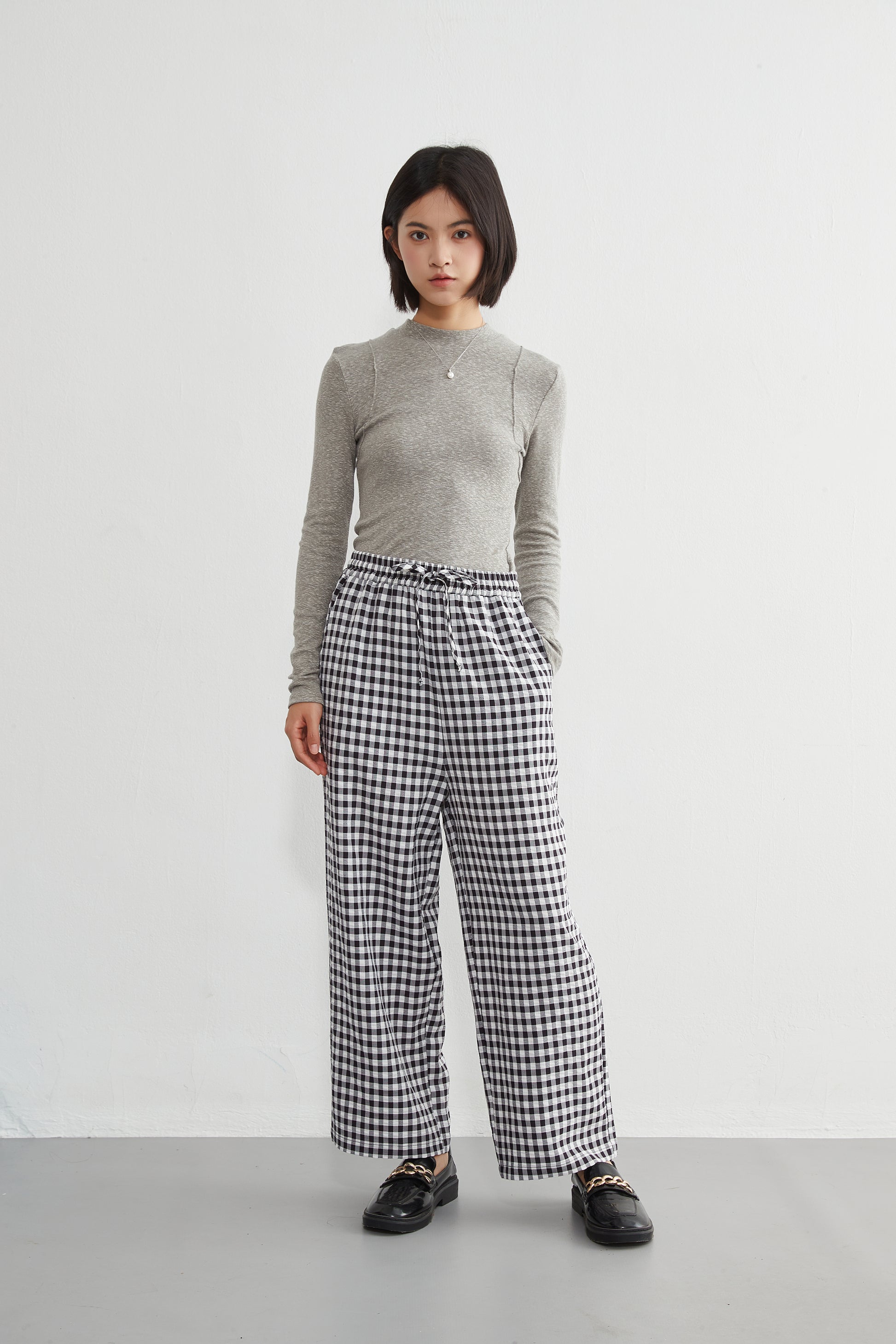 KNGP632・ギンガムチェックリラックスストレートパンツウエストゴム仕様