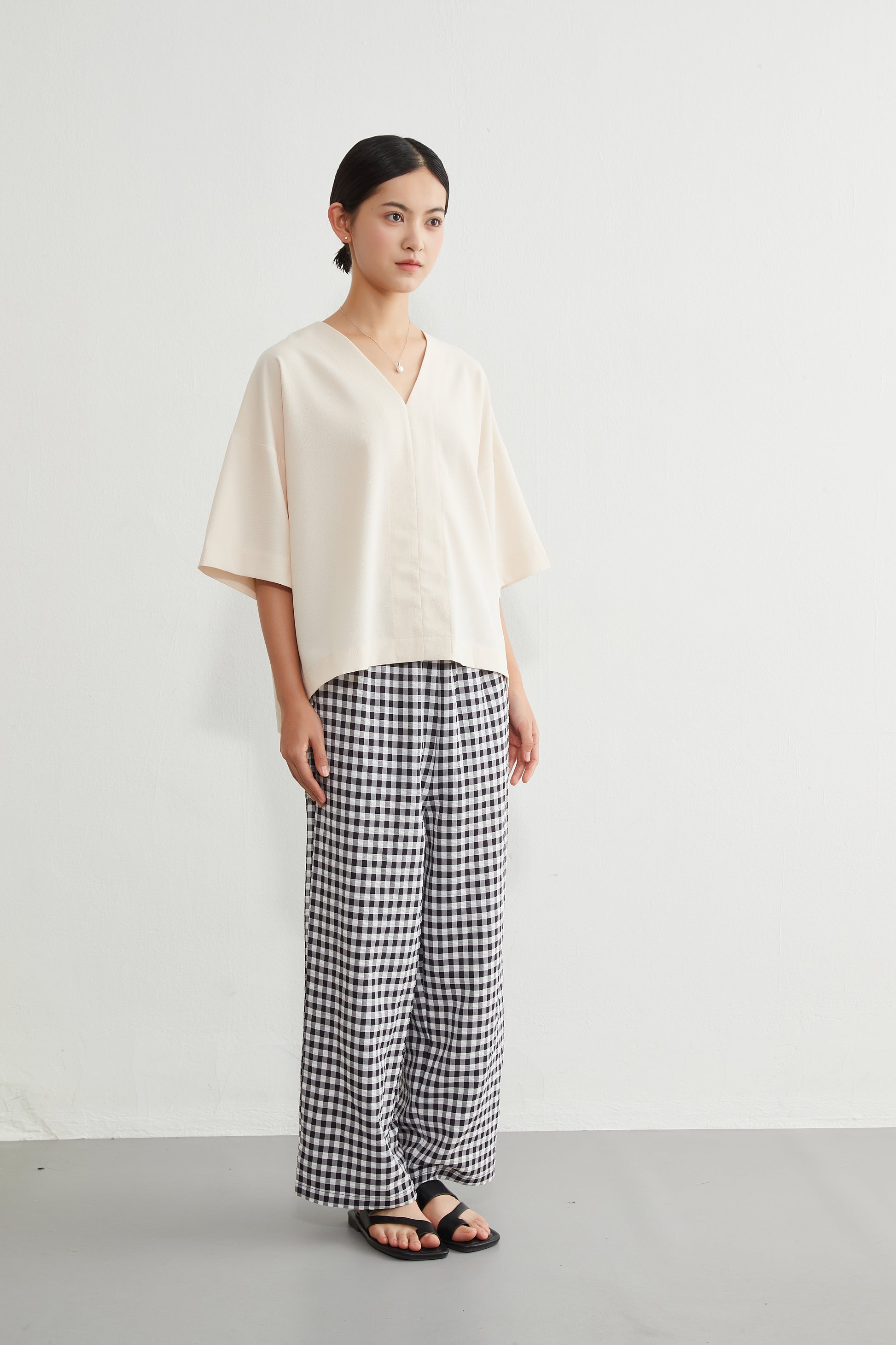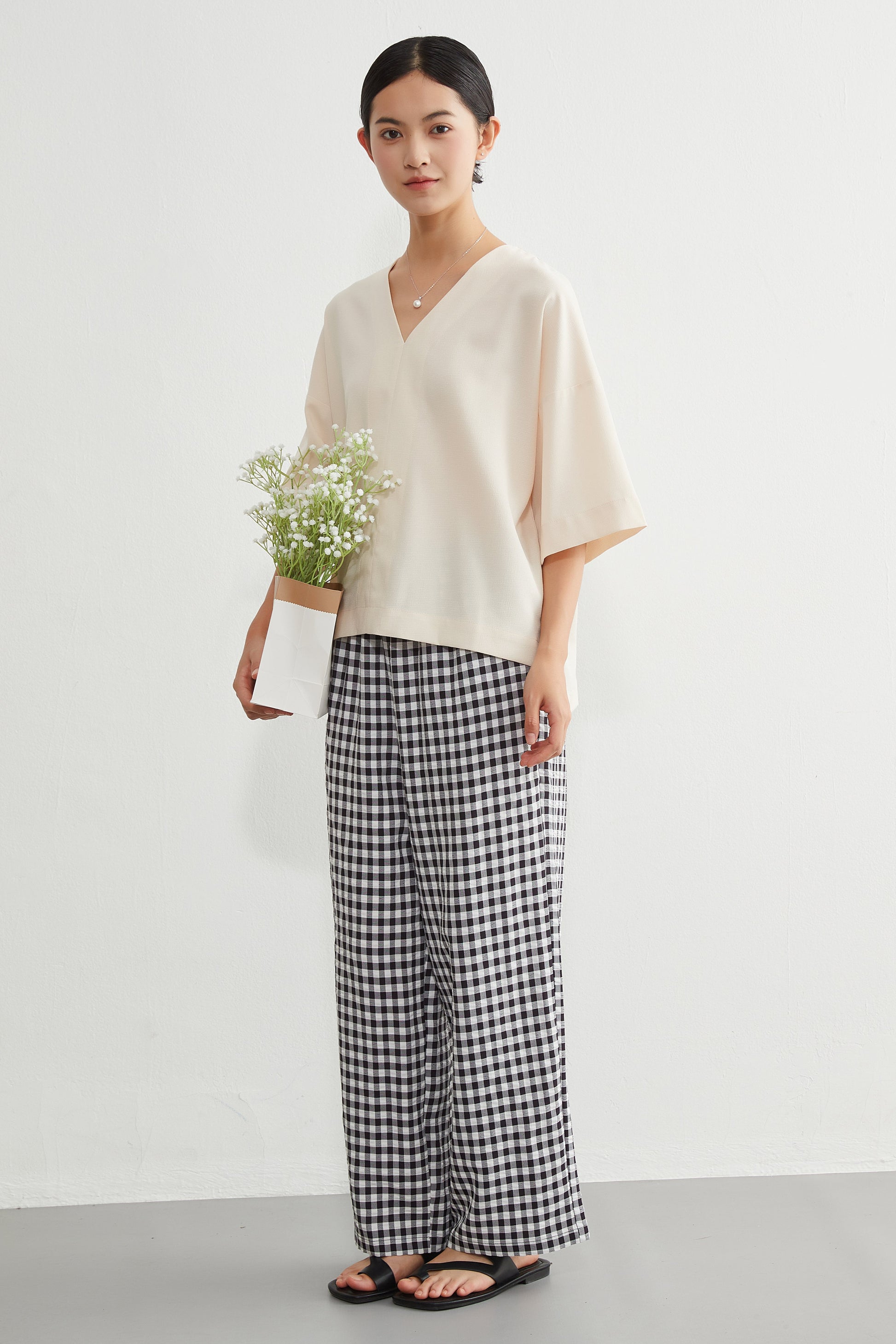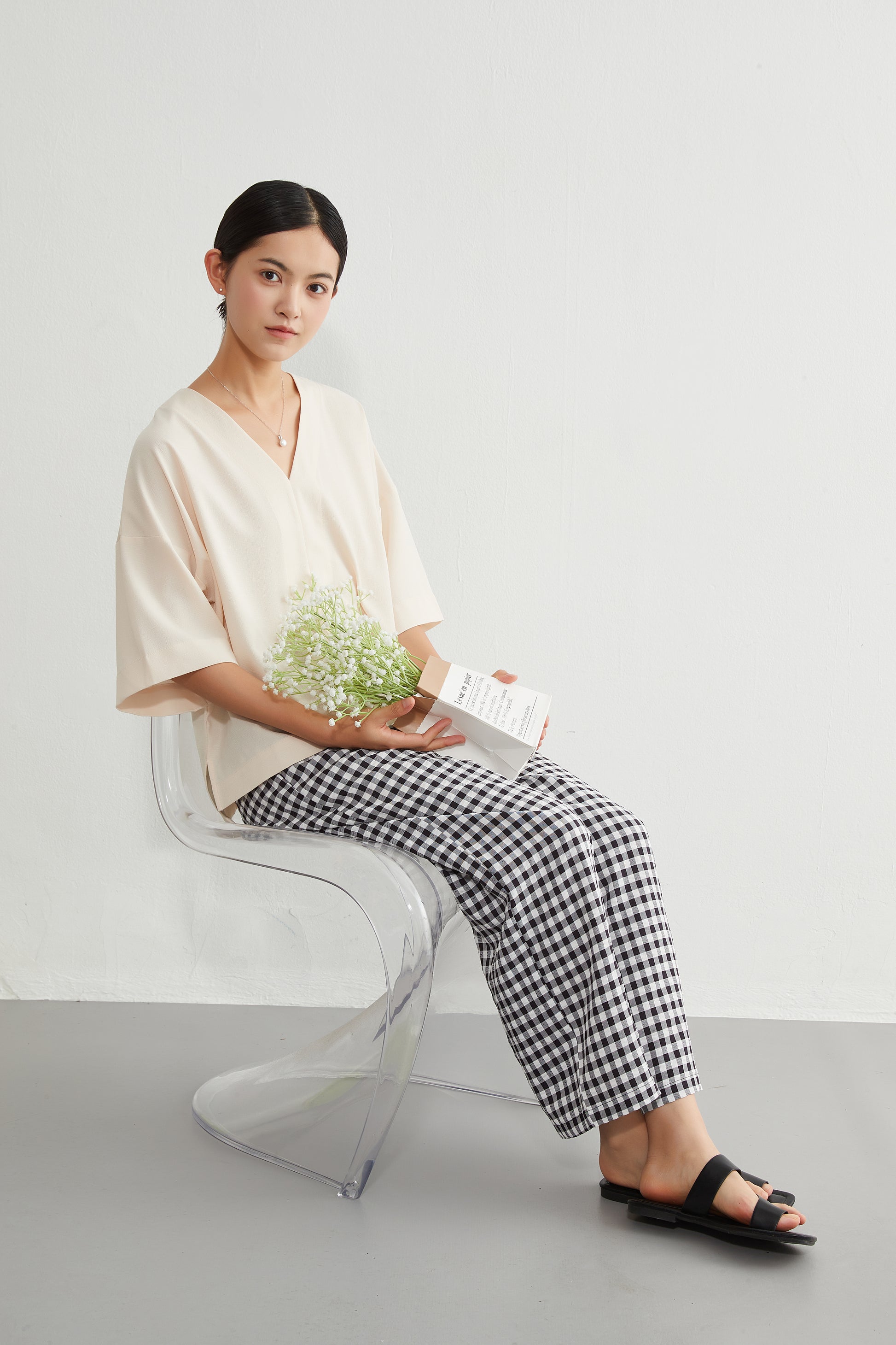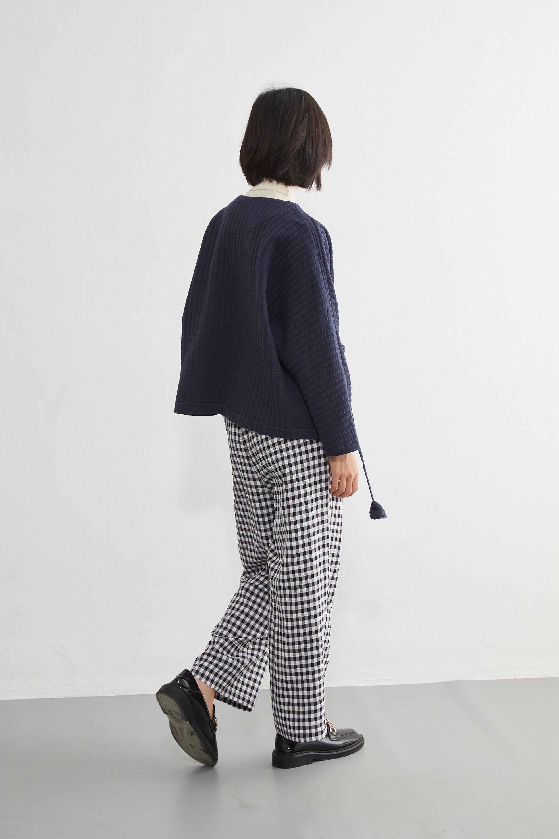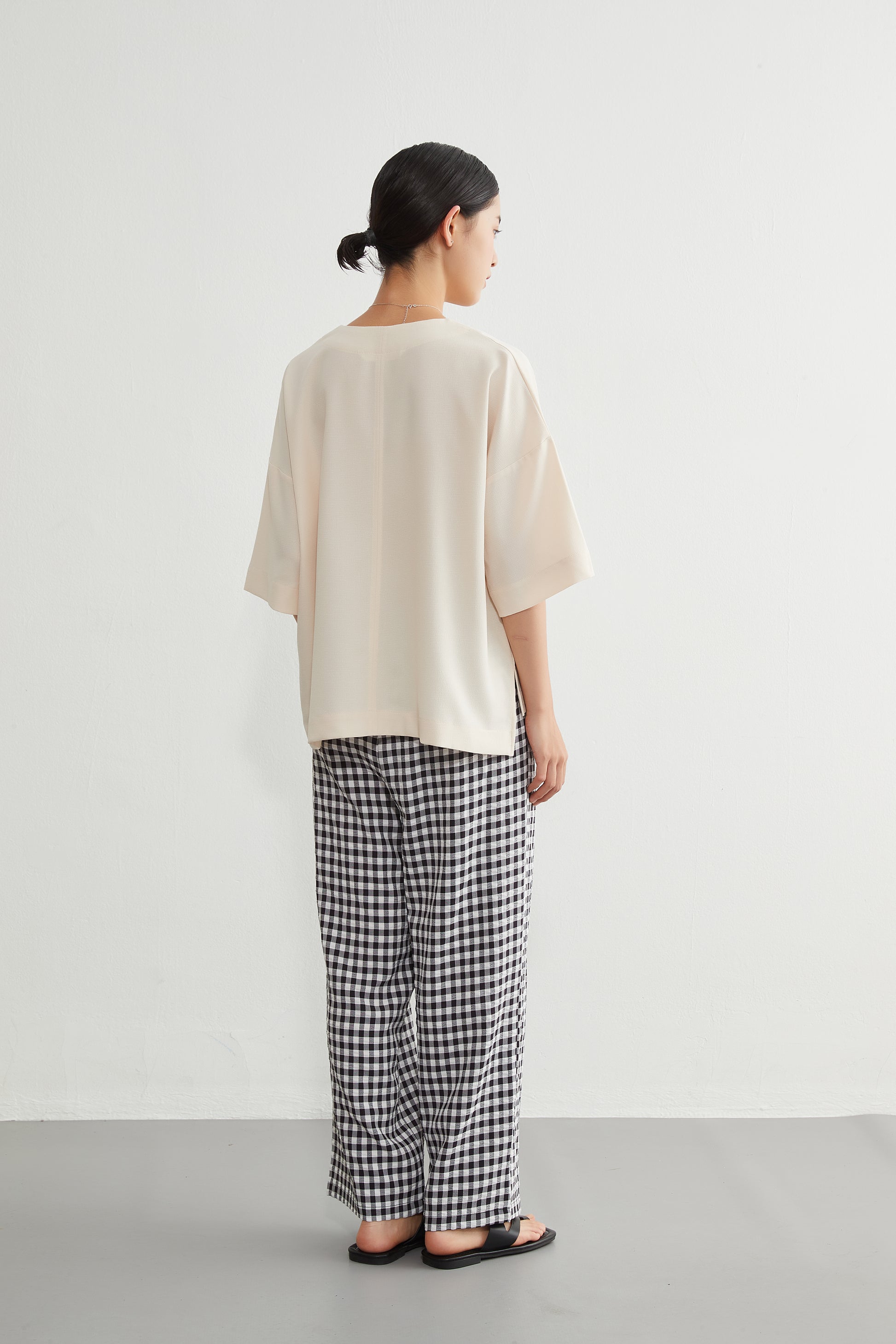 柔らかく軽やかな肌触りの素材で、春から秋にかけてロングシーズンで着やすい仕上がり。ギンガムチェックの程よい大きさと色味が、甘すぎず大人にも取り入れやすいバランスです。