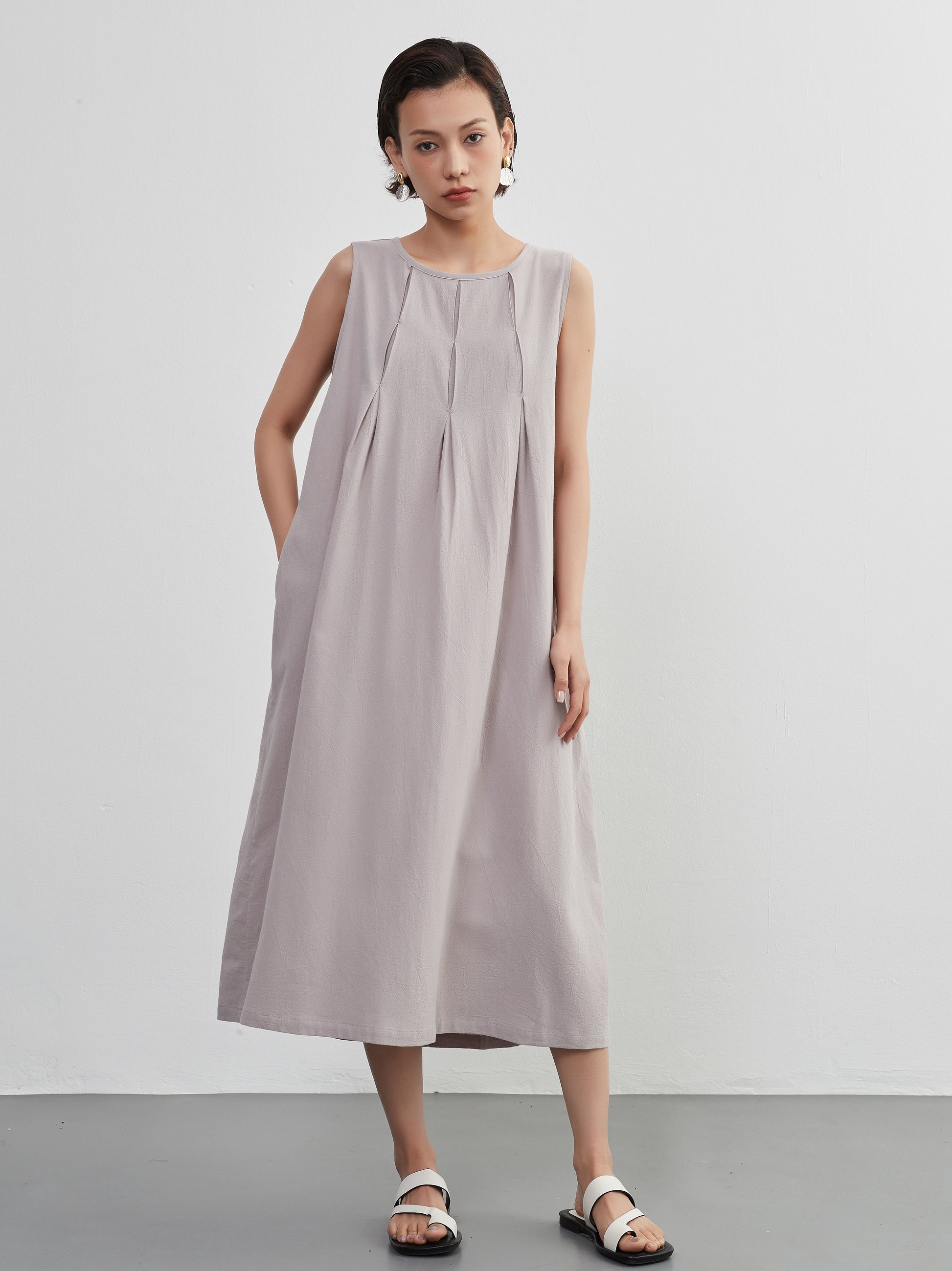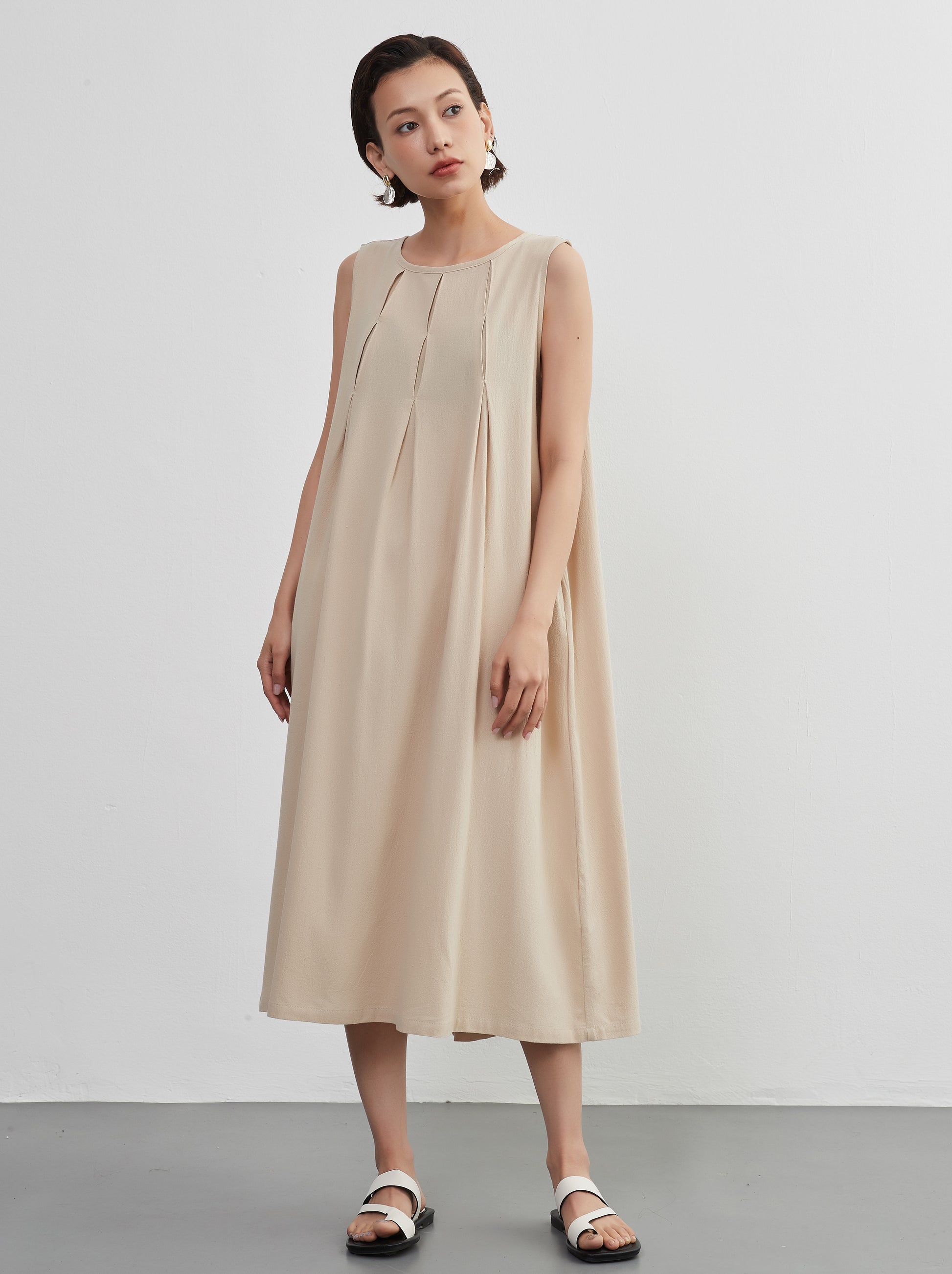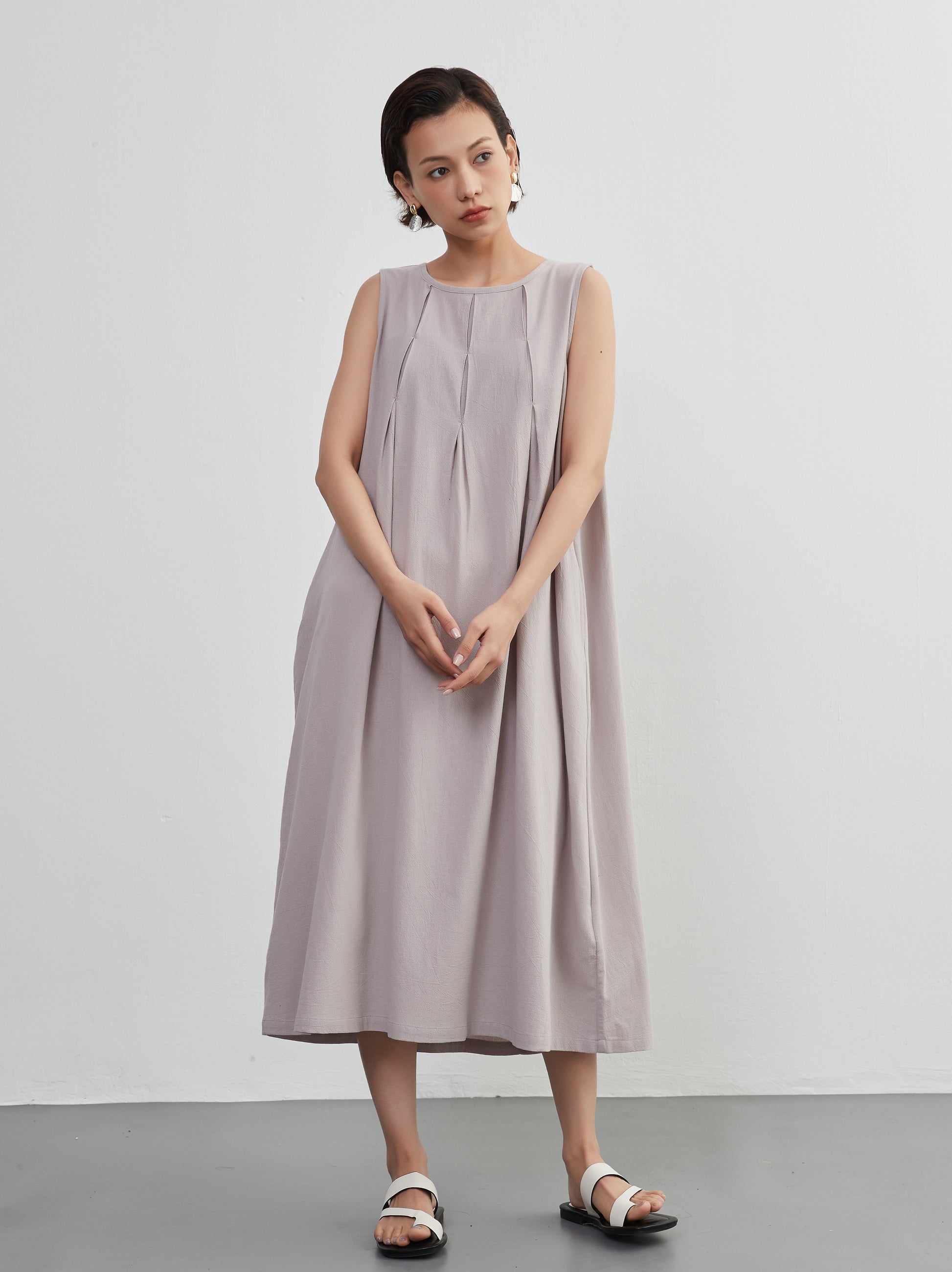 Tuck sleeveless dress 100% cotton