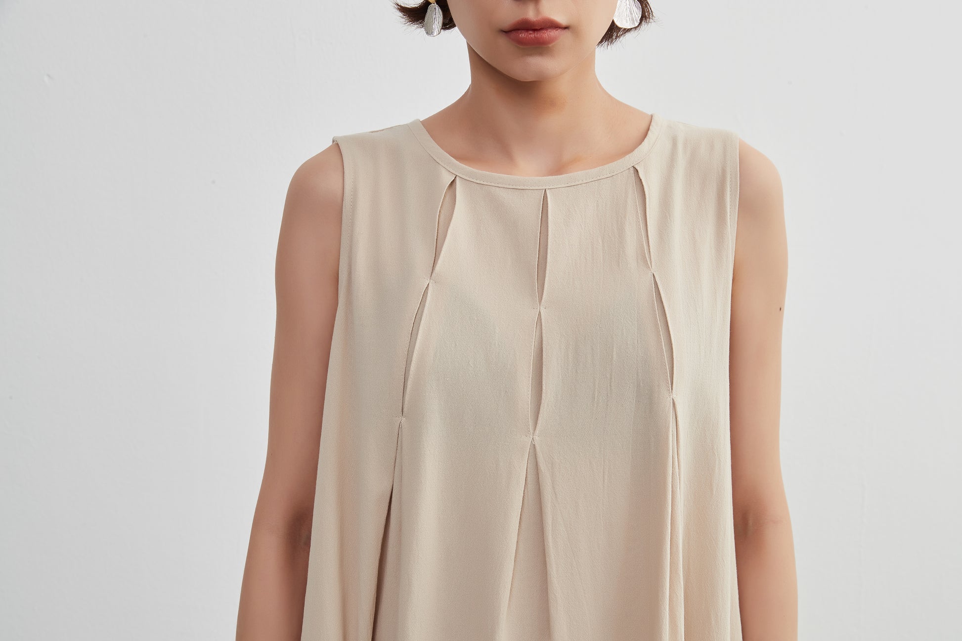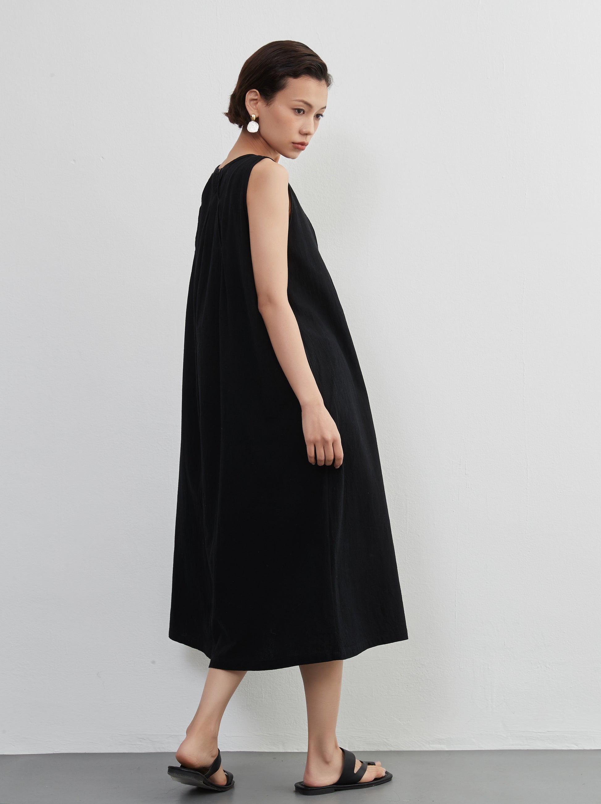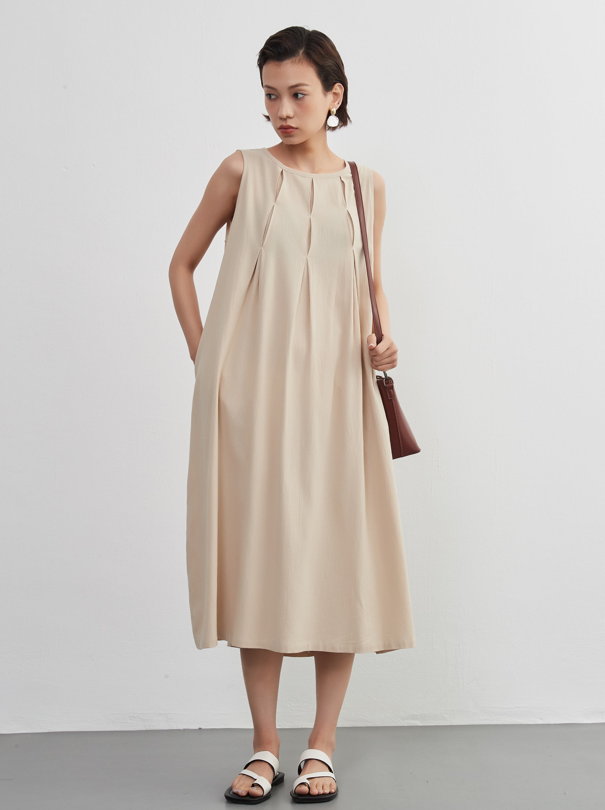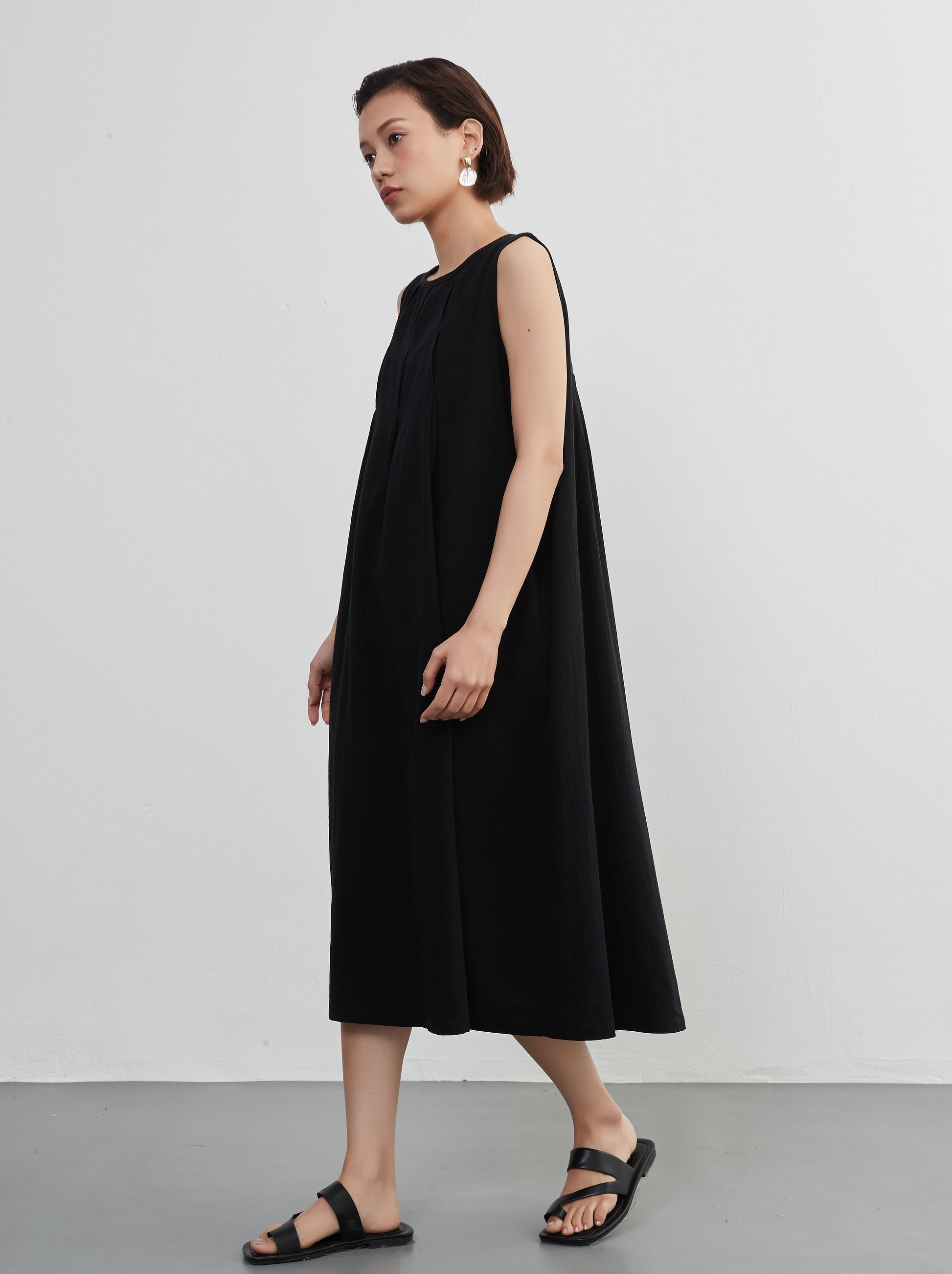 Tuck sleeveless dress 100% cotton