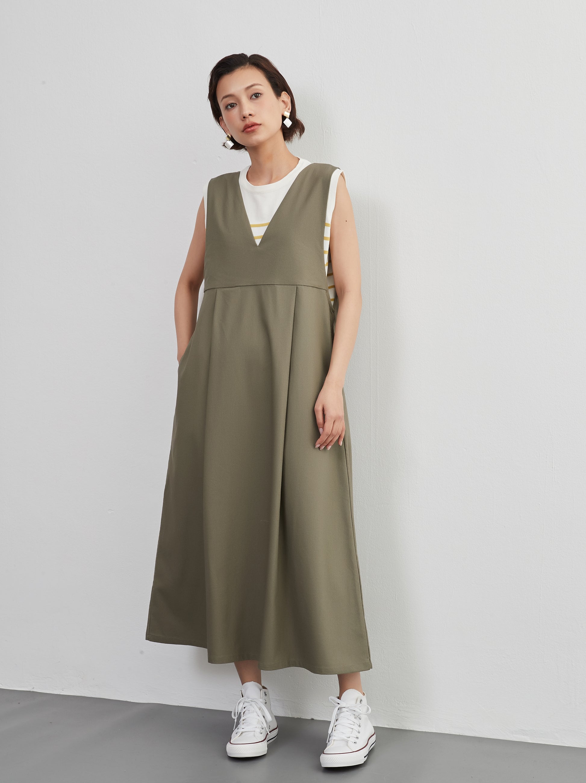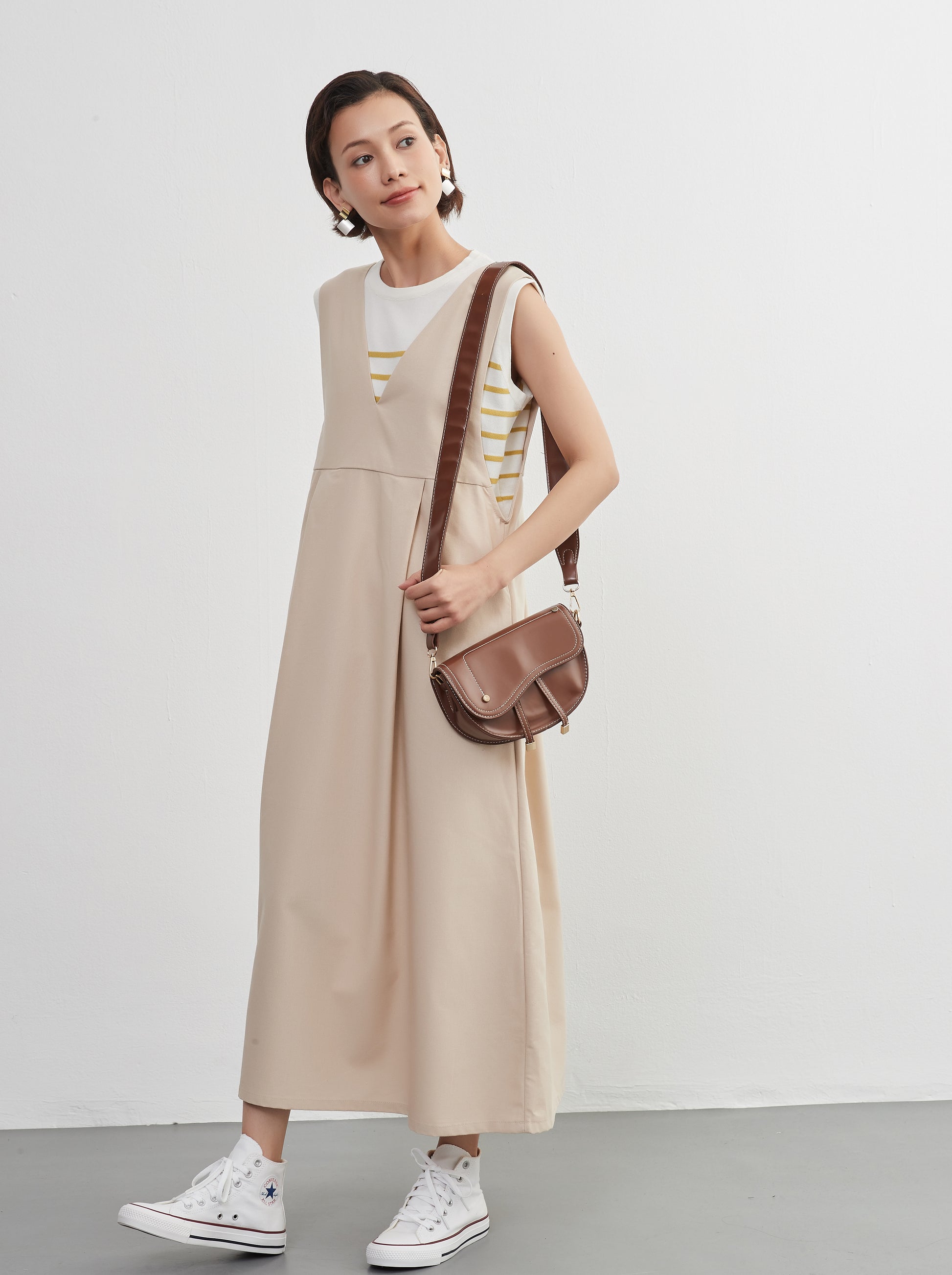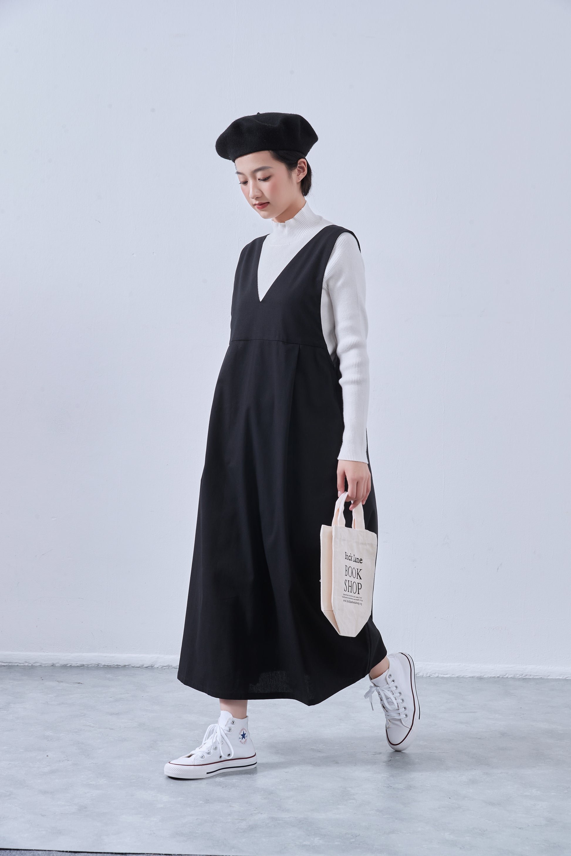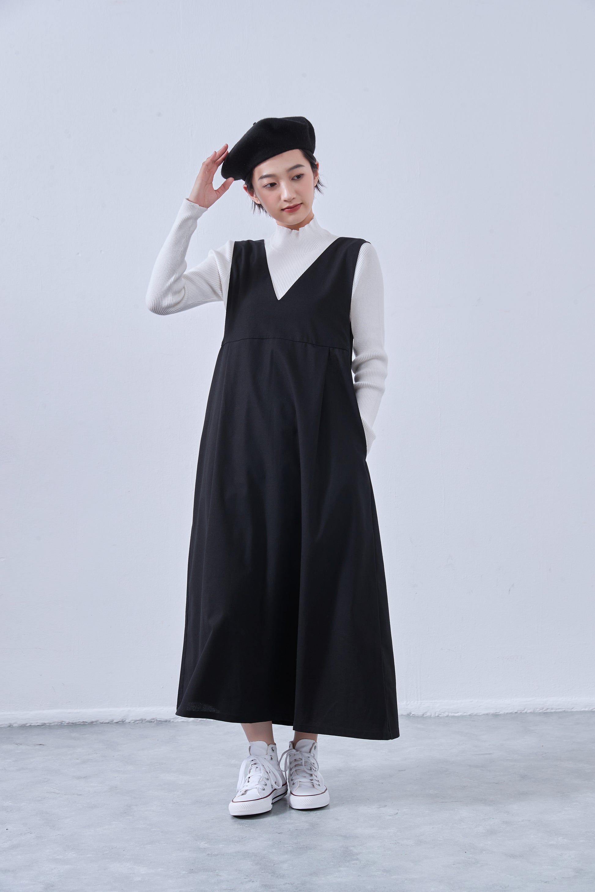 Introducing a jumper skirt and linen blend dress that is simple yet suitable for any season and style. It goes great with T-shirts and knitwear, making it a fun item to layer.