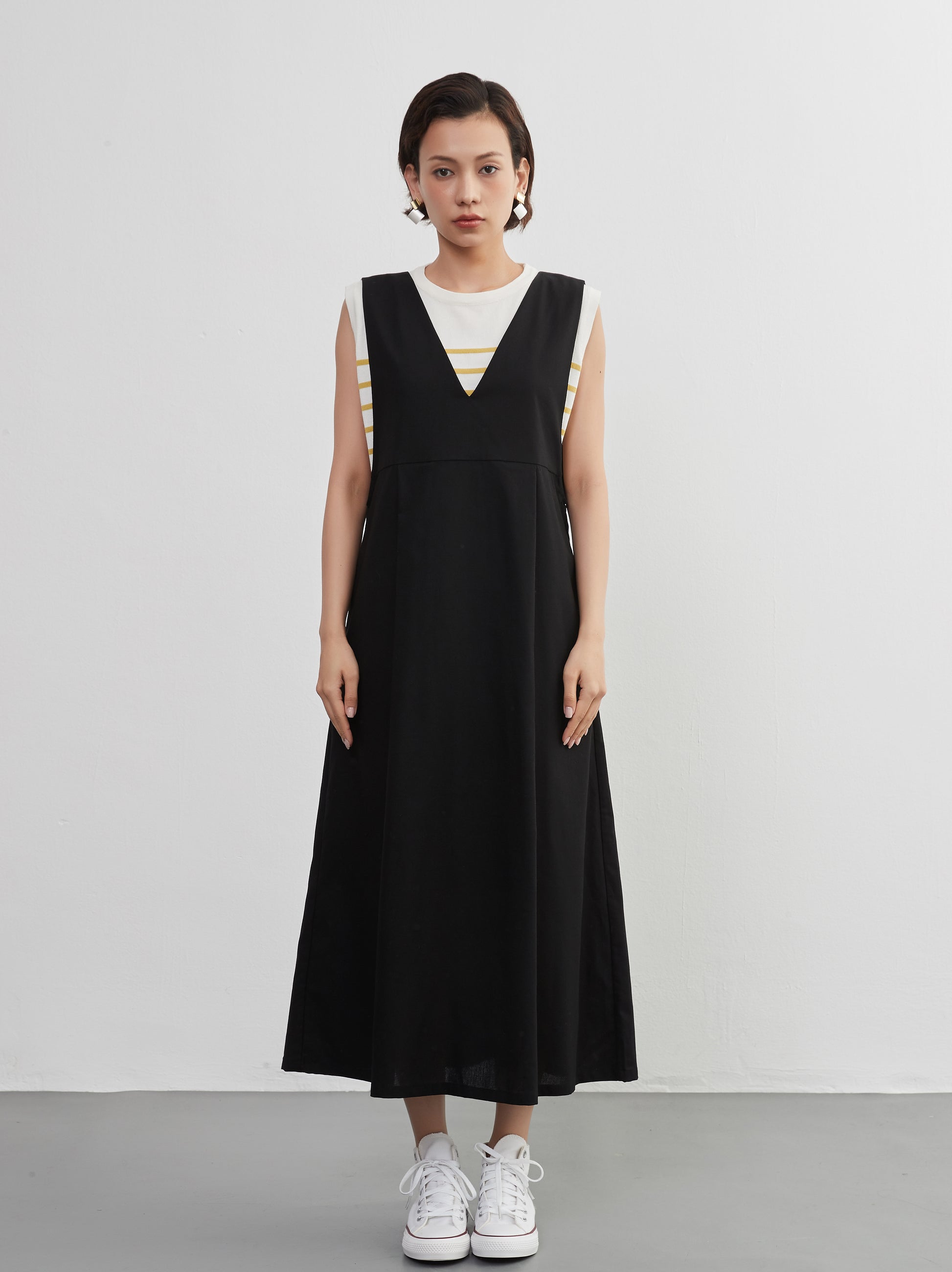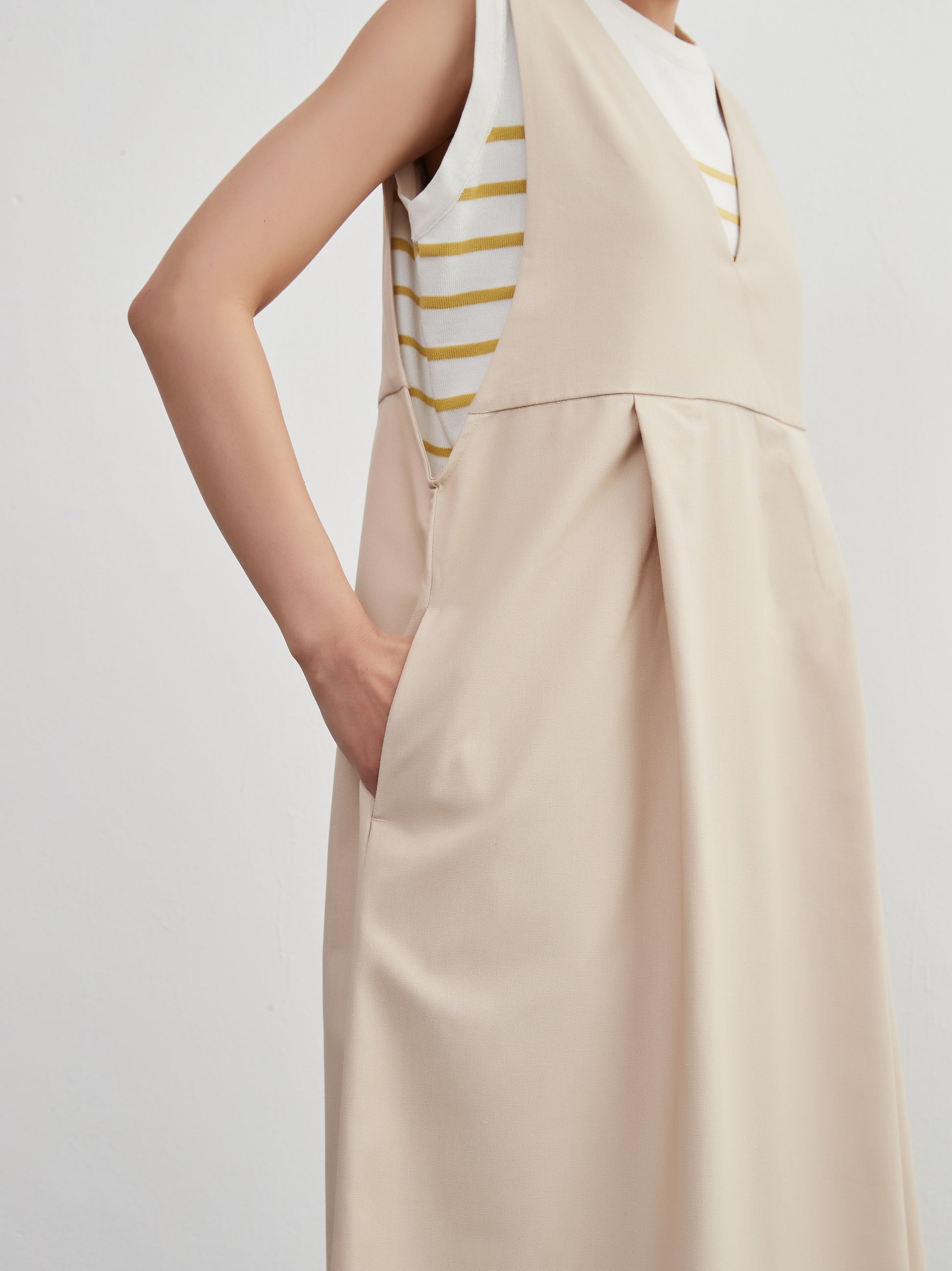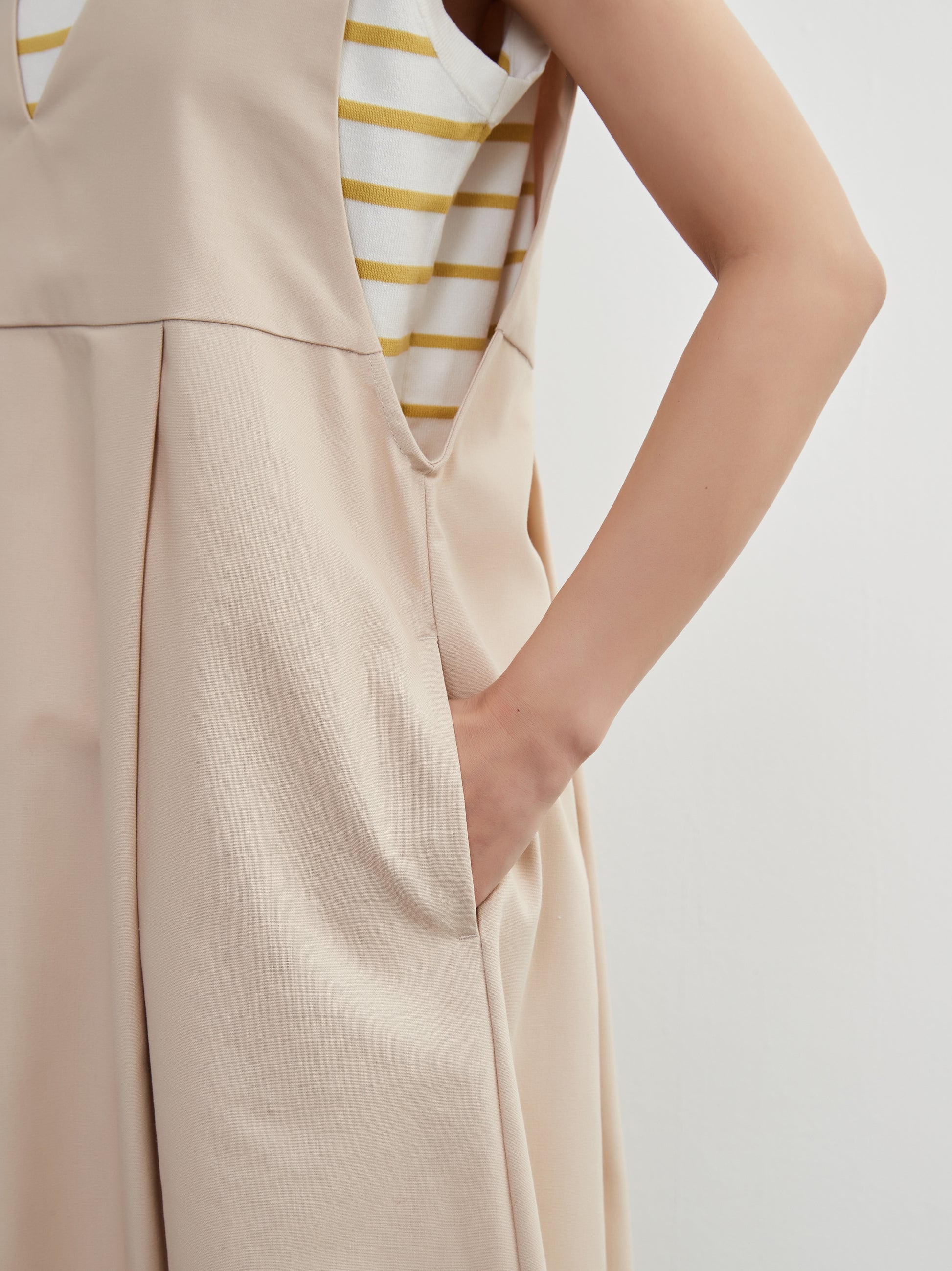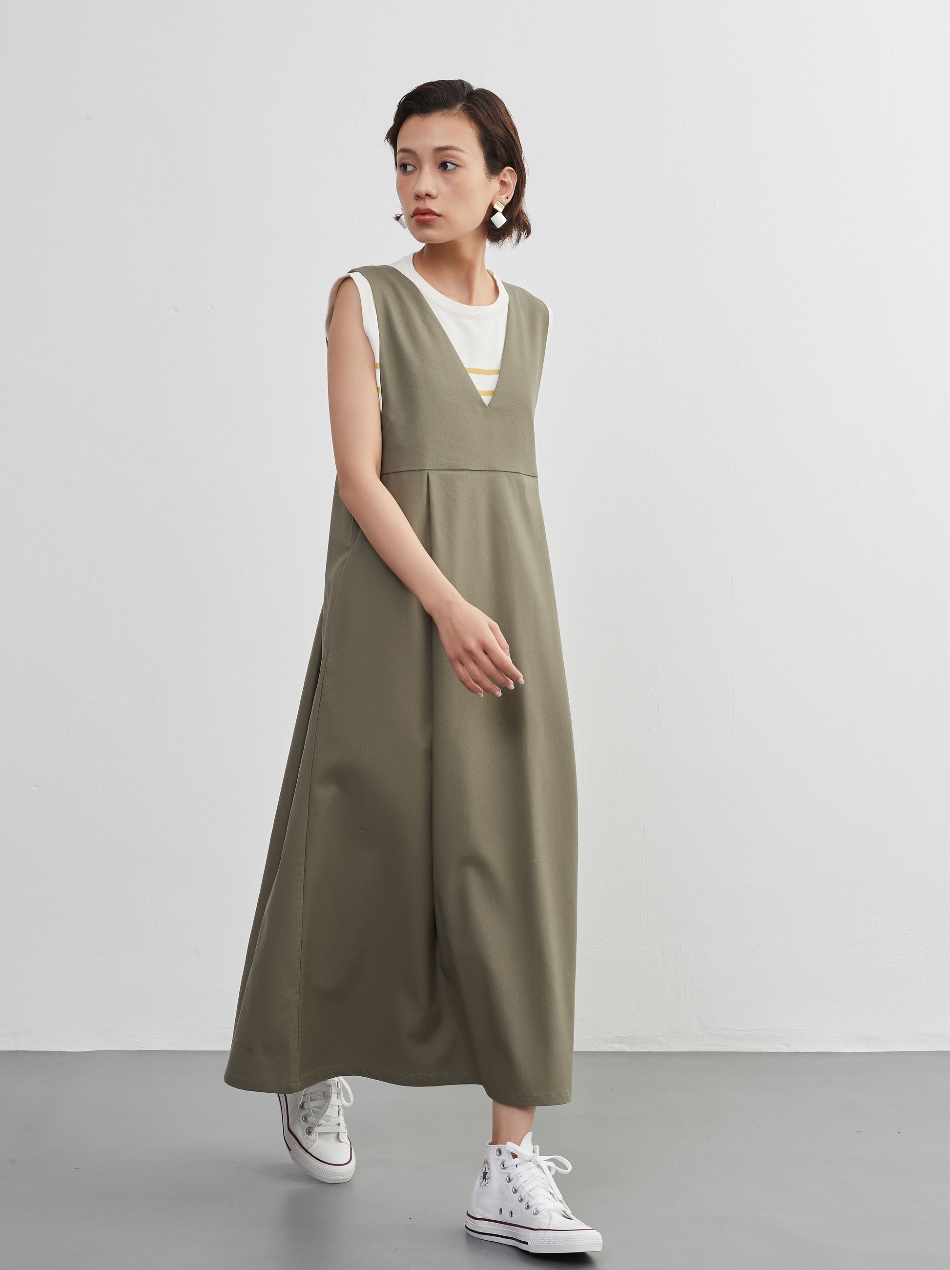 Introducing a jumper skirt and linen blend dress that is simple yet suitable for any season and style. It goes great with T-shirts and knitwear, making it a fun item to layer.