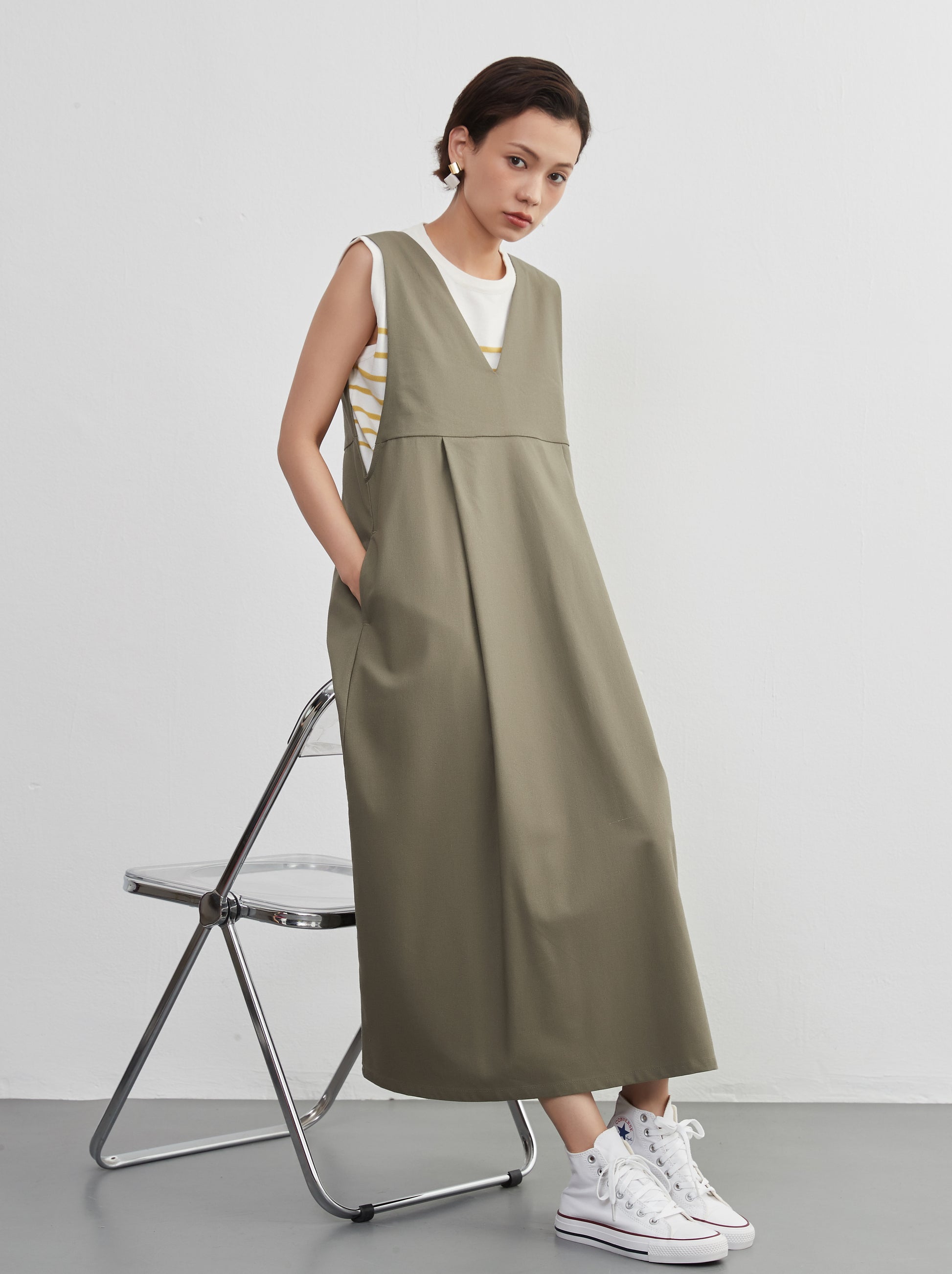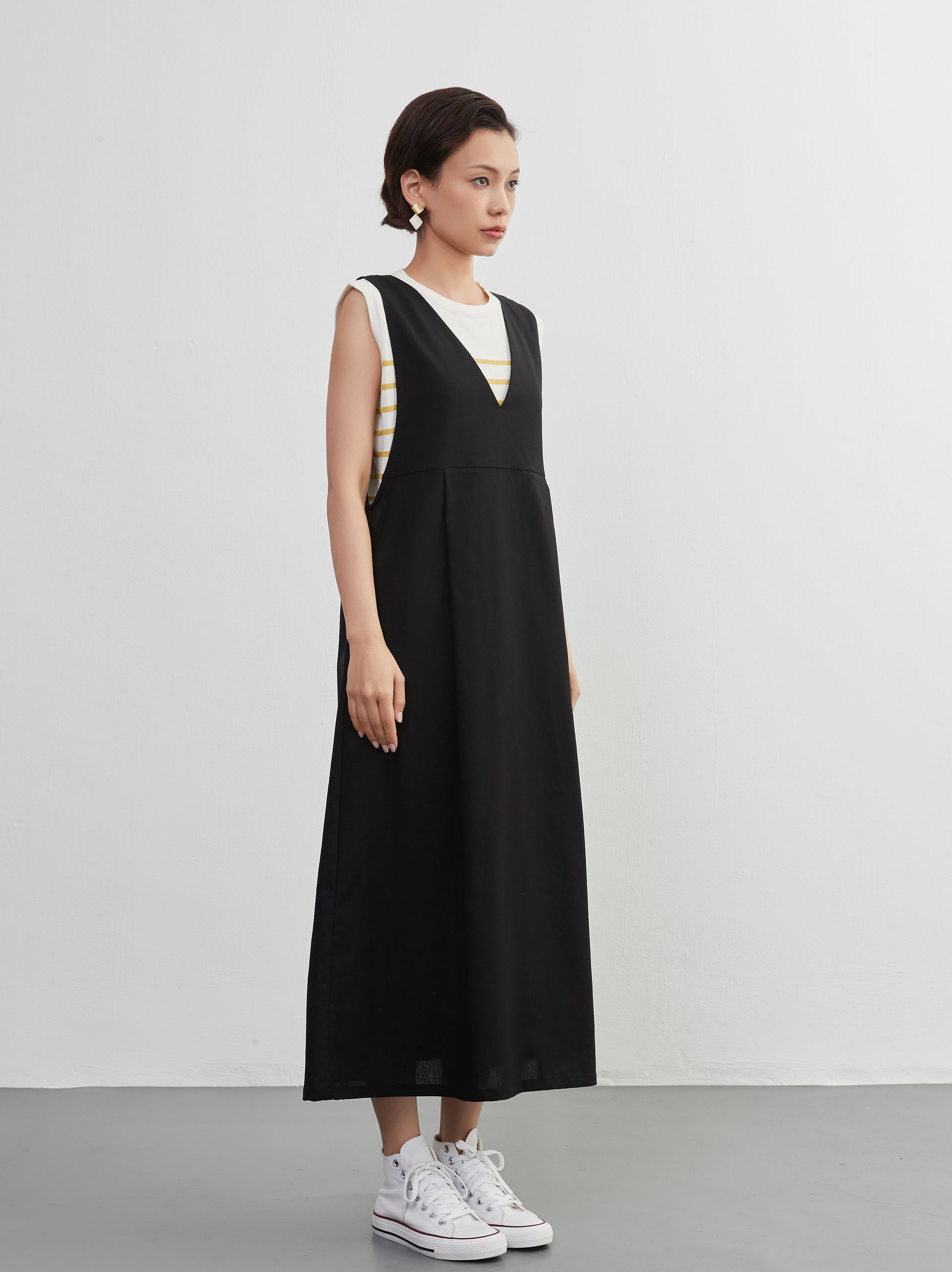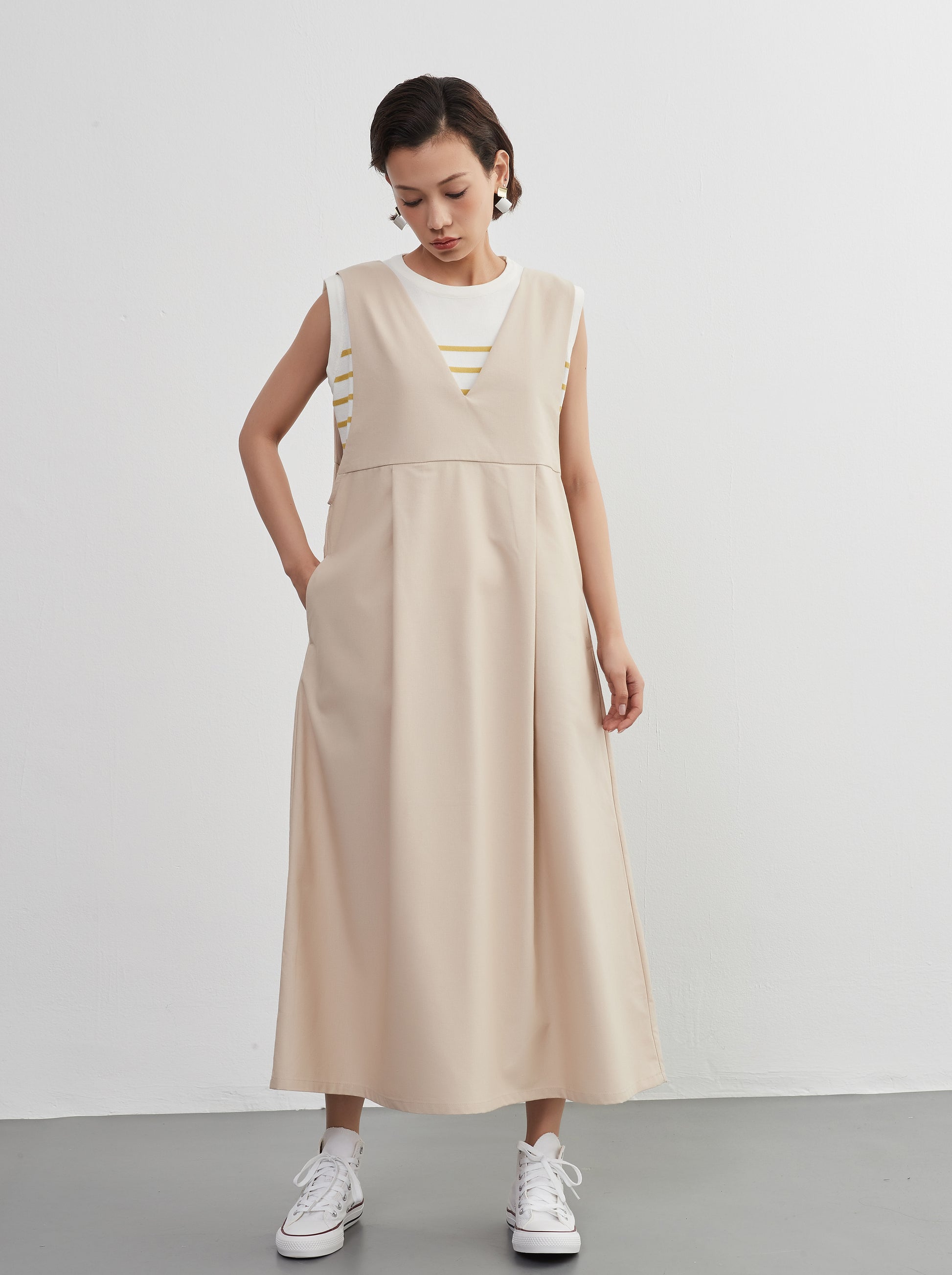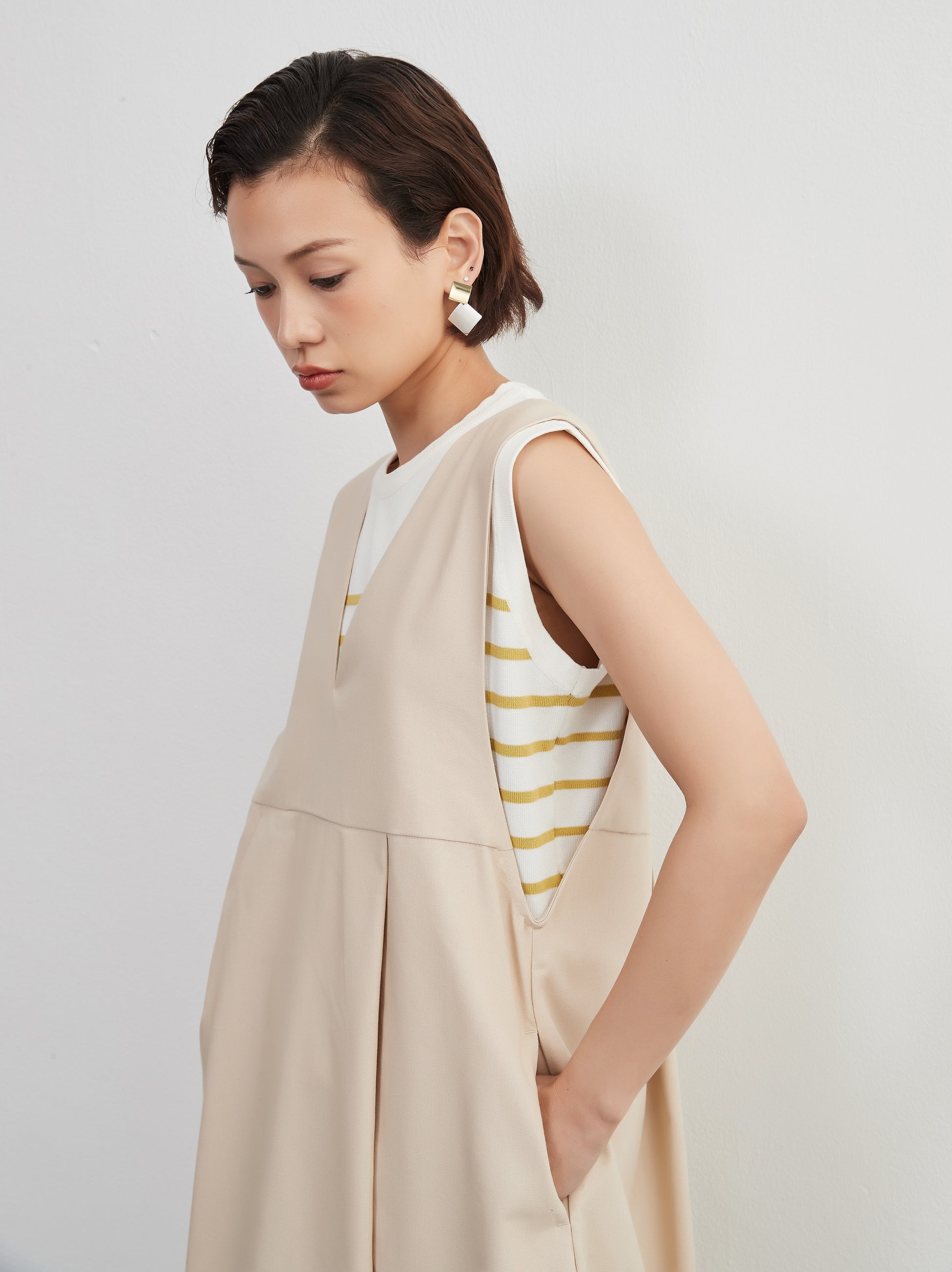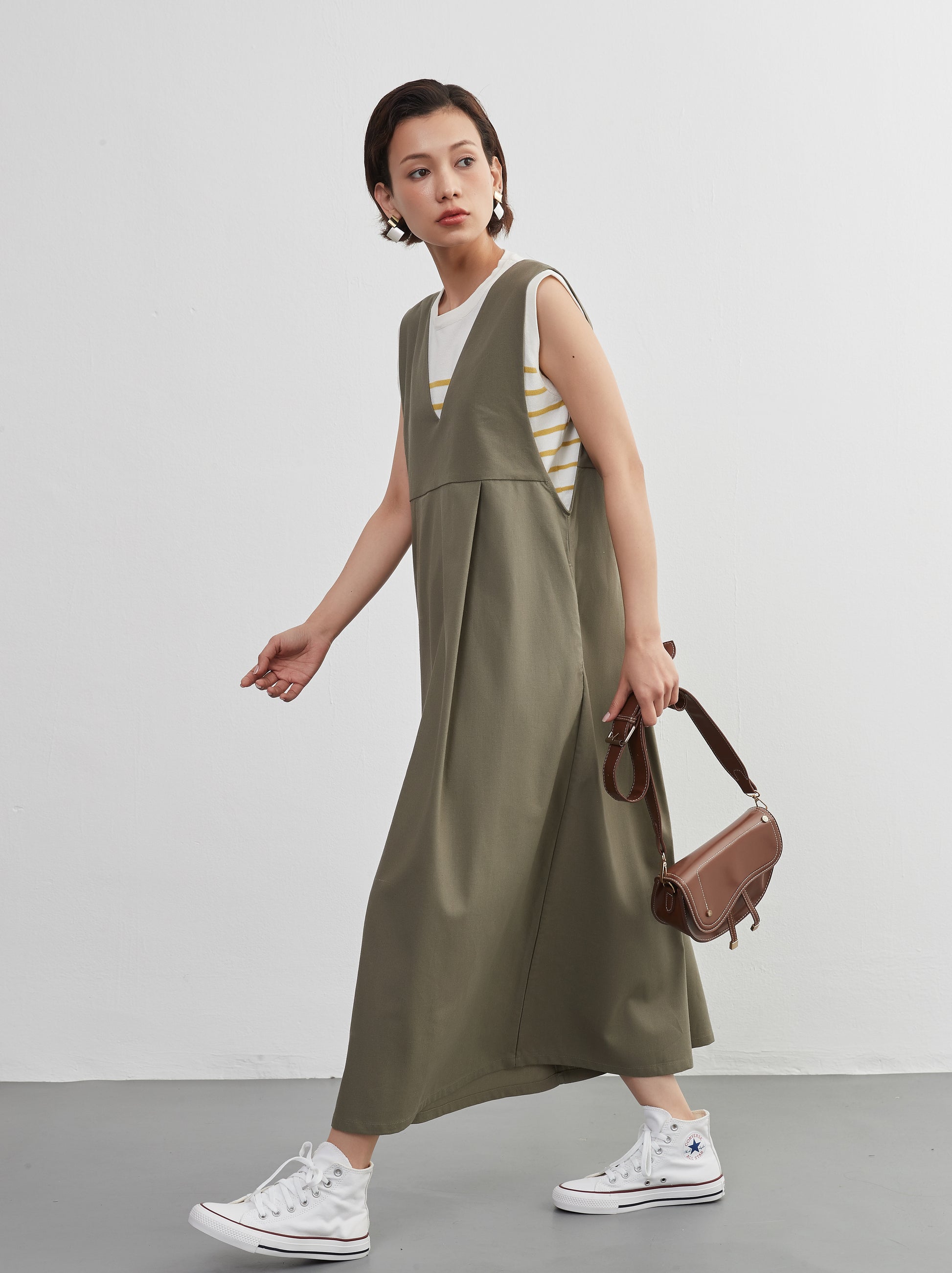 Introducing a jumper skirt and linen blend dress that is simple yet suitable for any season and style. It goes great with T-shirts and knitwear, making it a fun item to layer.