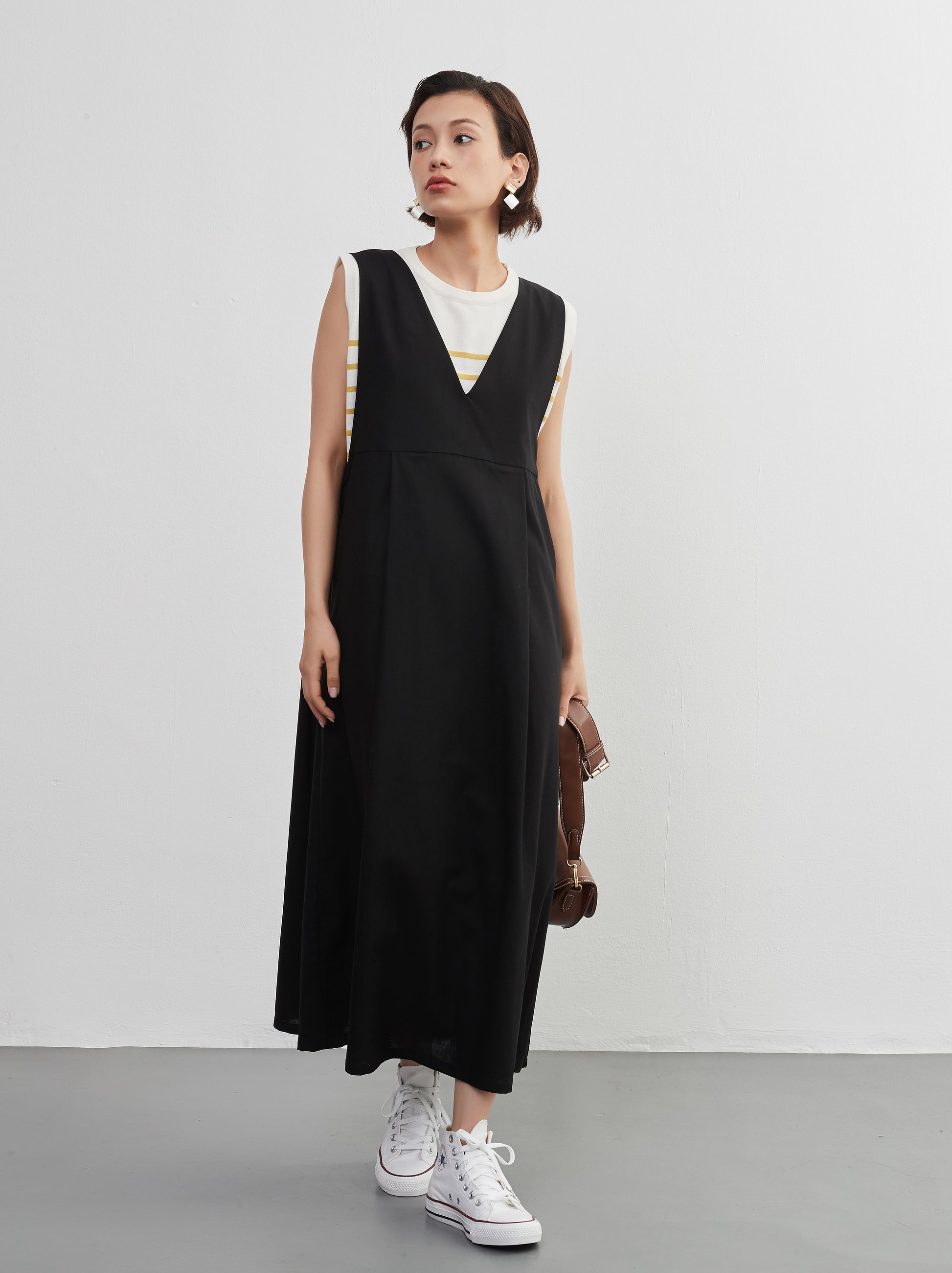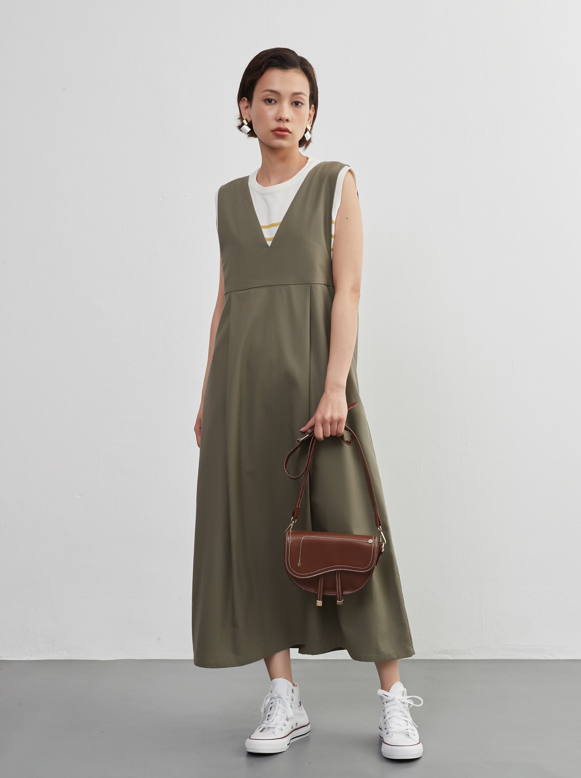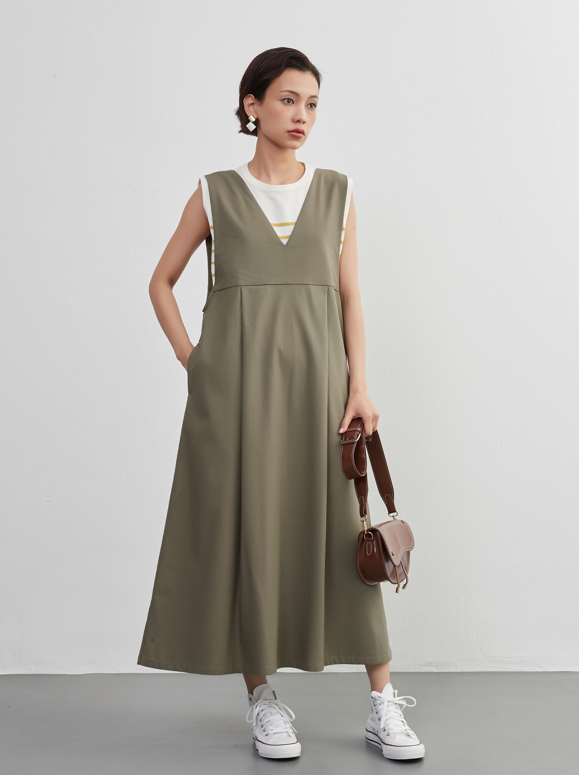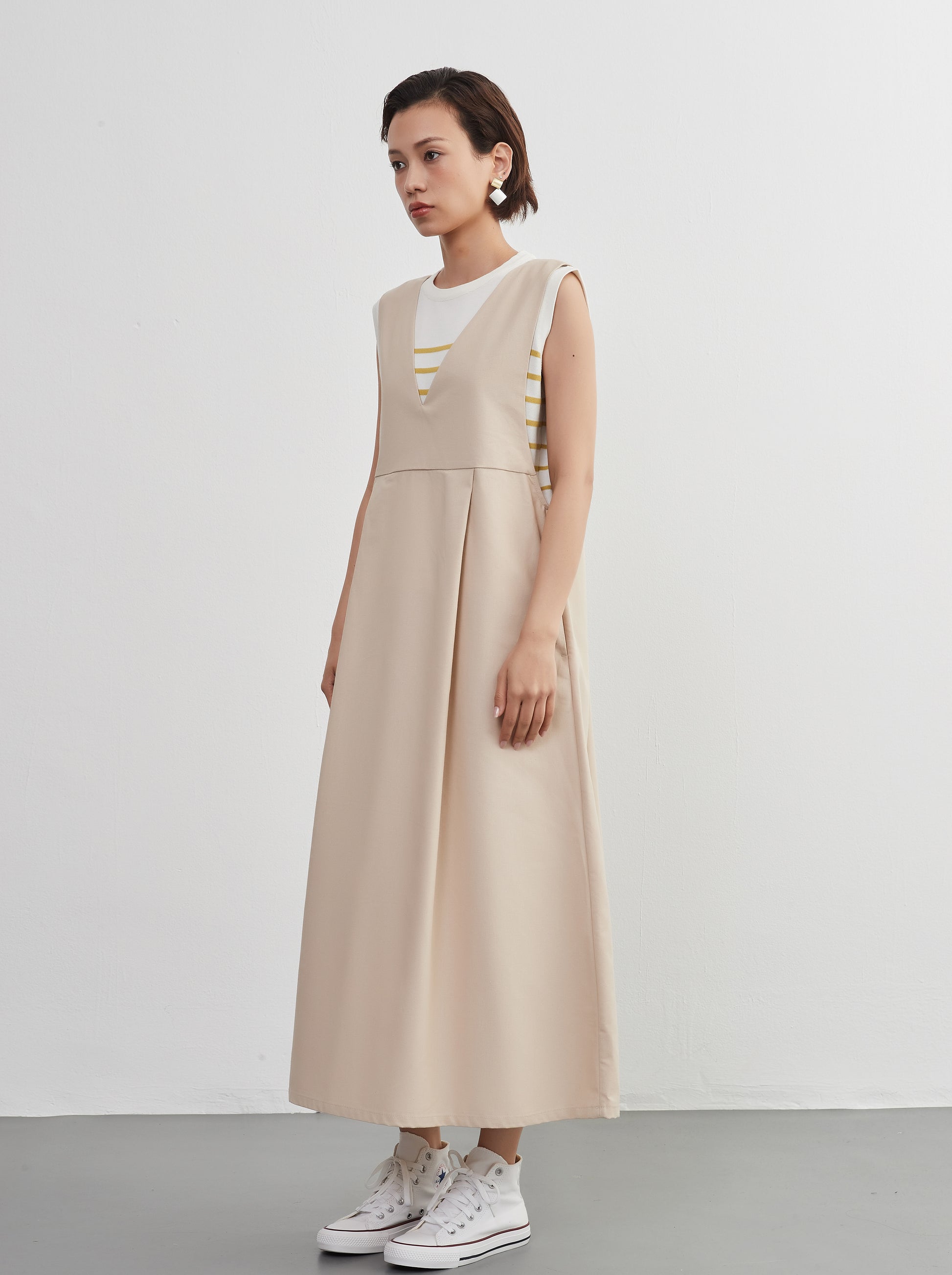 Introducing a jumper skirt and linen blend dress that is simple yet suitable for any season and style. It goes great with T-shirts and knitwear, making it a fun item to layer.