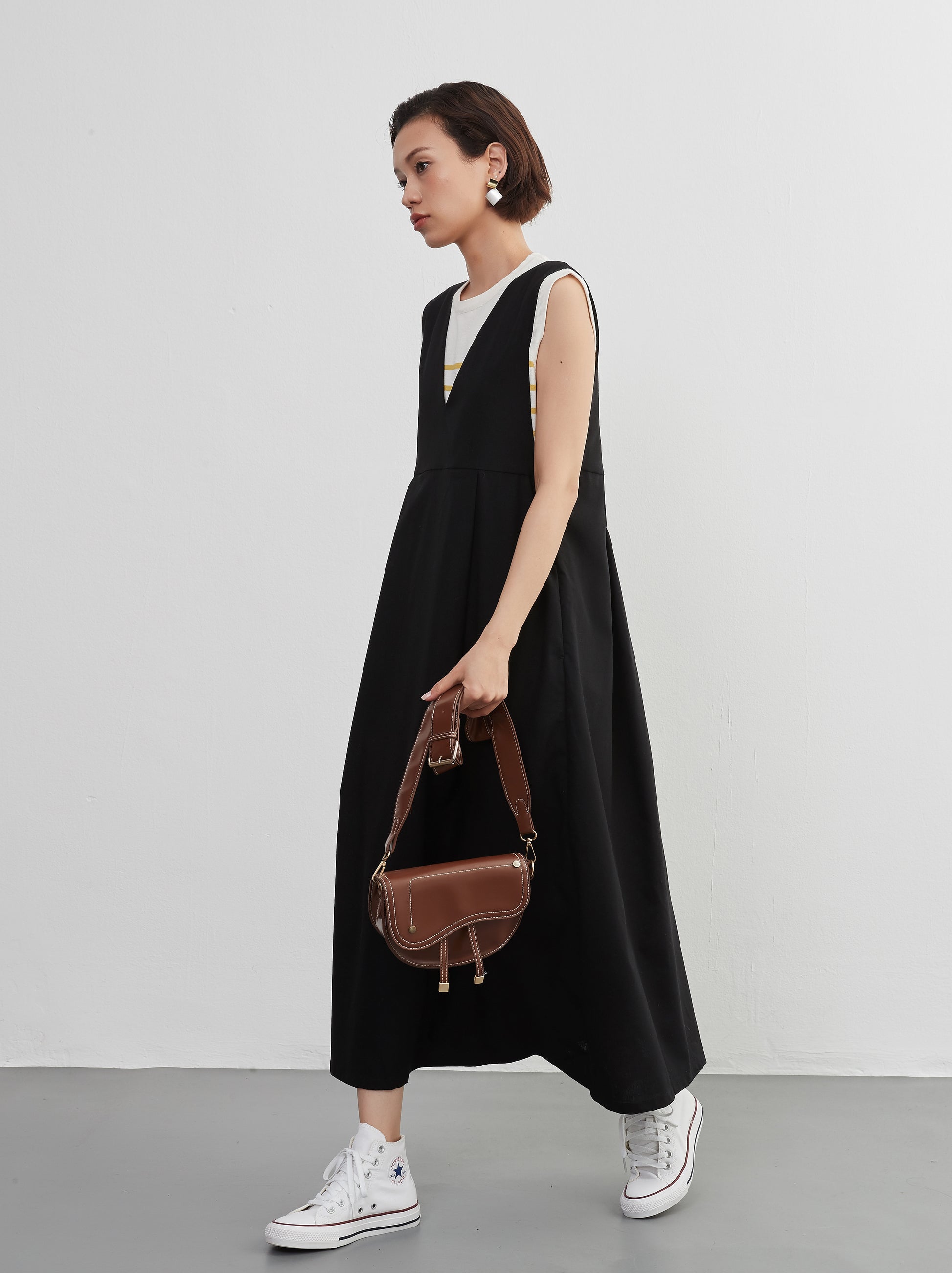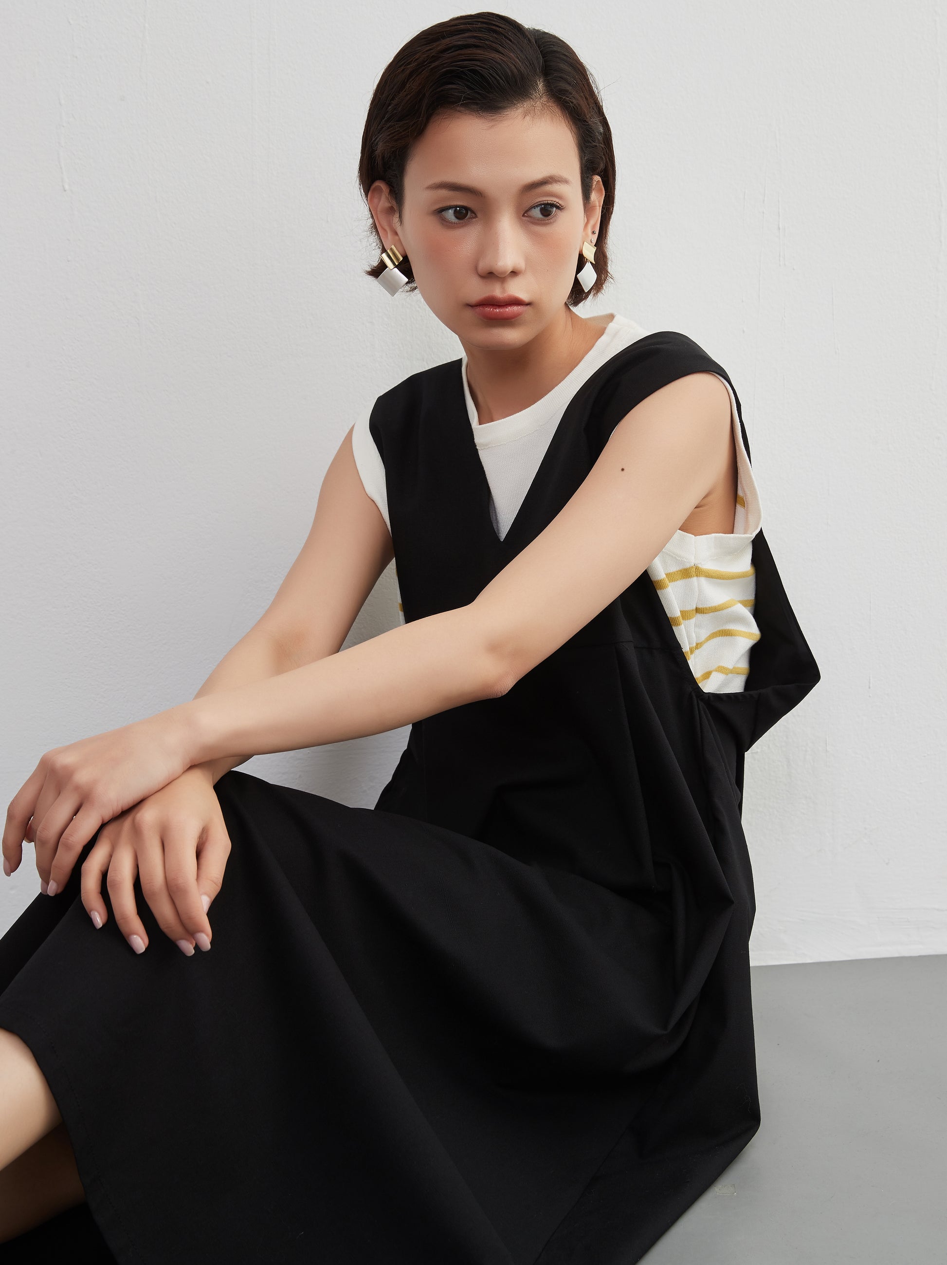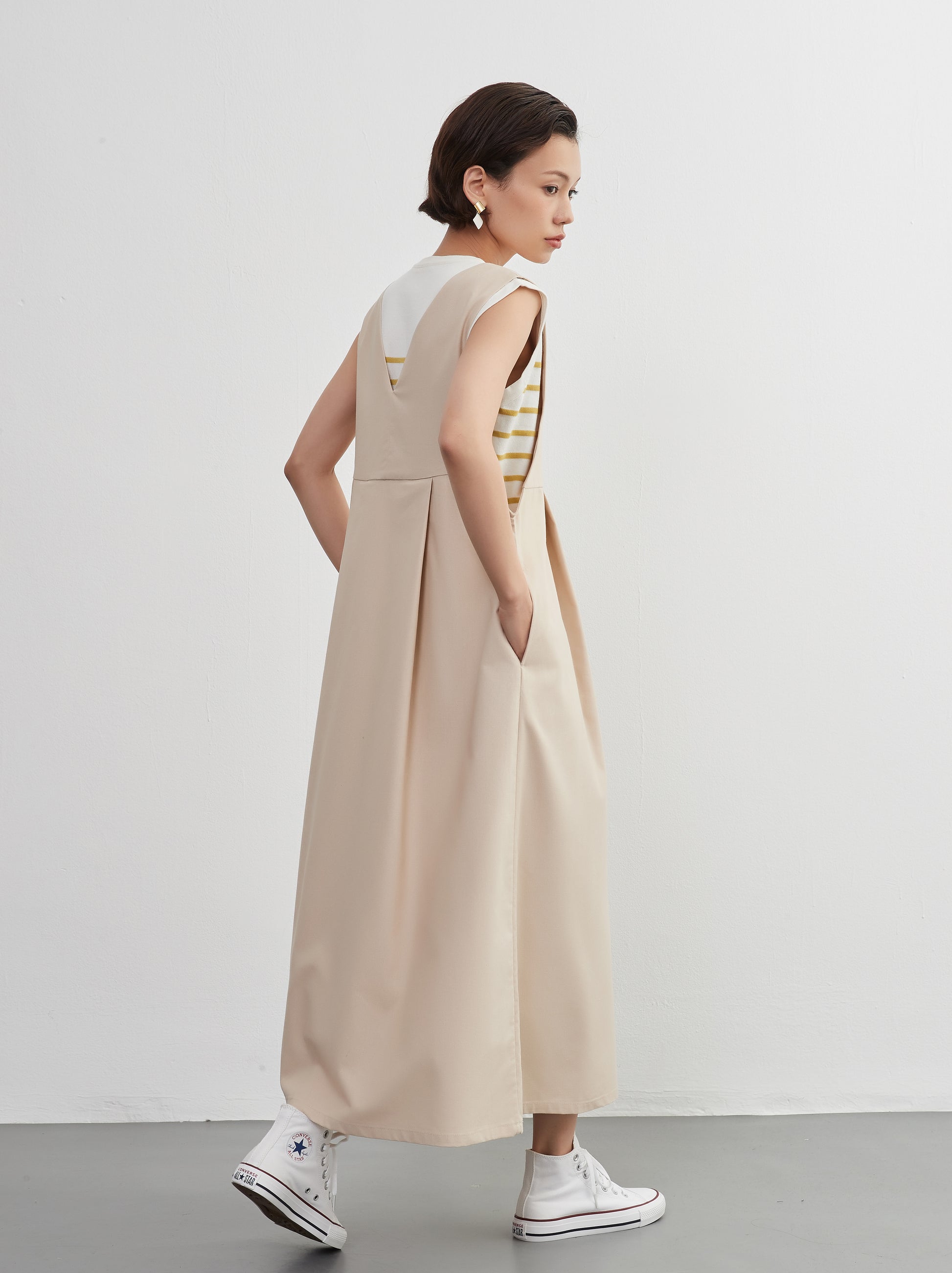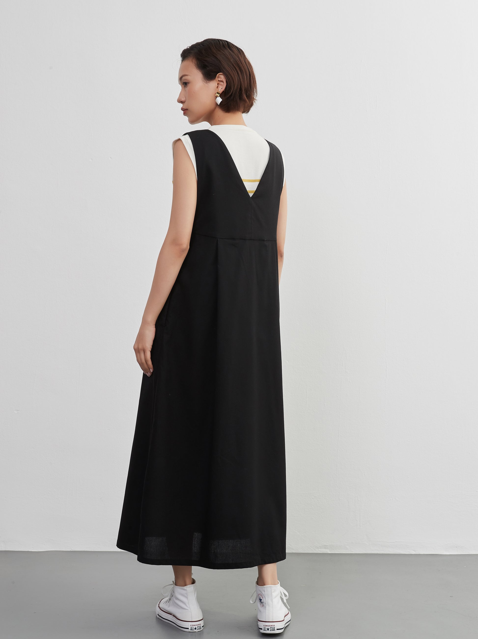 Introducing a jumper skirt and linen blend dress that is simple yet suitable for any season and style. It goes great with T-shirts and knitwear, making it a fun item to layer.