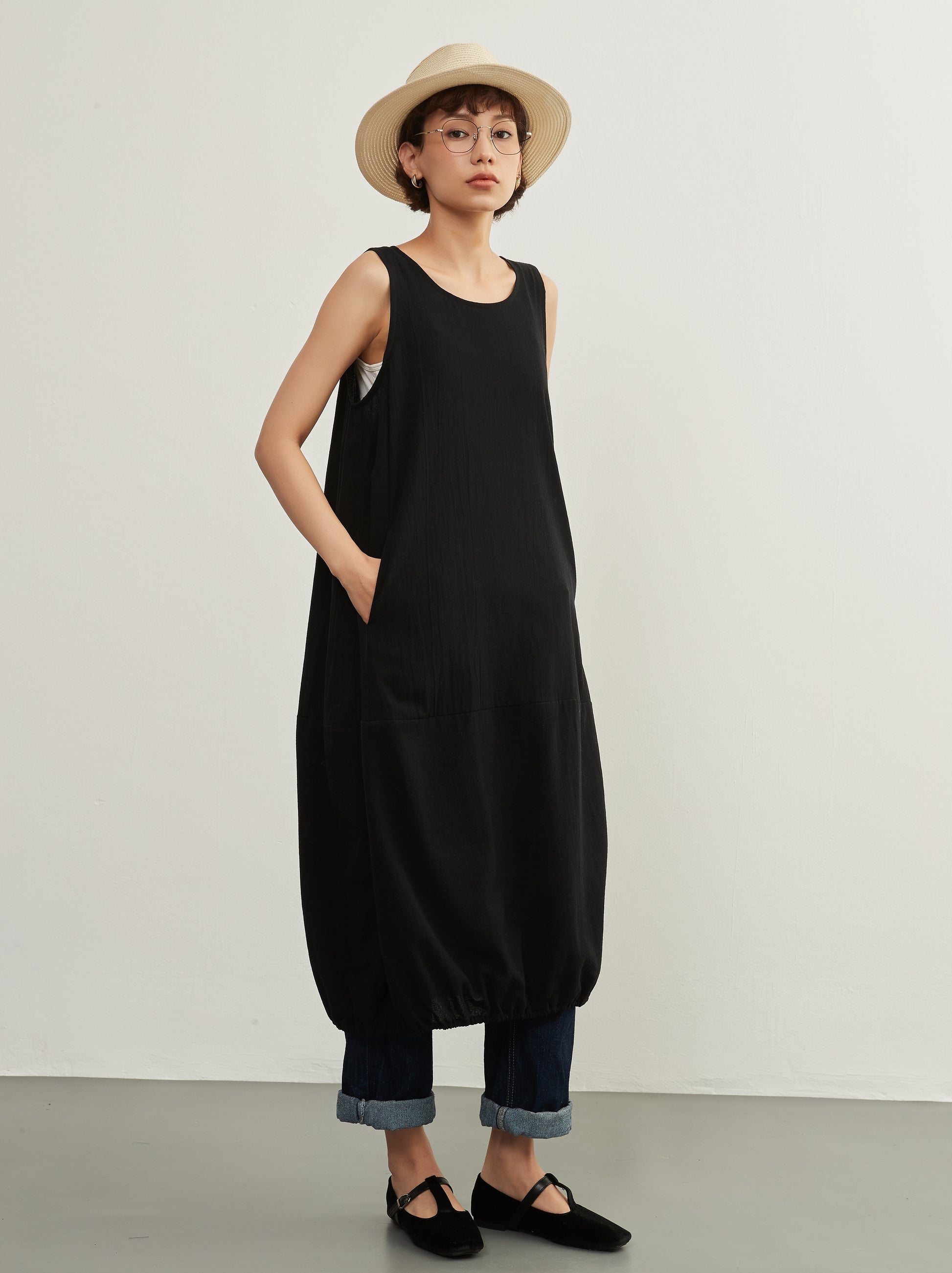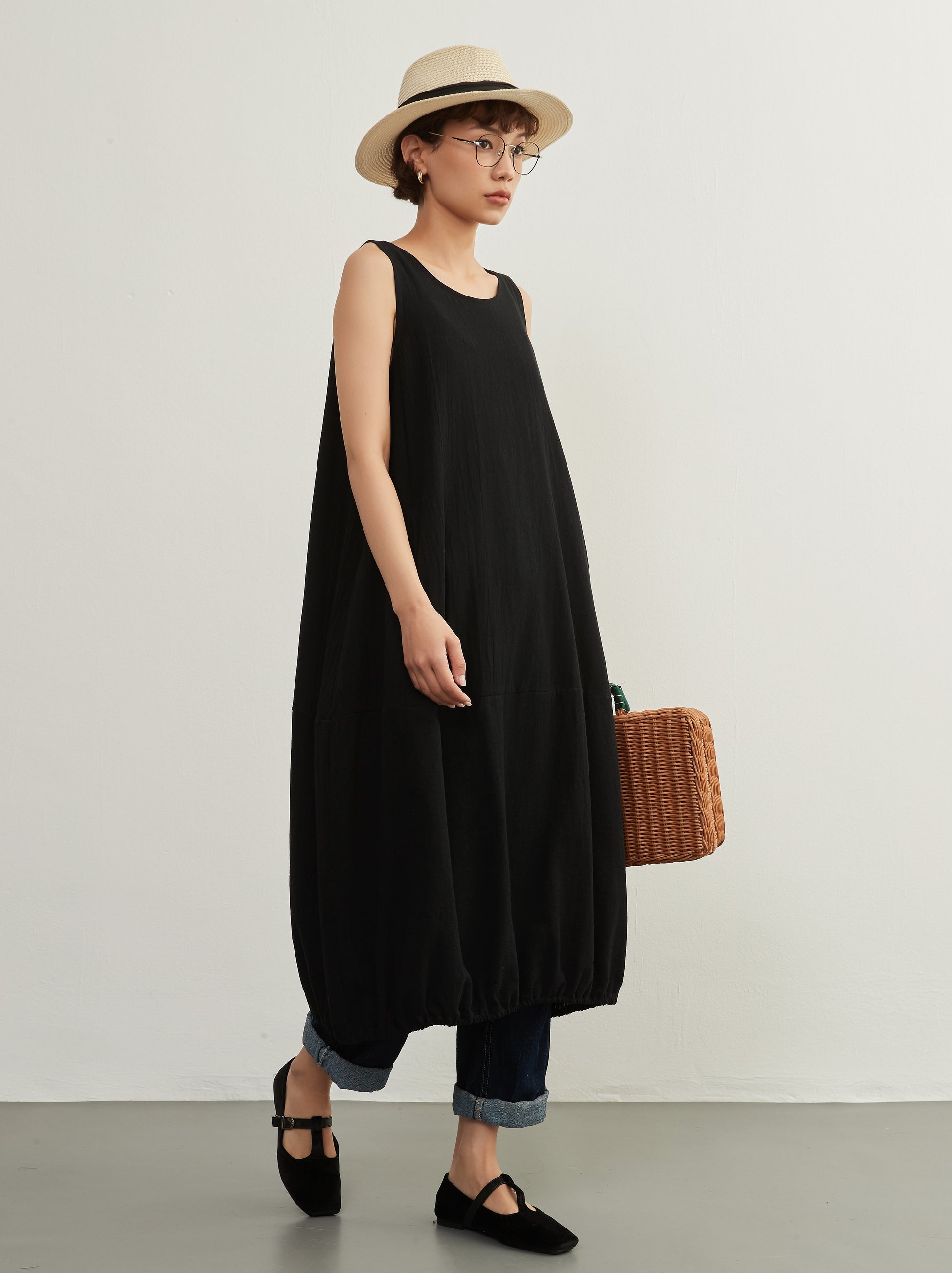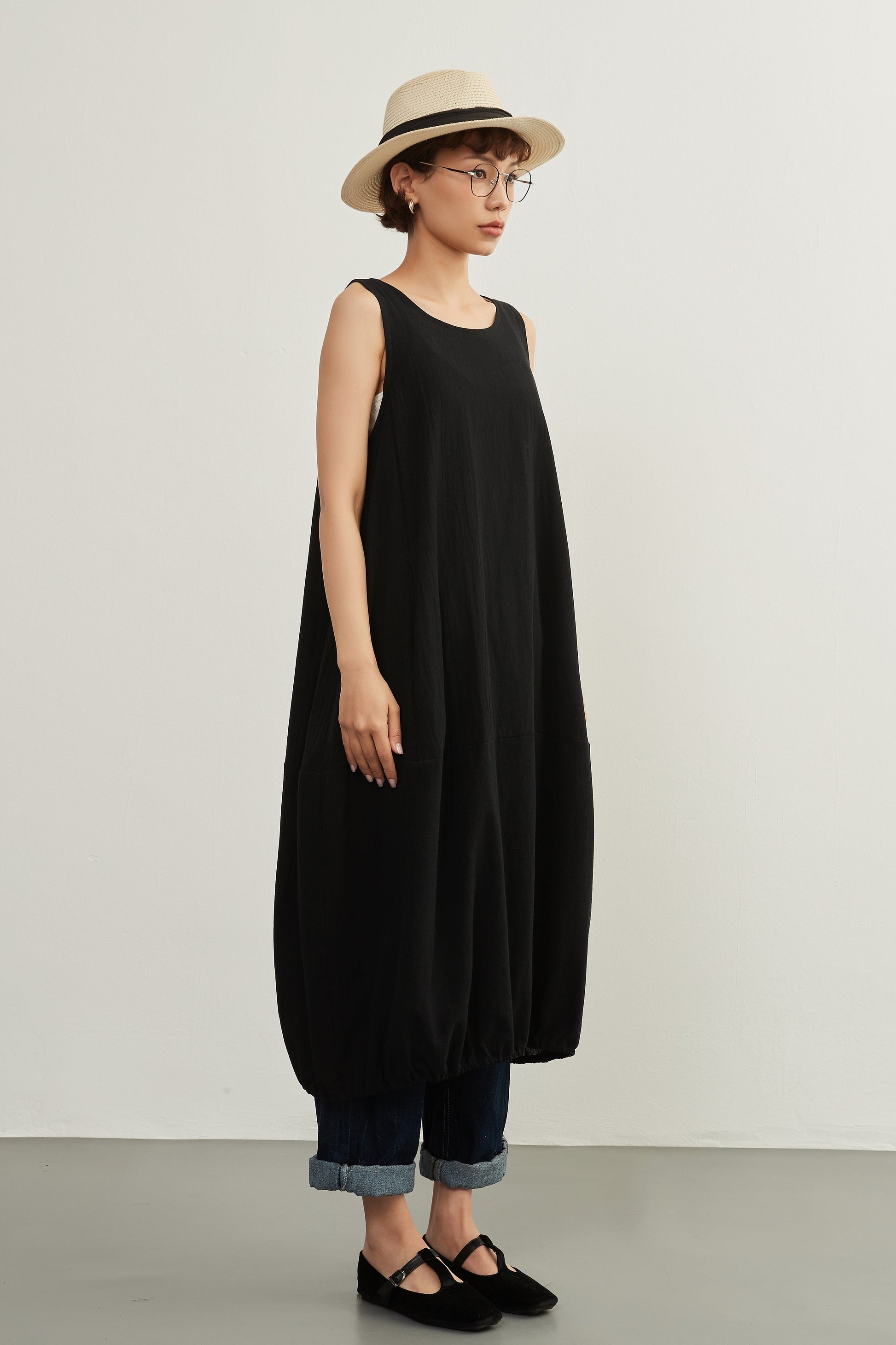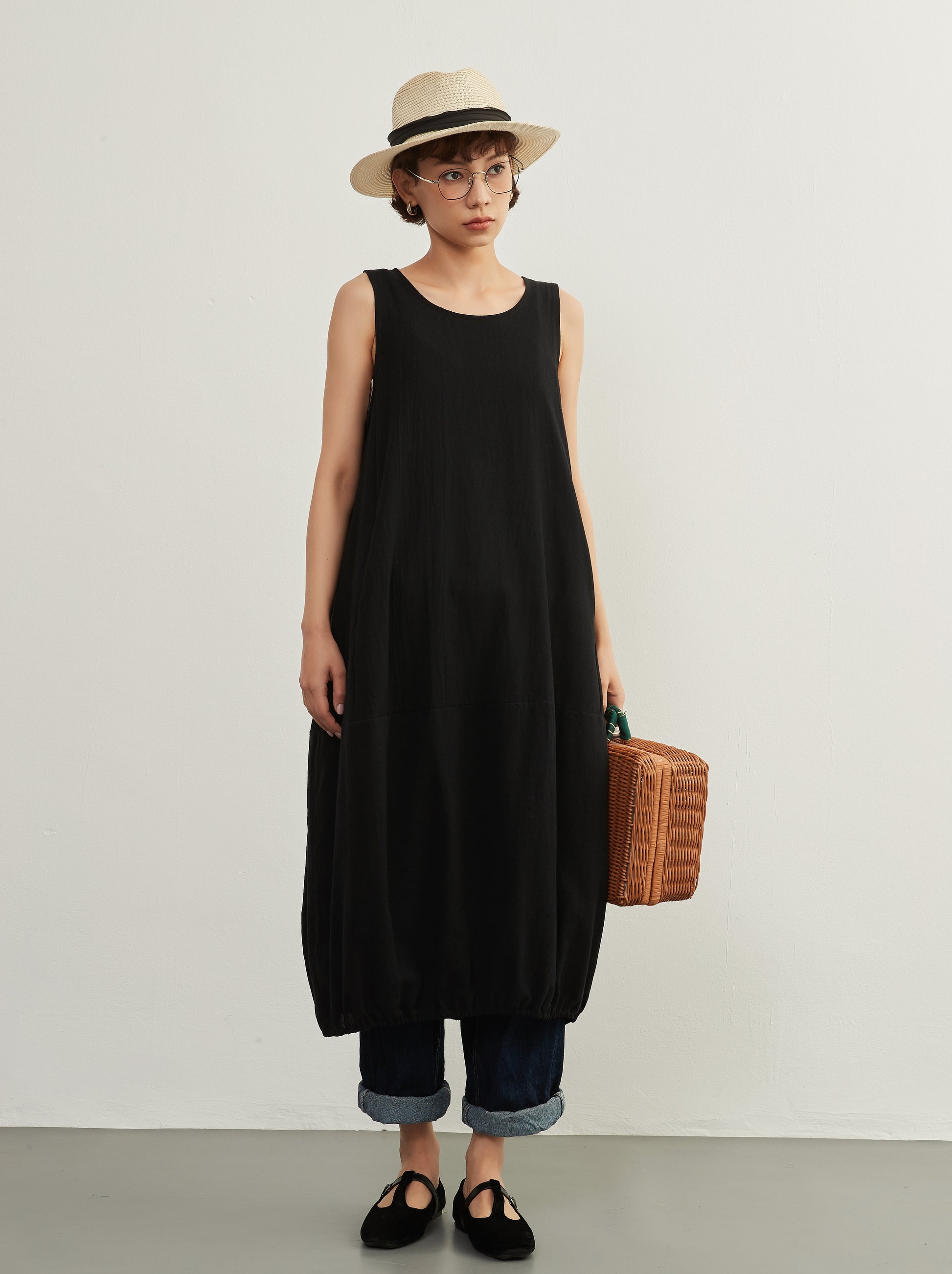 Sleeveless balloon dress, 100% cotton, layered jumper skirt that can be worn all year round