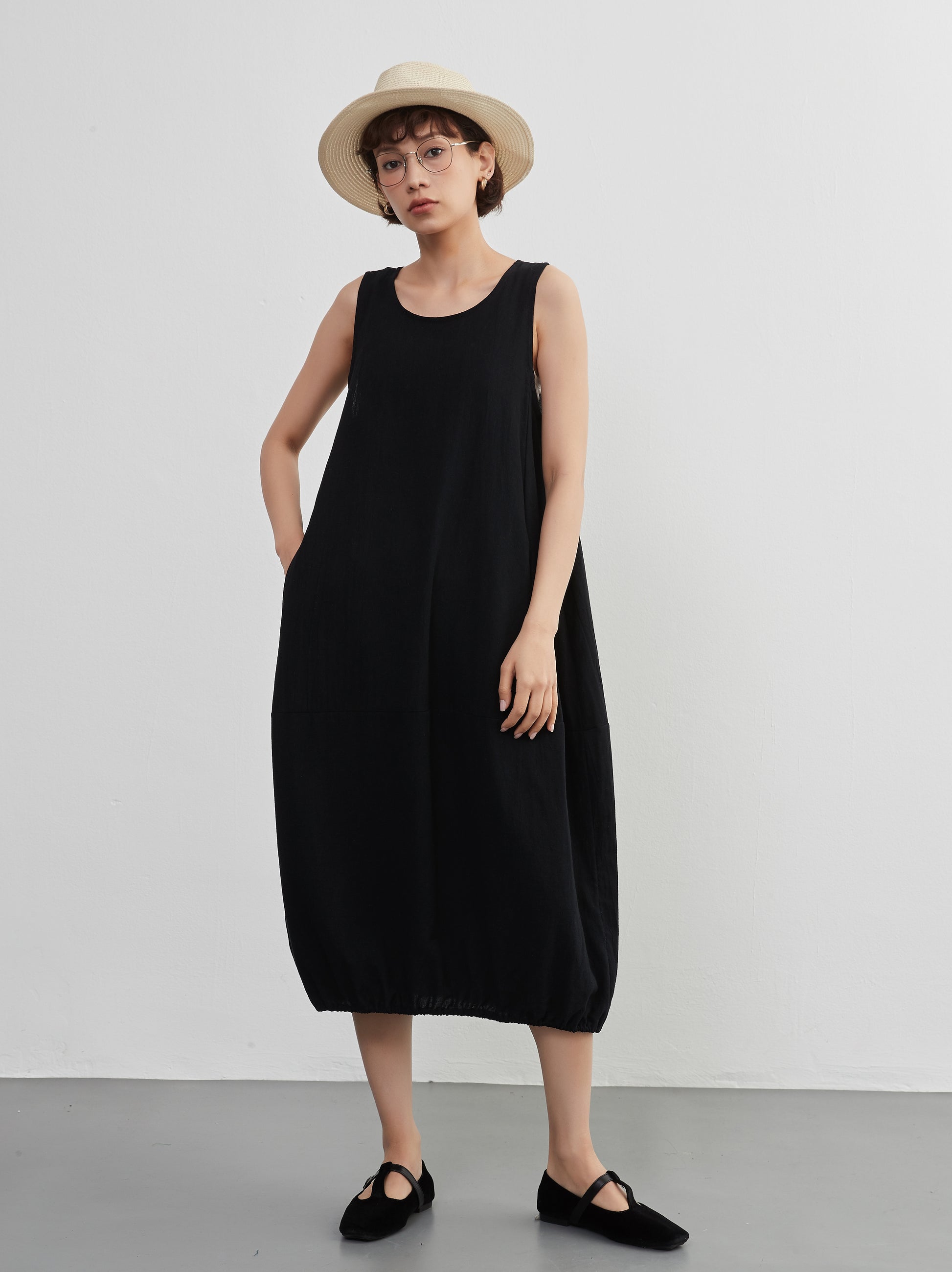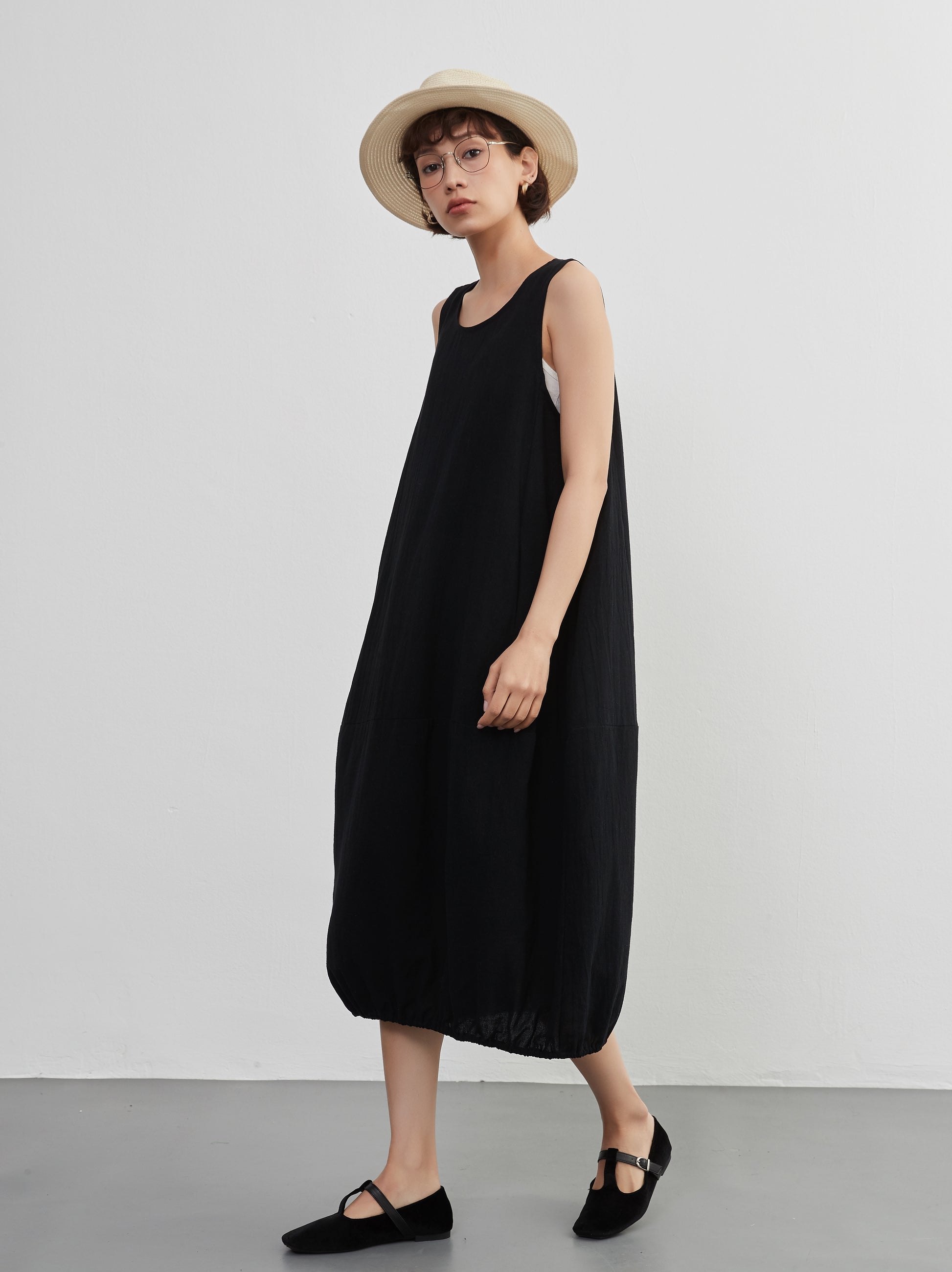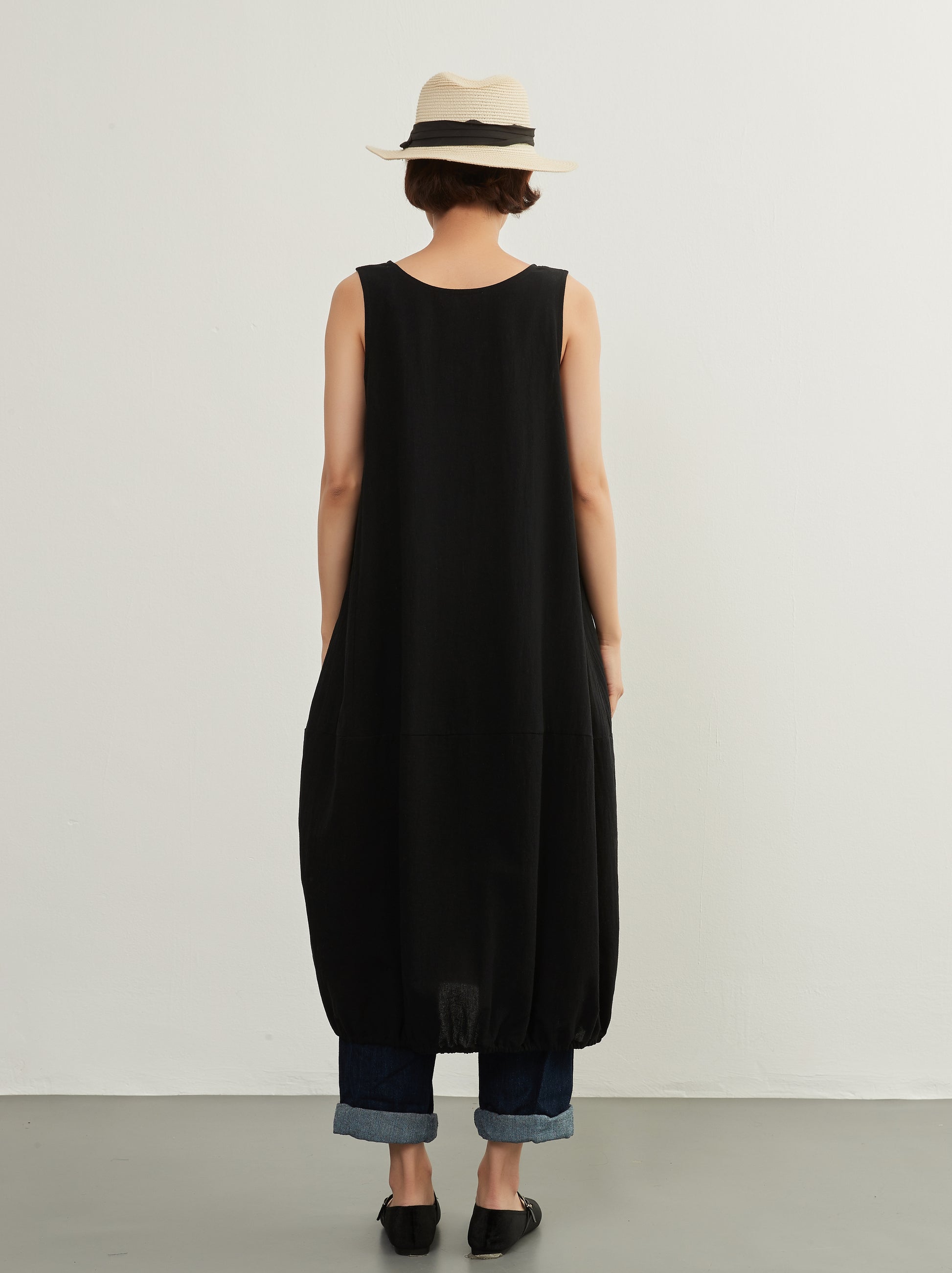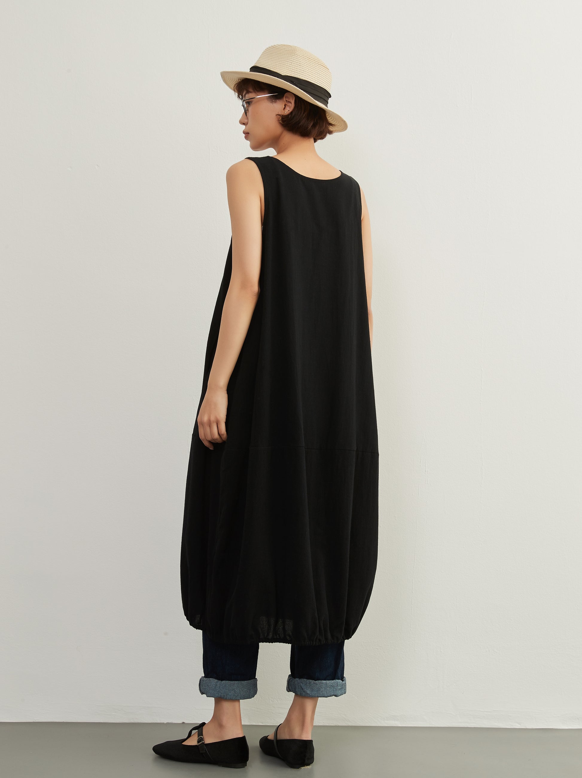 Sleeveless balloon dress, 100% cotton, layered jumper skirt that can be worn all year round